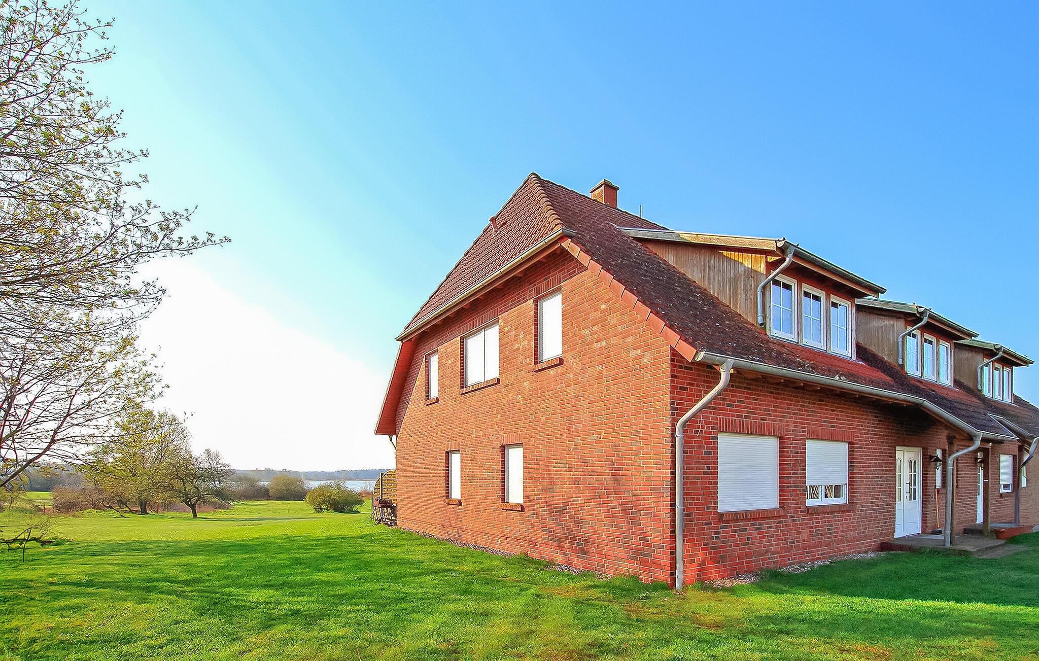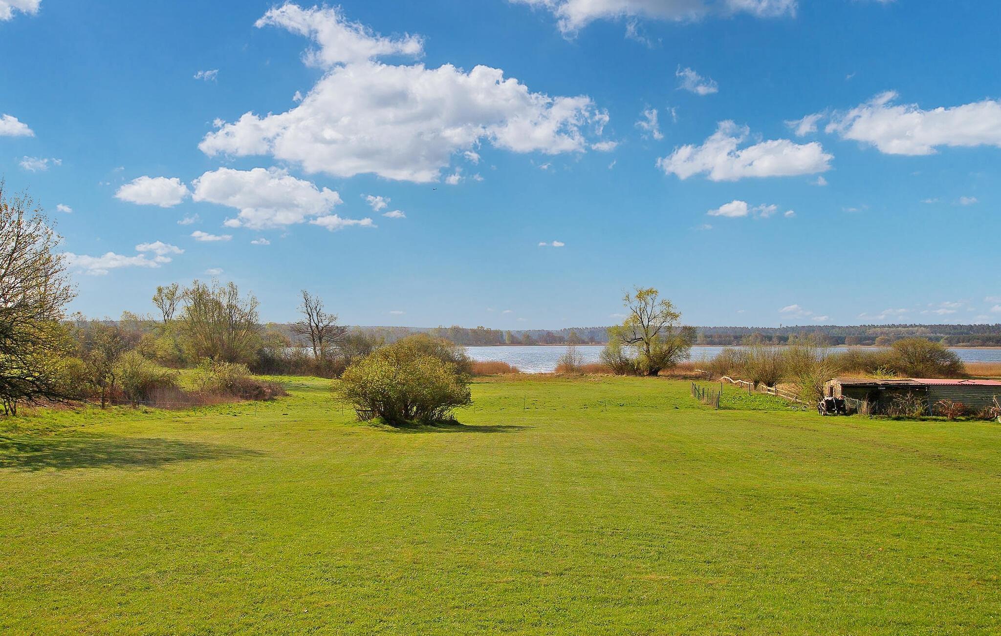 Ferielejligheden med separat indgang ligger på øverste etage i en beboelsesejendom på ejerens 4.000 kvadratmeter store natur-/beboelsesejendom direkte ved søen Malkwitz. Ejeren driver et lille økologisk landbrug på et areal på 50 ha. Heste, geder og får i de tilstødende folde samt høns og ænder fylder gården med liv og formidler charmen ved en klassisk ferie på landet. Bademulighed ca 800 m væk. Ferielejligheden (søudsigt) er udstyret med: stue/spisestue (polstrede møbler, fladskærms-tv, radio, spisebord), 2 soveværelser (1 x dobbeltseng, enkeltseng, 1 x 2 enkeltsenge), åbent køkkenhjørne (El-komfur med ovn, køleskab med fryser mulighed, diverse køkkenmaskiner), bad/WC med vaskemaskine, centralvarme (gulvvarme). Barneseng og høj stol til rådighed for levering. Tilgængelig: terrasse eller møbleret udendørs opholdsområde med grill, liggestole, cykelrum og parkeringsplads. Den samlede pris inkluderer slutrengøring samt omkostninger til vand og energi. Medbring venligst eget sengelinned og håndklæder. Sørg for at medbringe en kurv eller et tæppe til dyret! Byen Hohen Wangelin ligger i udkanten af den skovklædte naturpark Nossentiner-Schwinzer Heide, cirka 10 km fra det klimatiske kursted Krakow am See. Der er en bade- og fiskesø i landsbyen. På grund af den bekvemme beliggenhed på A 19 (5 km), kan hansestaden Rostock og Østersøen nås på cirka 40 minutter. Linstow-eventyrpoolen (5 km) lover badesjov, især på kølige dage. Den lille bydel Kniep ligger omkring 2 km væk ved søen Malkwitz, på grænsen til det 508 hektar store naturreservat "Obere Nebelsen". Ud over fiskeørnen kan du her opleve kronhjortens brunst på tæt hold.