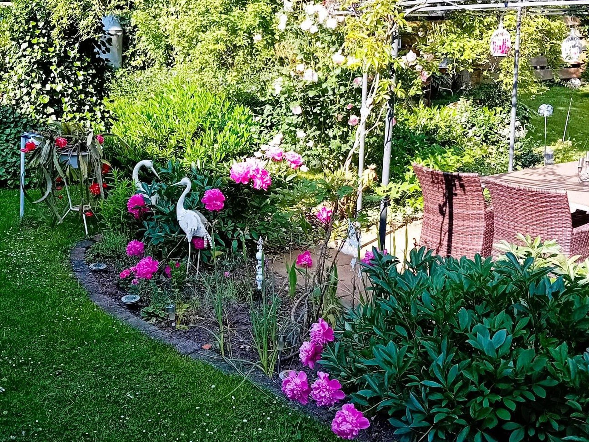 Der große Garten mit gemütlichen Sitzgelegenheiten im Freien lädt zum Entspannen, Verweilen und Erholen ein und bietet ideale Voraussetzungen für einen erholsamen Aufenthalt inmitten der Natur.