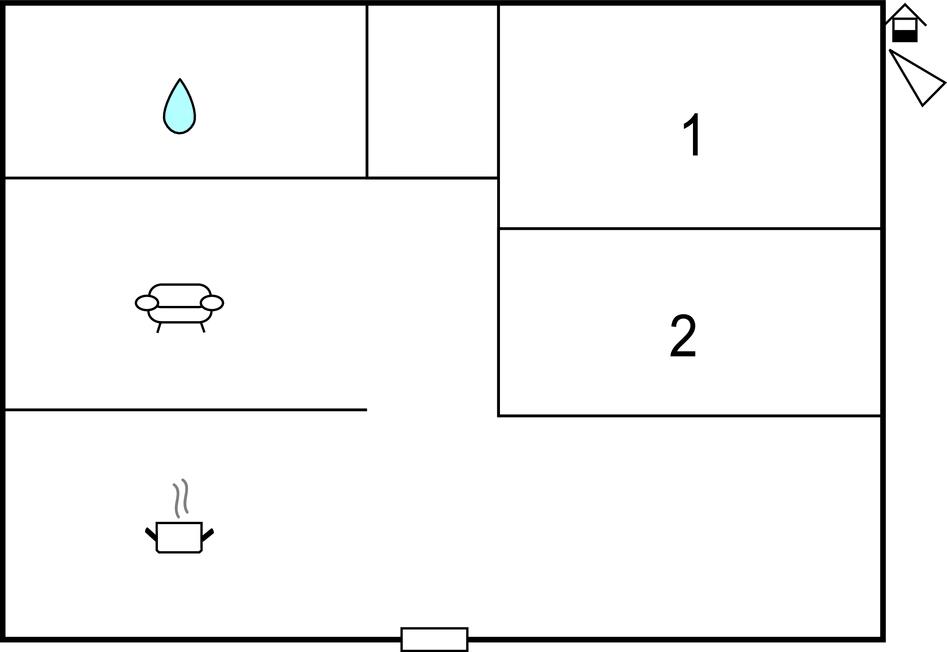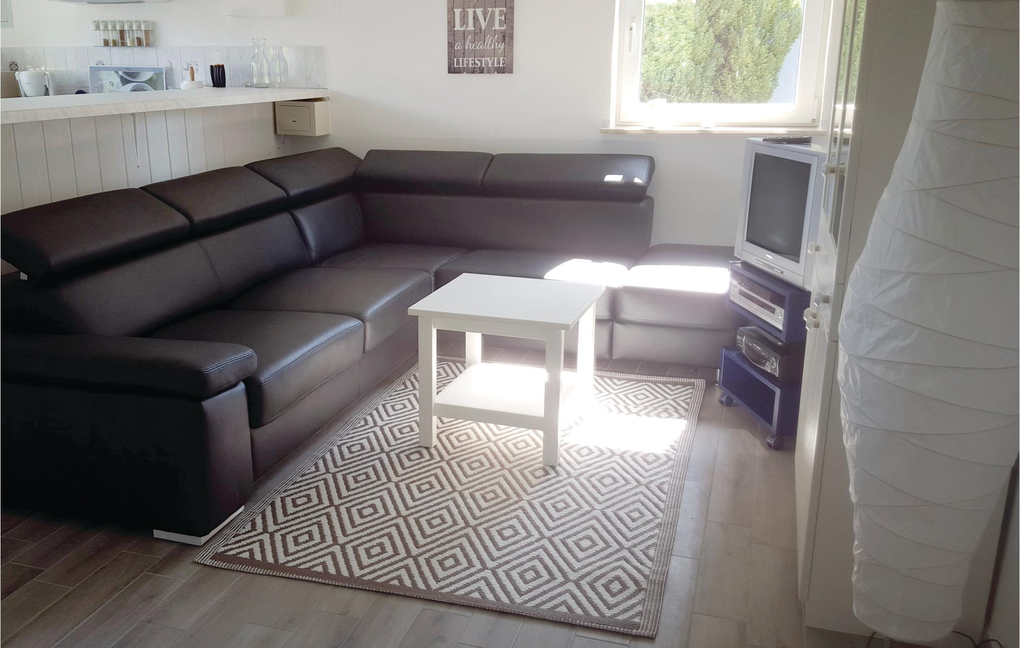 Boligområdet er moderne og praktisk indrettet. Lige ved siden af dagligstuen ligger et lille køkken, som er komplet udstyret. Det første separate soveværelse råder over en dobbeltseng, i det andet soveværelse er der en etageseng til børnene