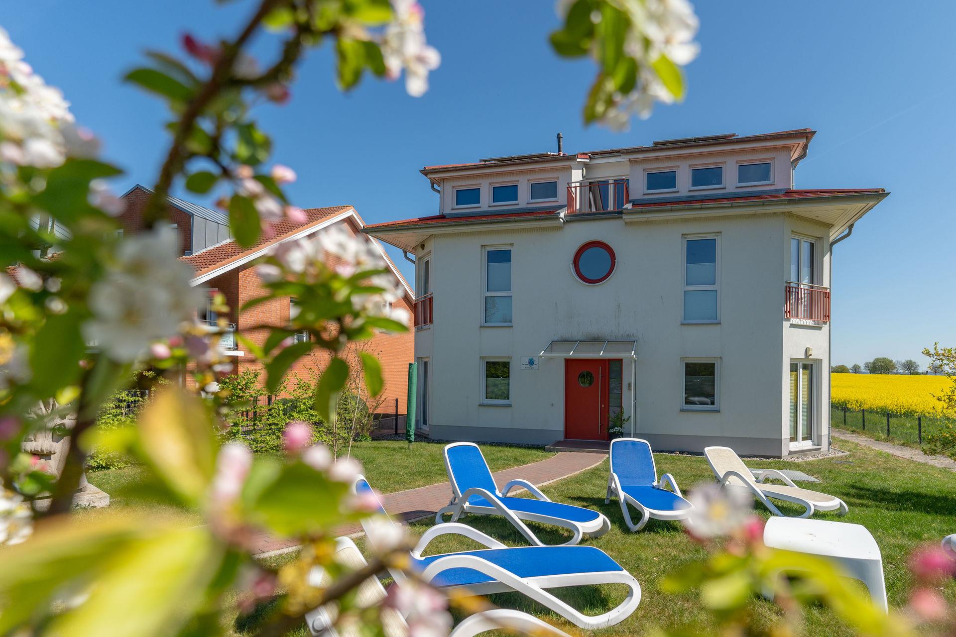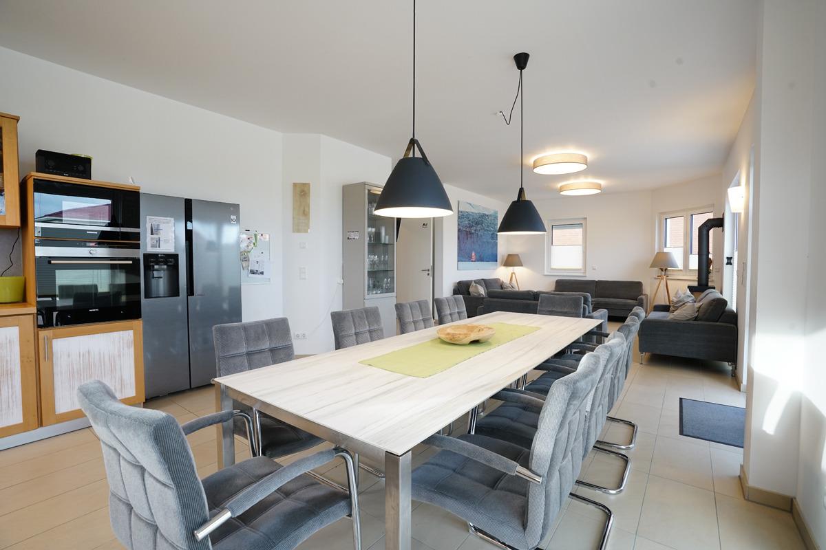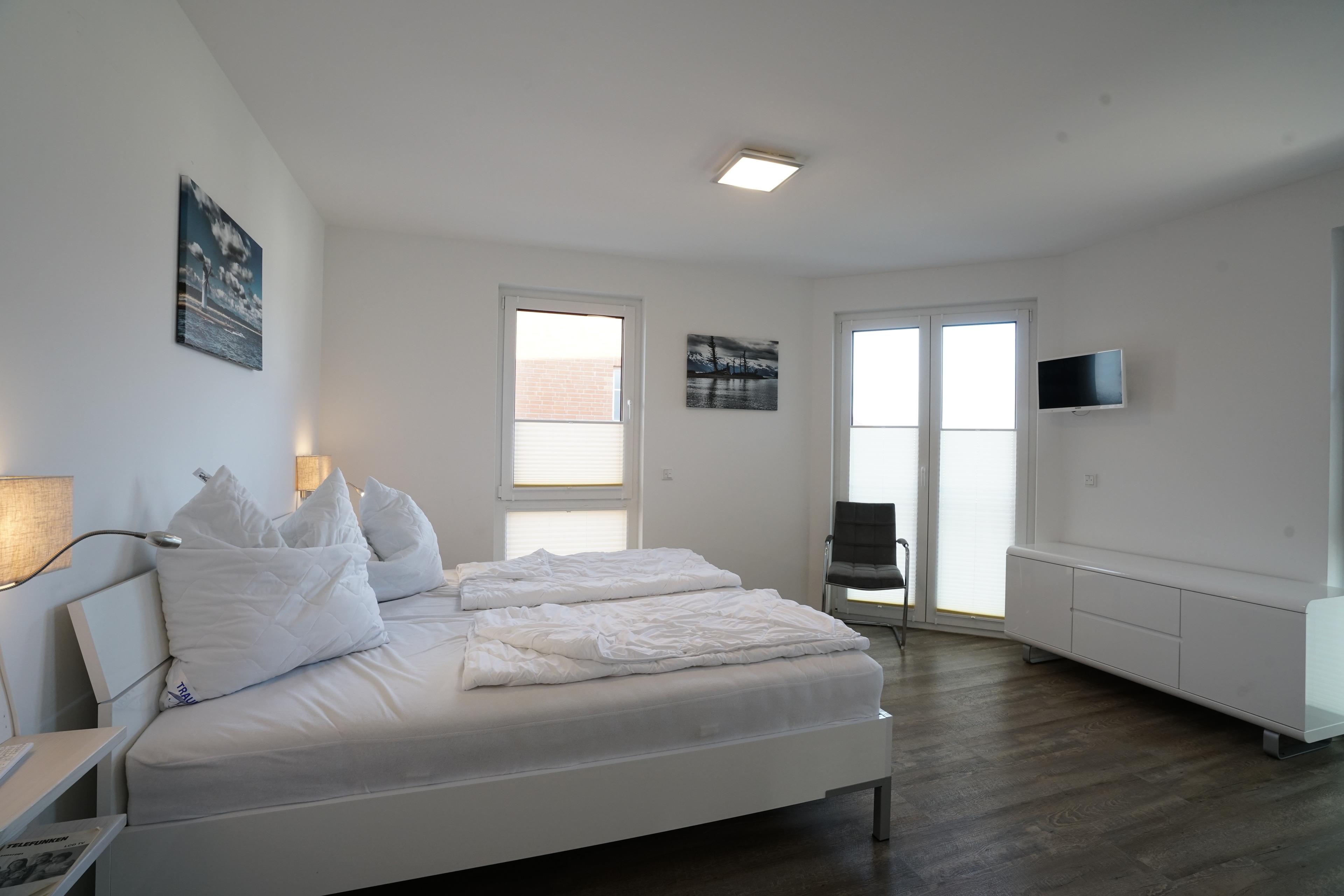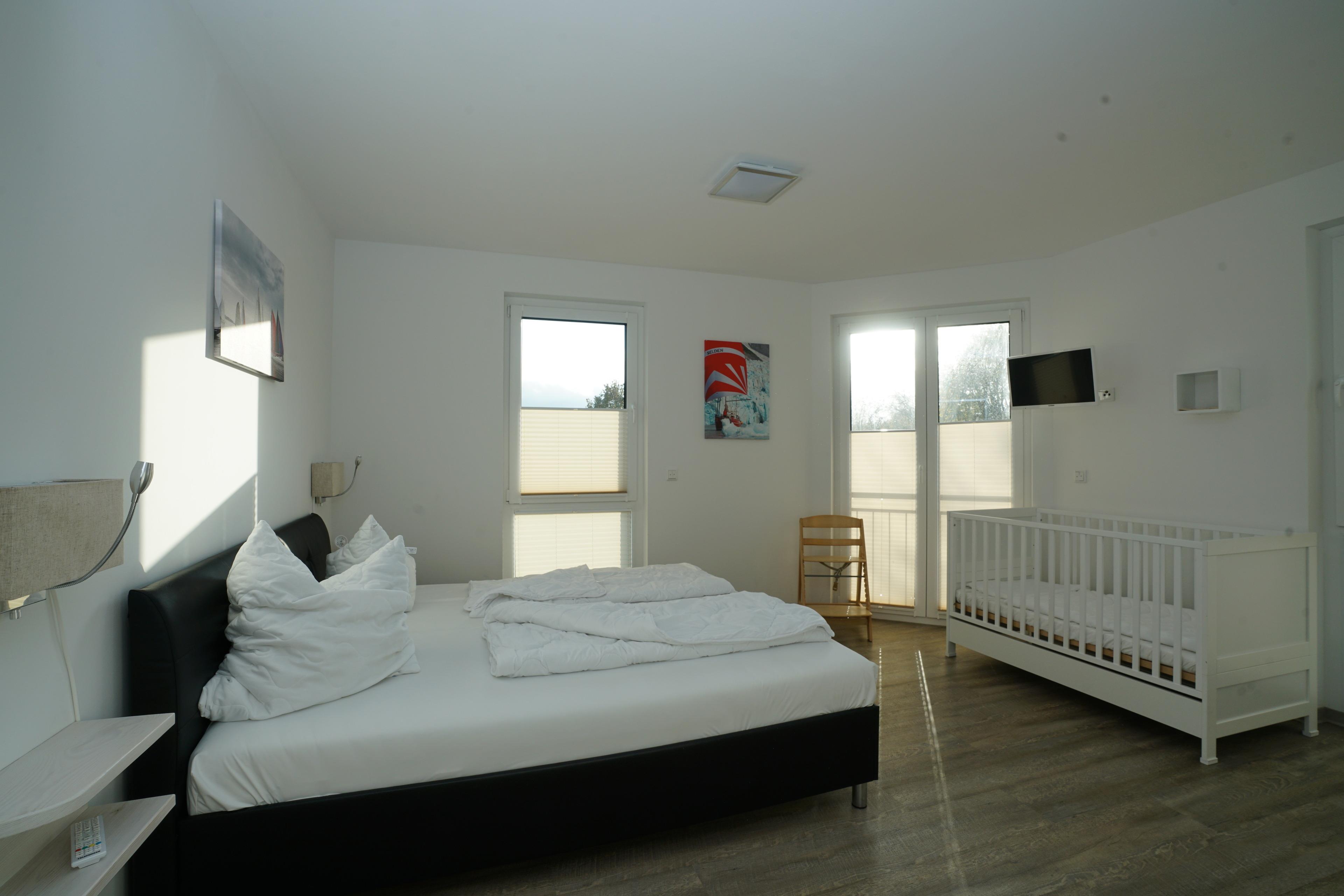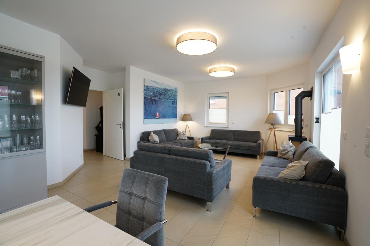 Für Unterhaltung sorgen die TV-Geräte in jedem Zimmer und die Möglichkeit, Musik über Bluetooth-Boxen abzuspielen. Auf der großen Terrasse mit Markise finden Sie gemütliche Sitzgruppen für bis zu 8 Personen sowie Strandkörbe, die zum Entspannen einladen.