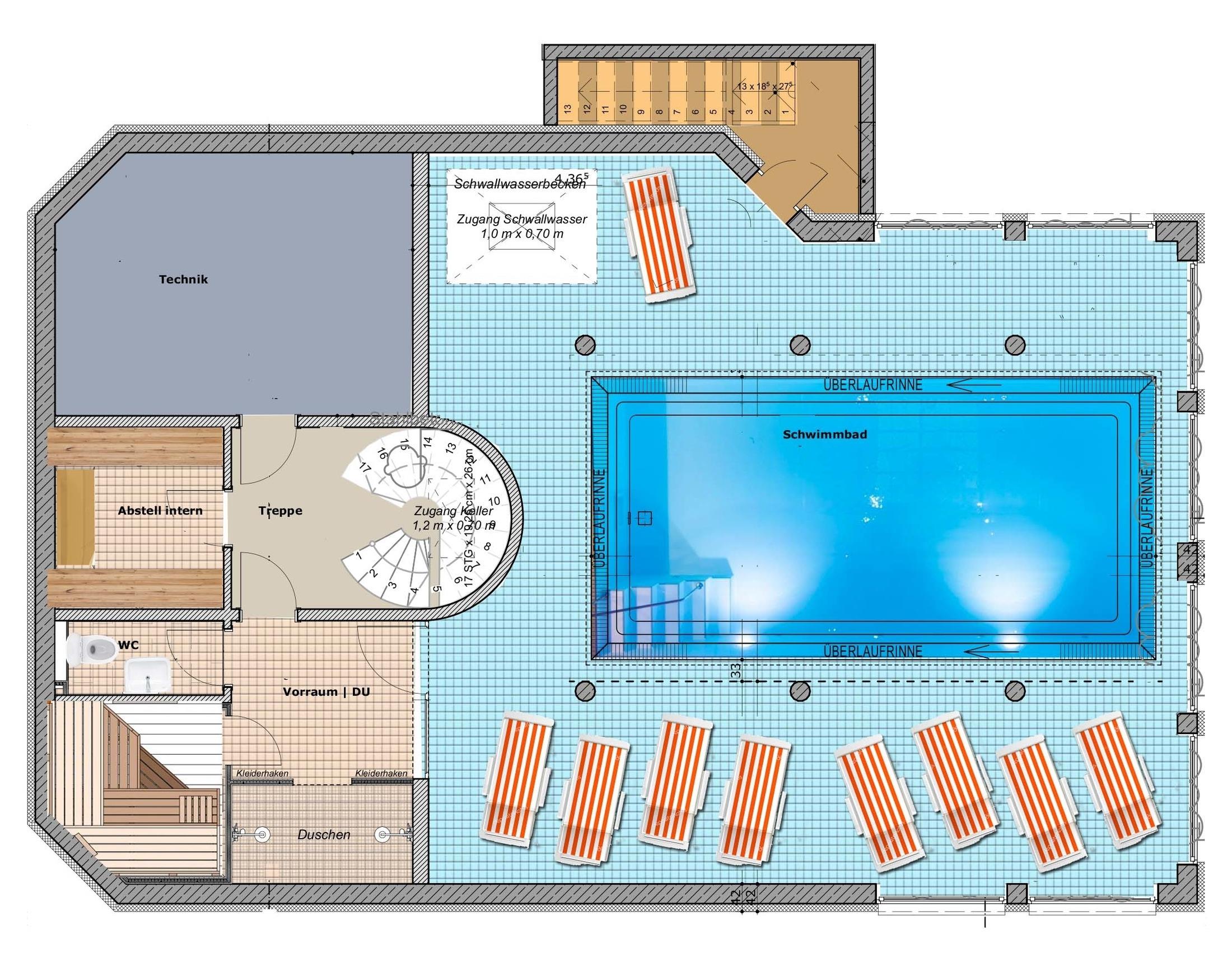 Kleinkinder müssen im Schwimmbad eine Badewindel tragen. Lesen Sie bitte die Sicherheitshinweise im Haus und die Hausordnung im Eingangsbereich.