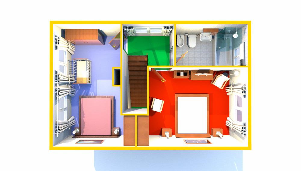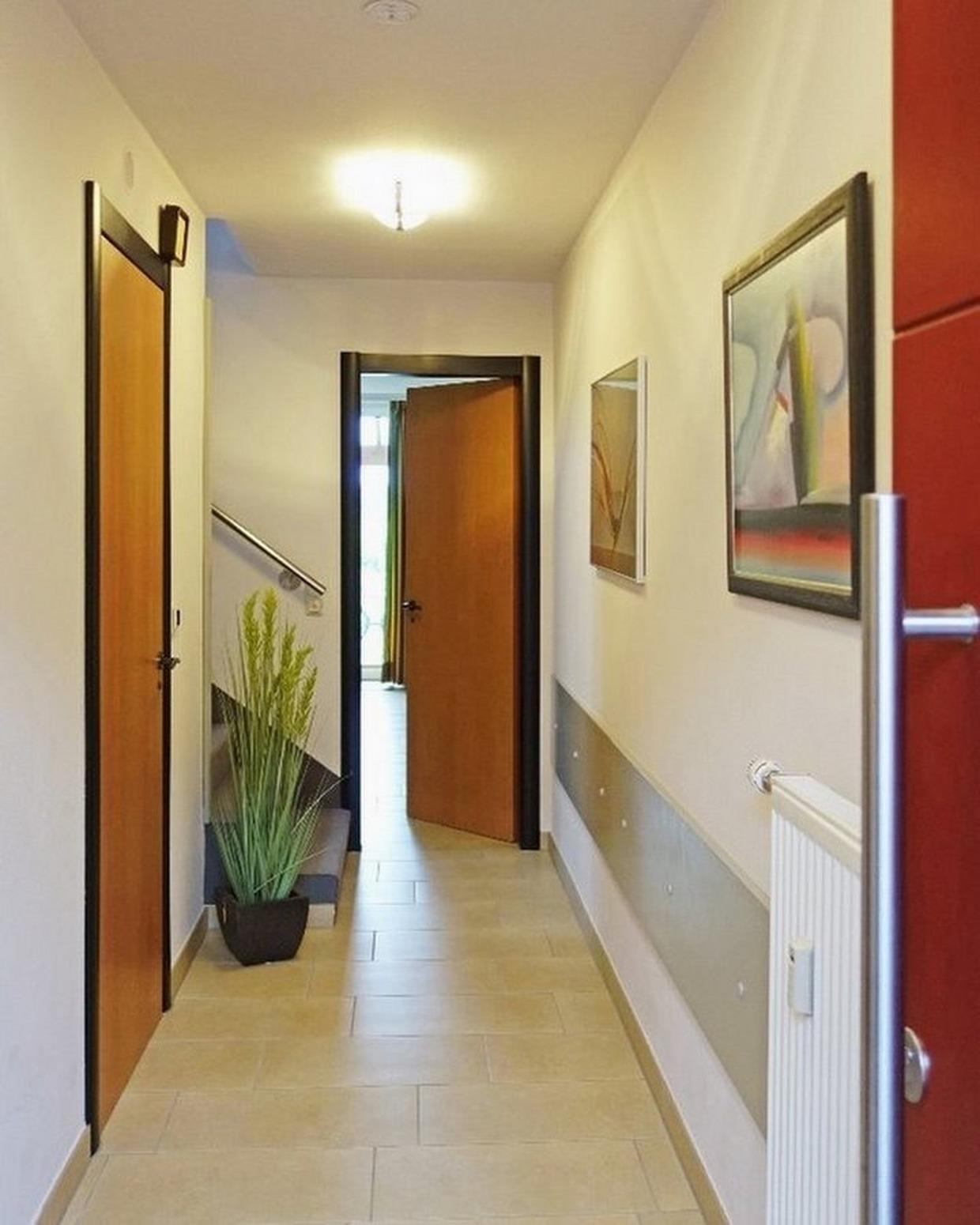 Vom großen Flur aus, geht es über eine bequeme Treppe mit Edelstahlgeländer in die beiden Schlafräume. Dort befindet sich das Hauptbad mit Badewanne und Doppelwaschtisch, sogar ein Hotelfön ist vorhanden.