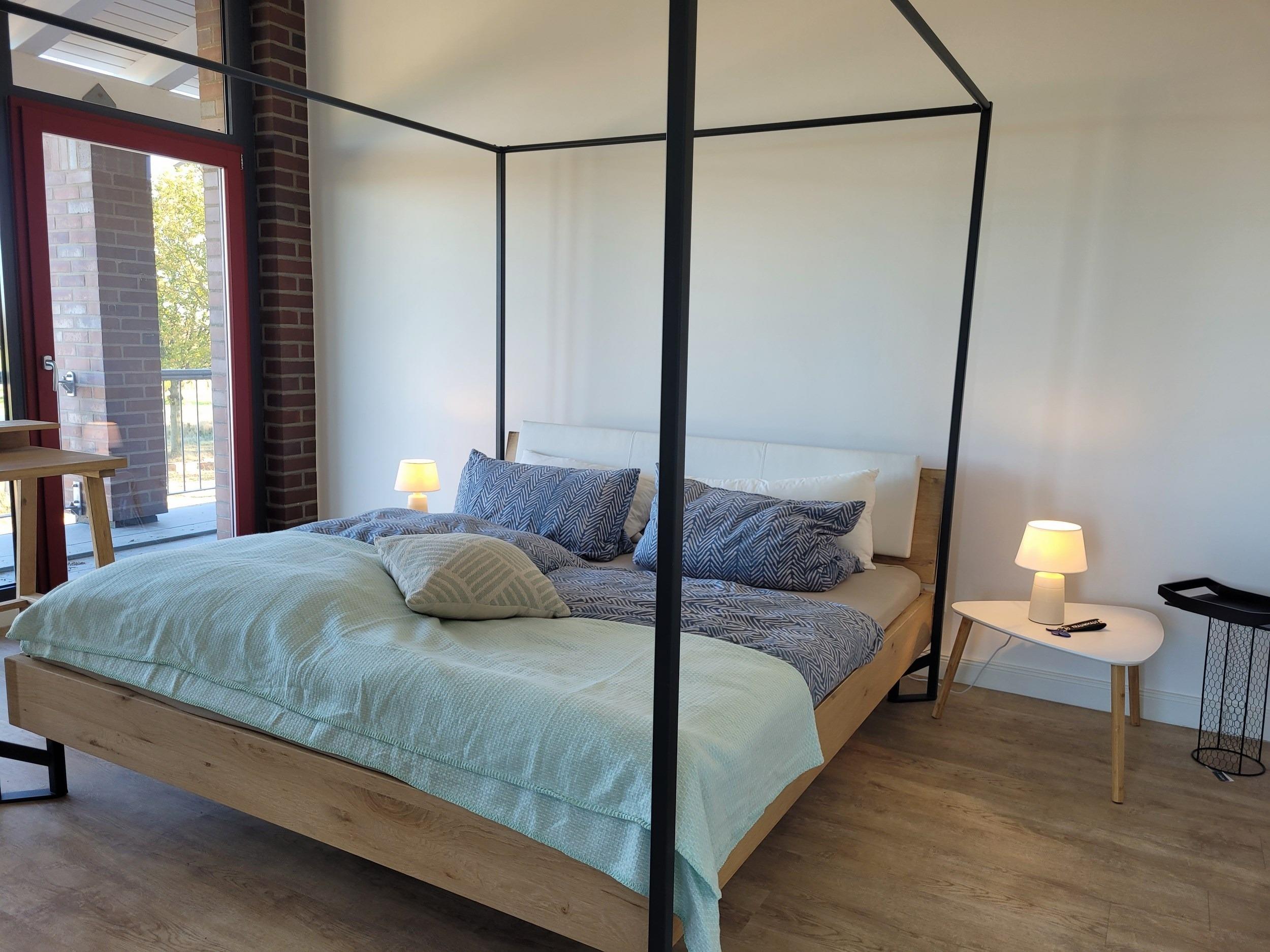 - separates Schlafzimmer mit Himmelbett (1,80 x 2,10 m), großer Kommode, Kofferständern und Bank