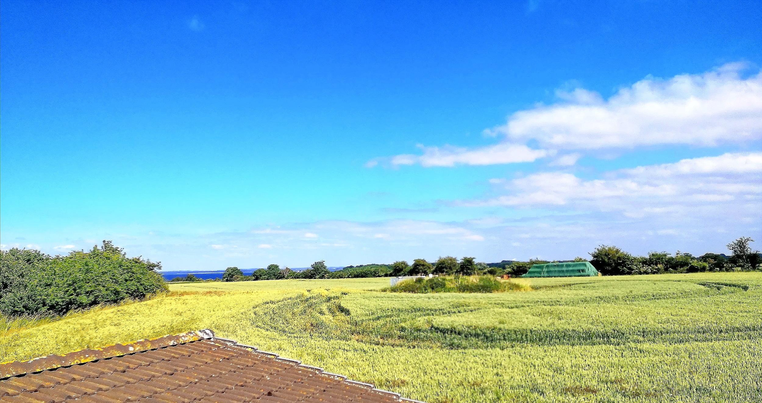 Behagliche Ferienwohnung im ersten Stock an der Ostsee auf der Halbinsel Hohen-Wieschendorf , mit 96qm Wohnfläche, Blick zur Ostsee und ins Grüne, geräumig und optimal geeignet für 5 Personen und ein Kind.