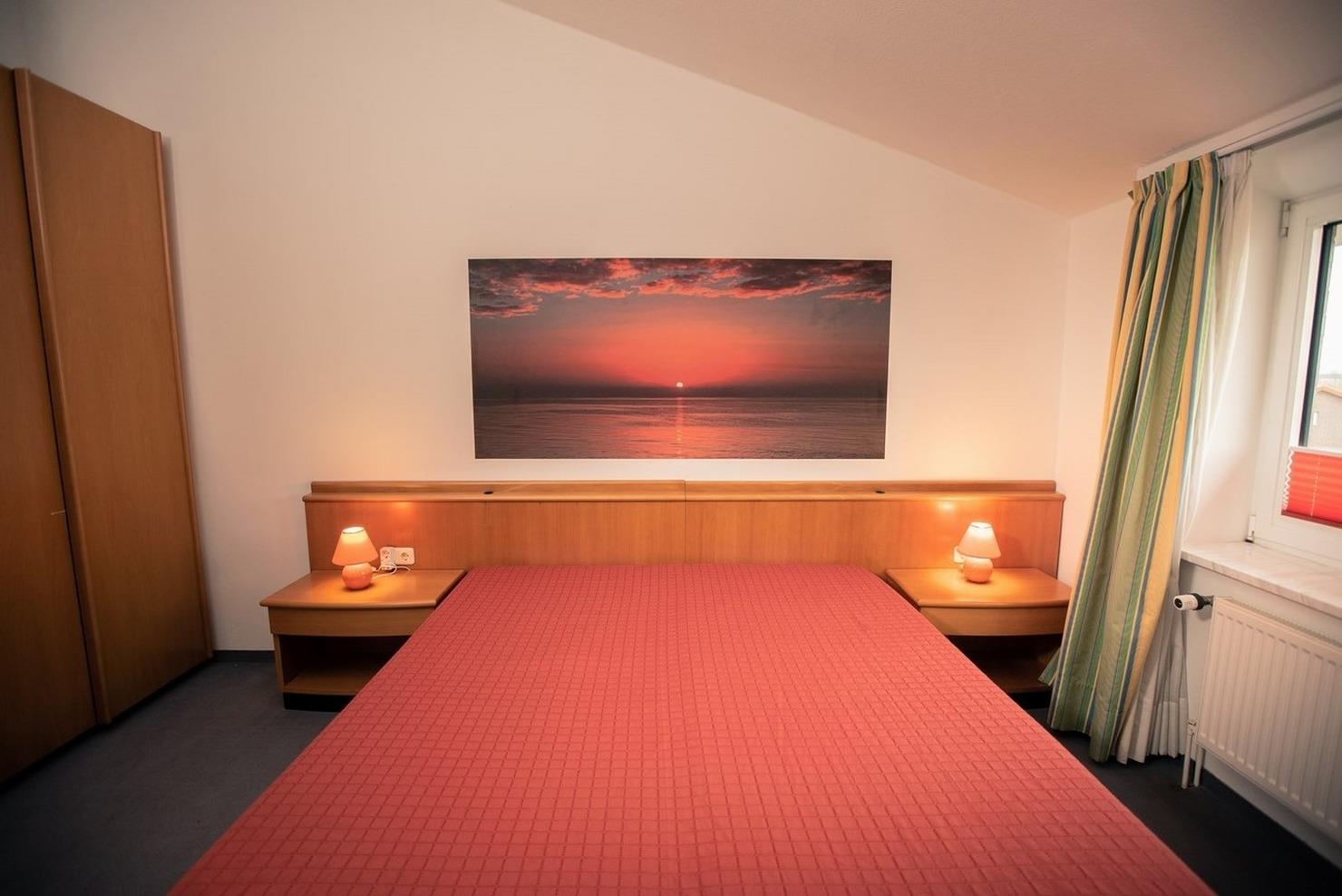 - 1. Schlafzimmer mit Doppelbett, LED-TV, Kleiderschrank