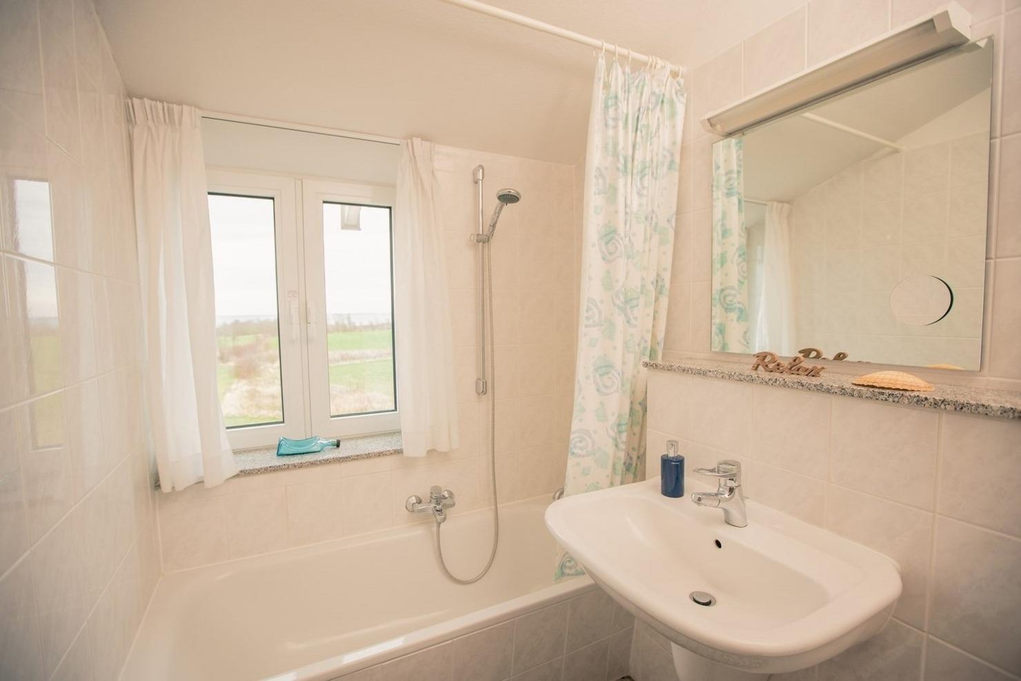 - Duschbad mit Dusche, WC, Waschbecken, Spiegel, Fön