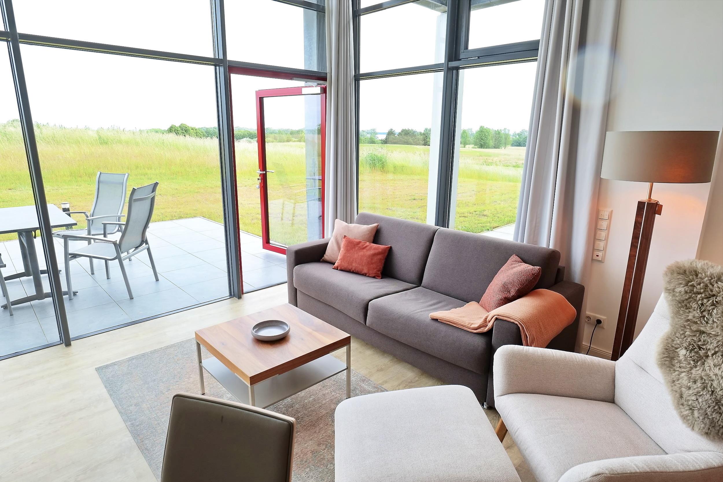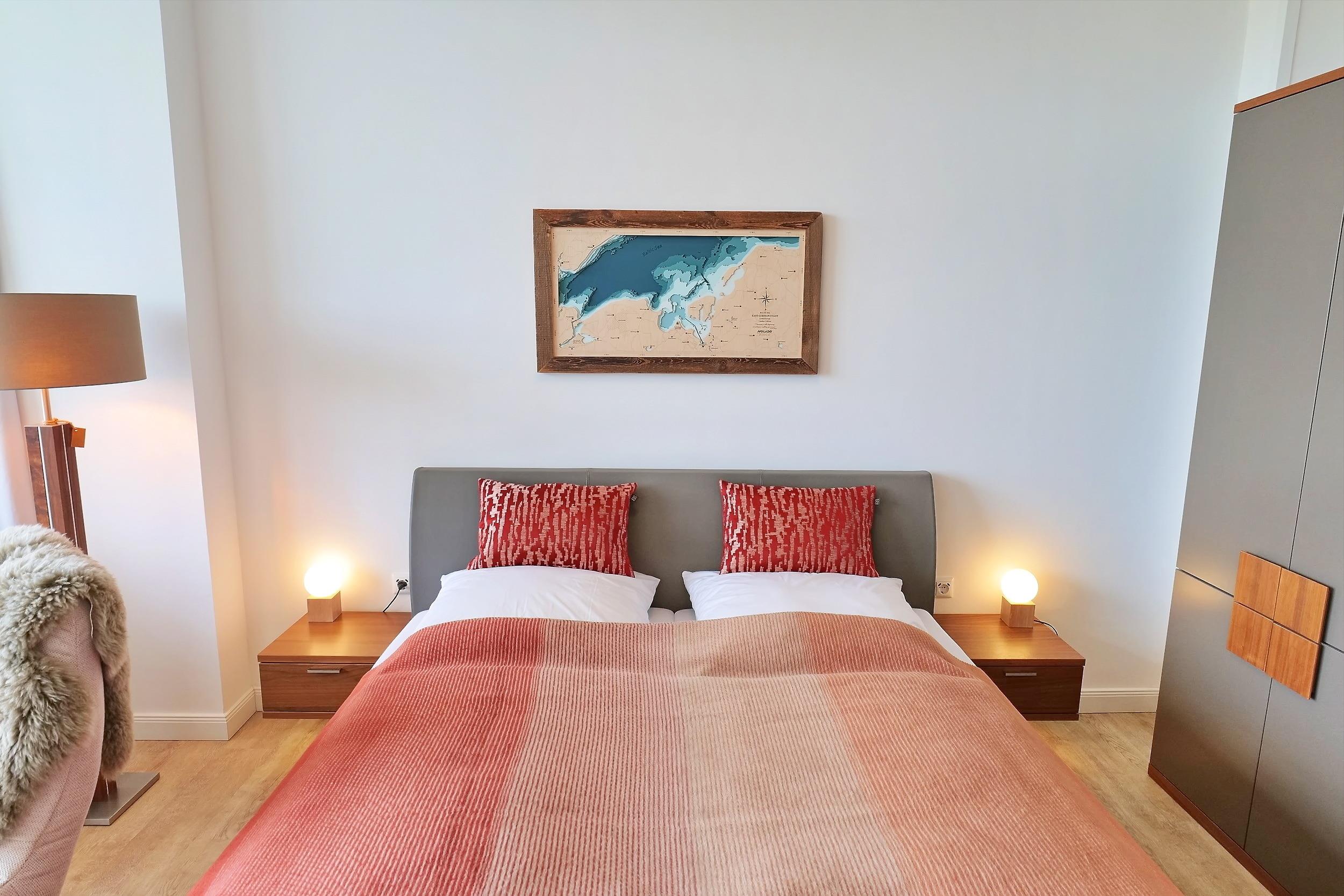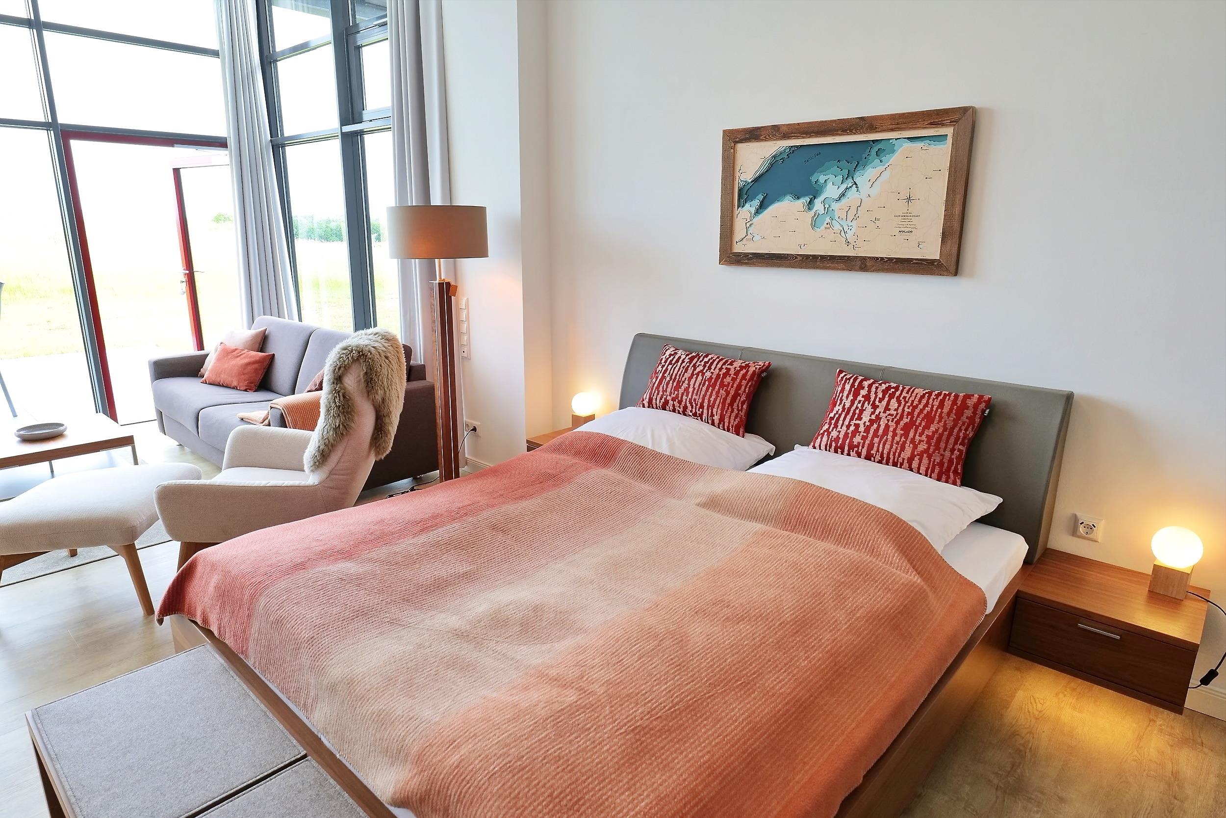 Die 1- Zimmer Komfort Ferienwohnung Huk's No. 20 - Aurora Vista, bietet eine großzügige Wohnfläche von 52qm und verwöhnt mit einer saisonal möblierten Terrasse in nördliche Ausrichtung. Das stilvoll möblierte Appartement befindet sich im Obergeschoss des Hauses und kann mit bis zu 4 Personen belegt werden. Im hochwertig möblierten Wohn-/Essbereich empfängt Sie ein Sofa, welches eine Schlaffunktion besitzt und daher bequem in ein Schlafsofa mit zwei zusätzlichen Schlafmöglichkeiten umgewandelt werden kann. Zudem befinden sich ein Fernsehgerät sowie kostenfreie WLAN-Nutzung im Appartement.