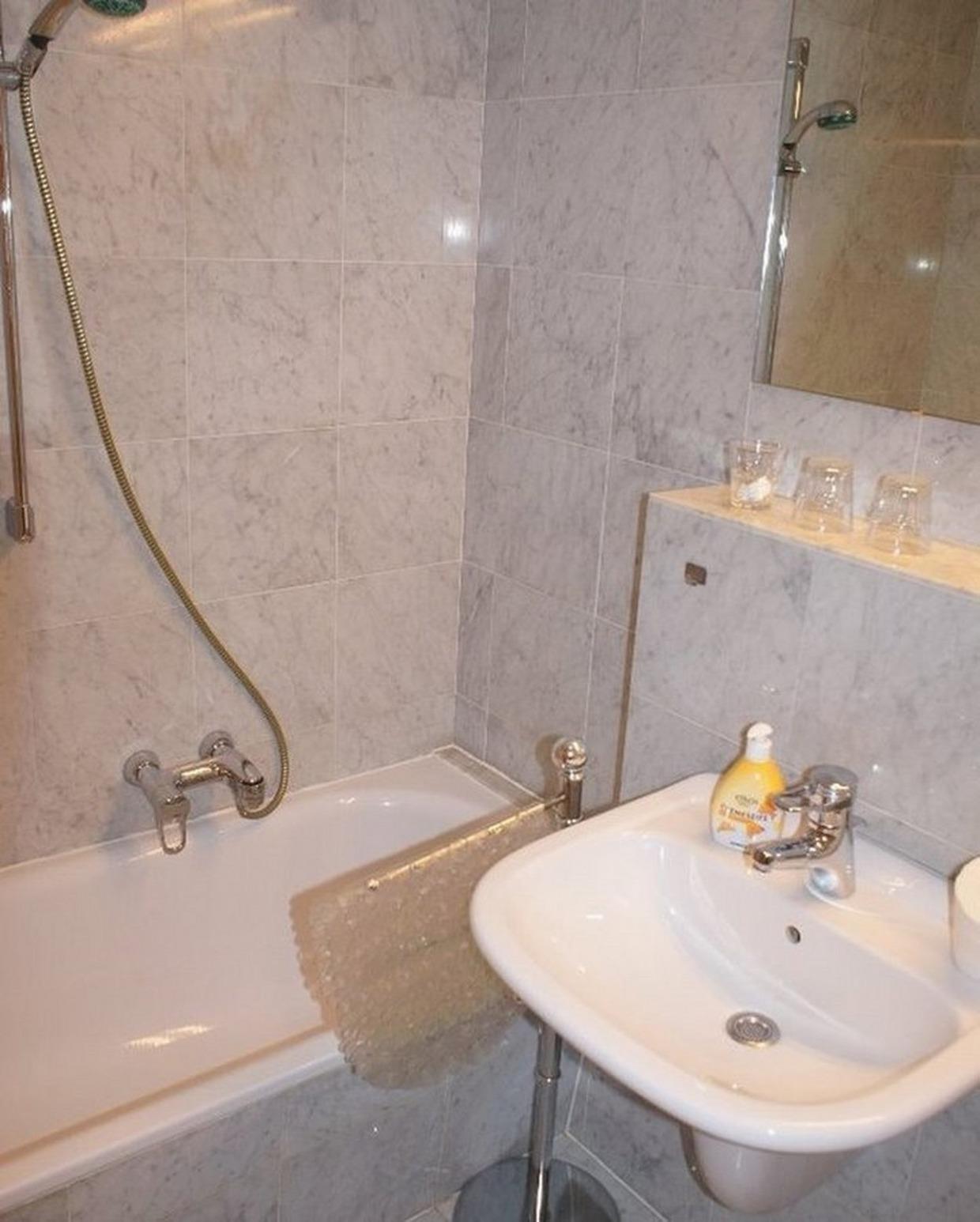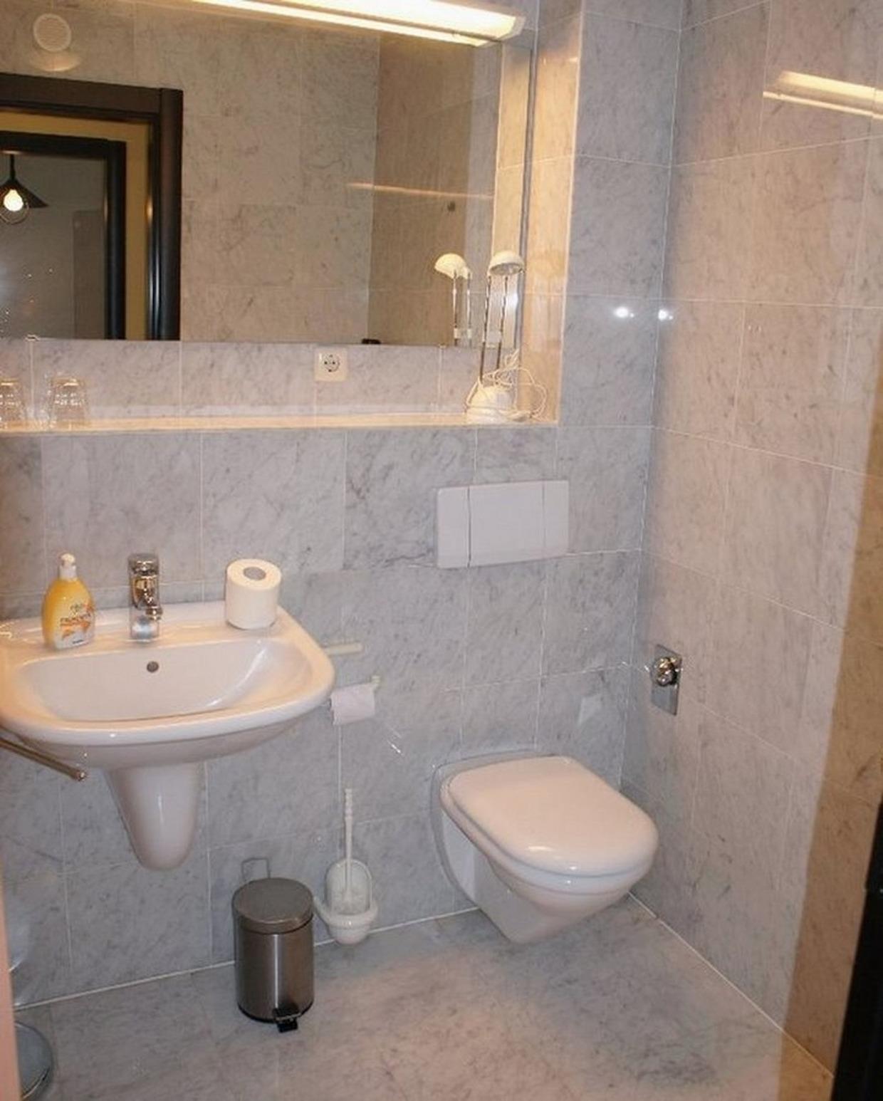 Vollbad mit Badewanne, WC, Spiegelschrank