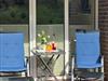 Terrasse mit Stühlen, Auflagen, Sonnenliege und Esstischtisch