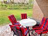 Terrasse mit Stühlen, Auflagen, 2 Sonnenliegen und Esstisch