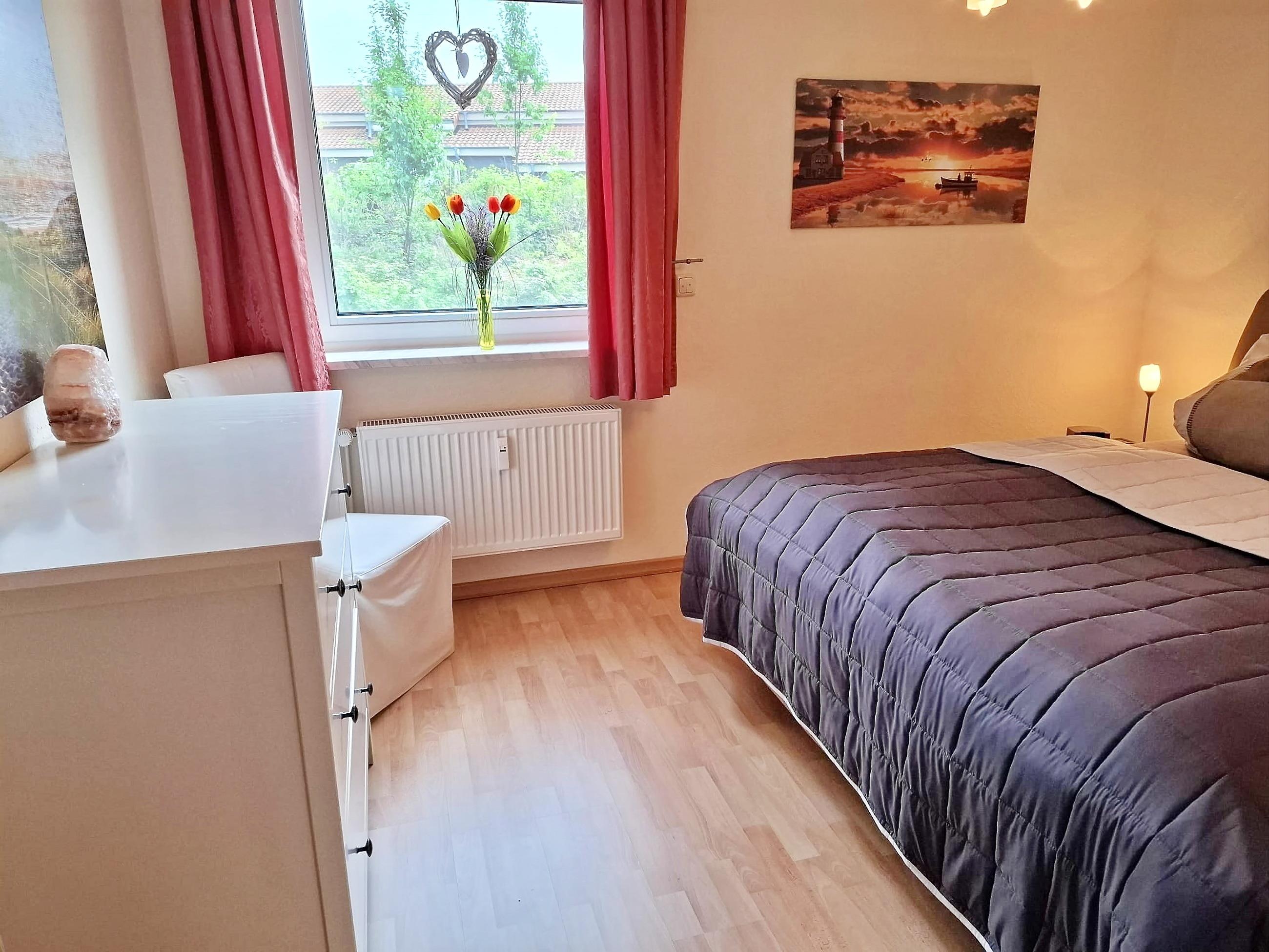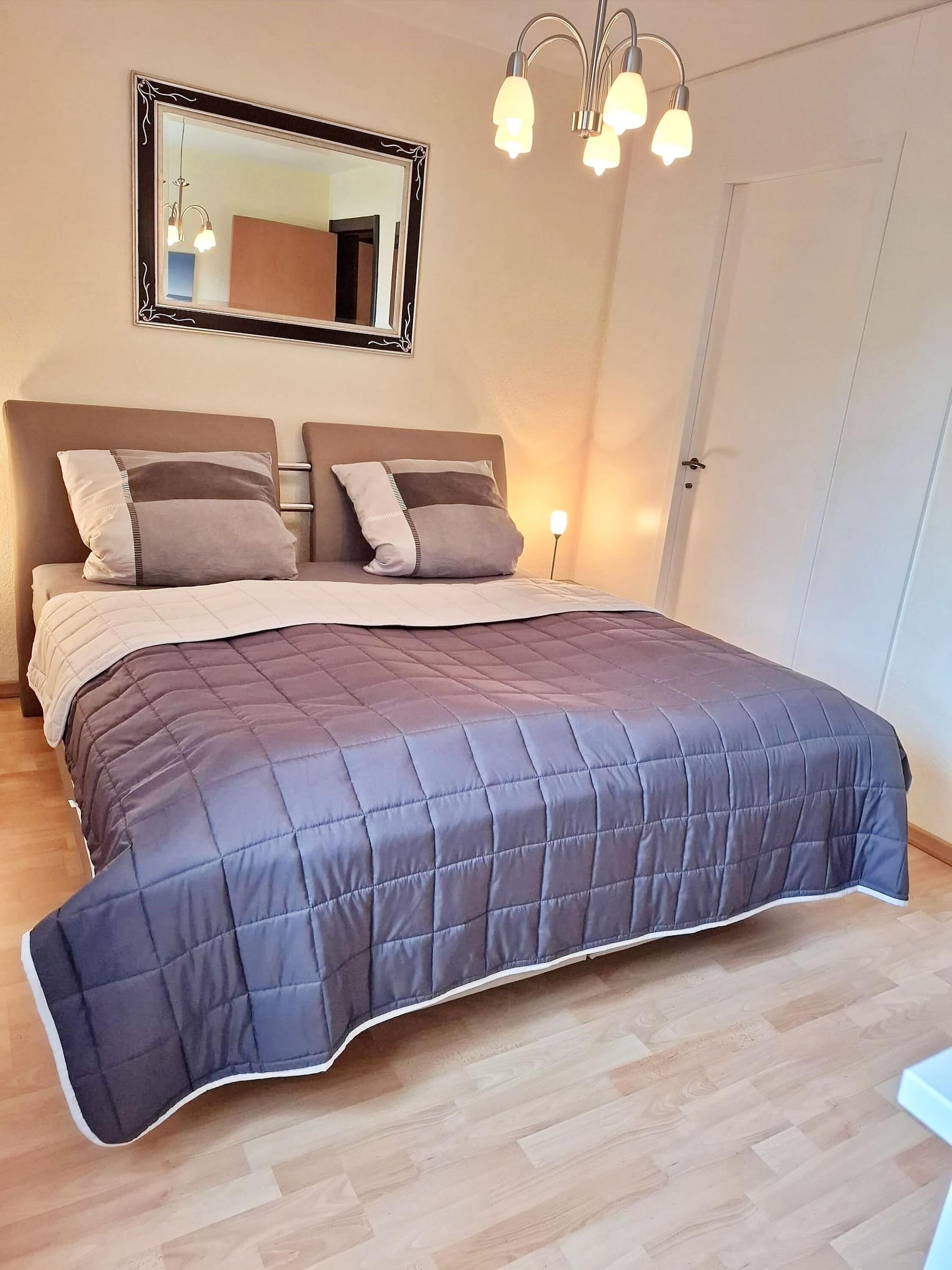 separates Schlafzimmer mit großem Doppelbett (1,80 x 2,00m) Sideboard, begehbarer Kleiderschrank