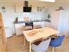 Für Feriengäste, die sich eigenständig mit Mahlzeiten versorgen möchten, ist die in den Wohnbereich integrierte, sehr hochwertig ausgestattete Einbauküche ideal. Für gemeinsame Mahlzeiten nutzen Sie den großen Esstisch mit 4 bequemen Sitzplätzen.