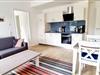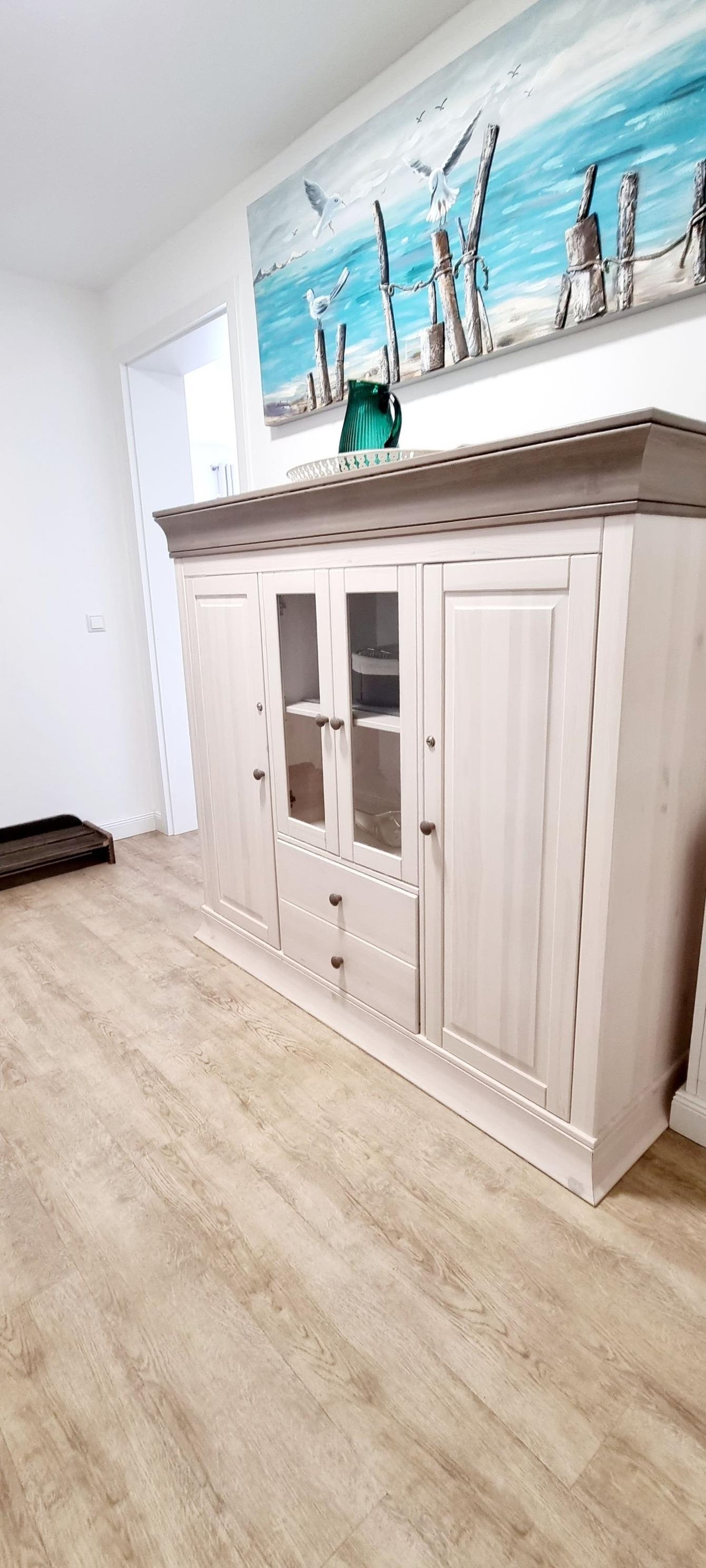 Die offene Küche, in der sich die Farben der nahen Ostsee widerspiegeln, erfüllt alle Erwartungen: Hochwertige Elektrogeräte: Herd (mit Induktionskochfeld und Backofen), Dunstabzug, Kühlschrank (mit TK-Fach) und Spülmaschine, aber auch Kaffeemaschine, Toaster und Eierkocher. Und neben Besteck und Geschirr auch Auflaufform, Teekanne, Tablett und div. andere kleine und große Ausstattungsgegenstände. Ihre Mahlzeiten können Sie an einem schönen Esstisch einnehmen.