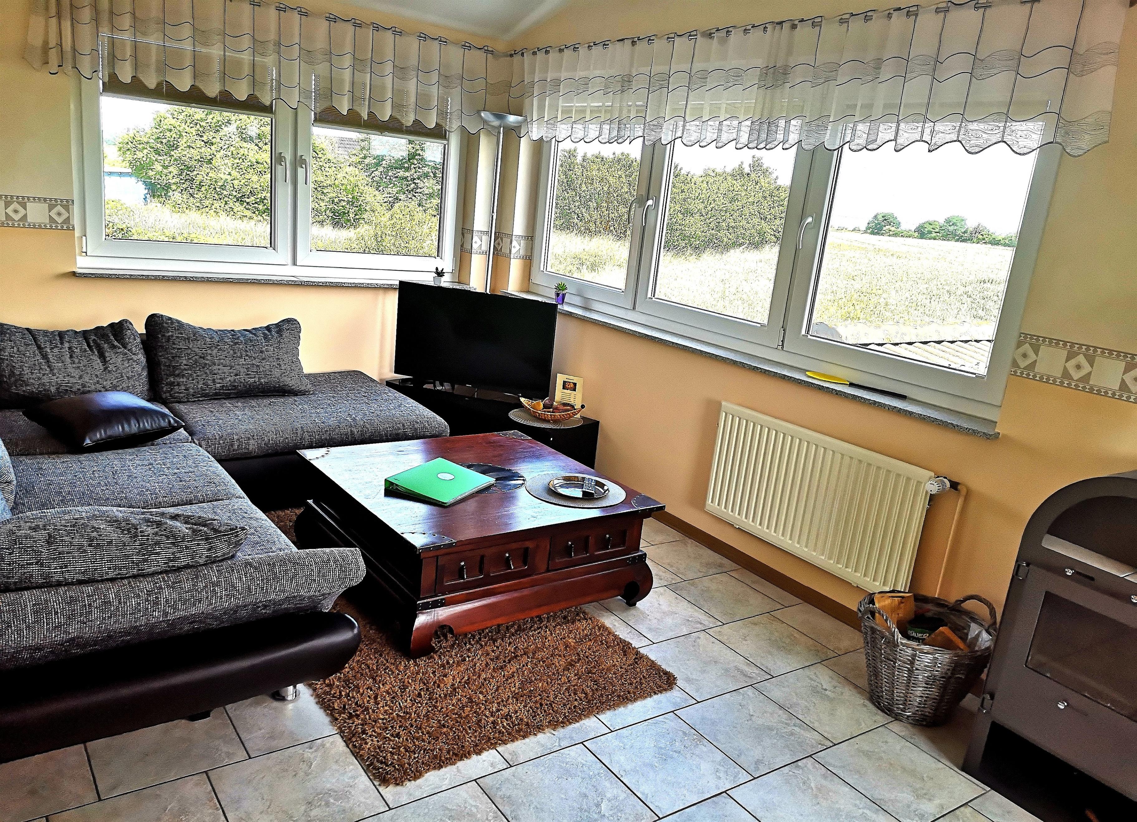 Ein Kaminzimmer mit herrlichem Blick ins Grüne und zur Ostsee , eine Terrasse mit Grill für gemütliche Beisammensein steht zur Verfügung.