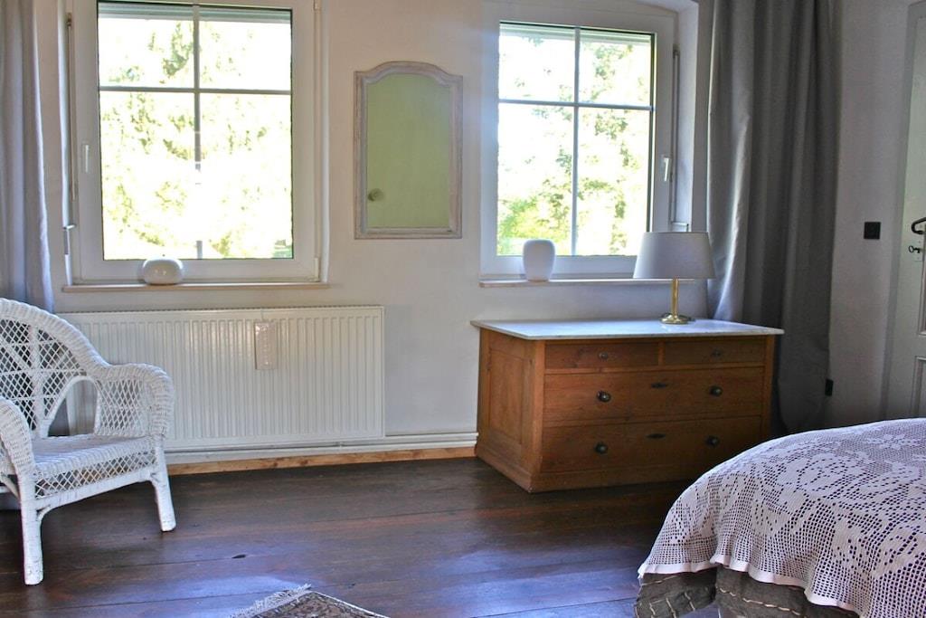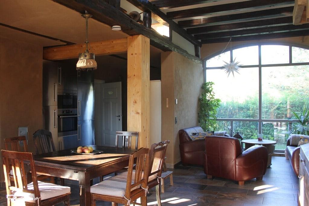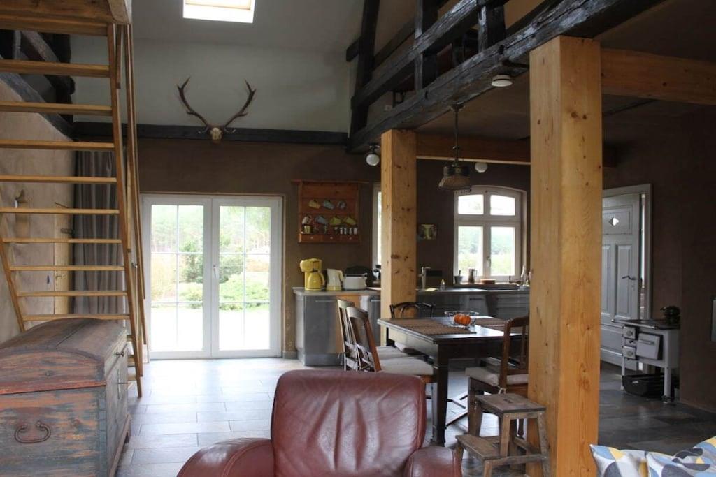 Vores feriehus, moderniseret i 2014, tilbyder cirka 200 kvadratmeter plads, inklusive en 45 kvadratmeter stor stue og køkken med gulvvarme og uhindret udsigt til bjergryggen, seks sengepladser fordelt på to etager, et wellness-område og gratis internetadgang. Et galleri og en ombygget loftsstue med pejs tilbyder rigelig plads til dine kreative udfoldelser. Det ene soveværelse er en gang, der fører til det bagerste soveværelse. I den 2.000 kvadratmeter store have kan du uforstyrret nyde din fritid med at se og aflytte traner på marken, observere rovfugle på jagt eller betragte stjernehimlen. Ejendommen har flere siddeområder, en terrasse, en grill, et bålsted og et vaskerum og er fuldt indhegnet.
