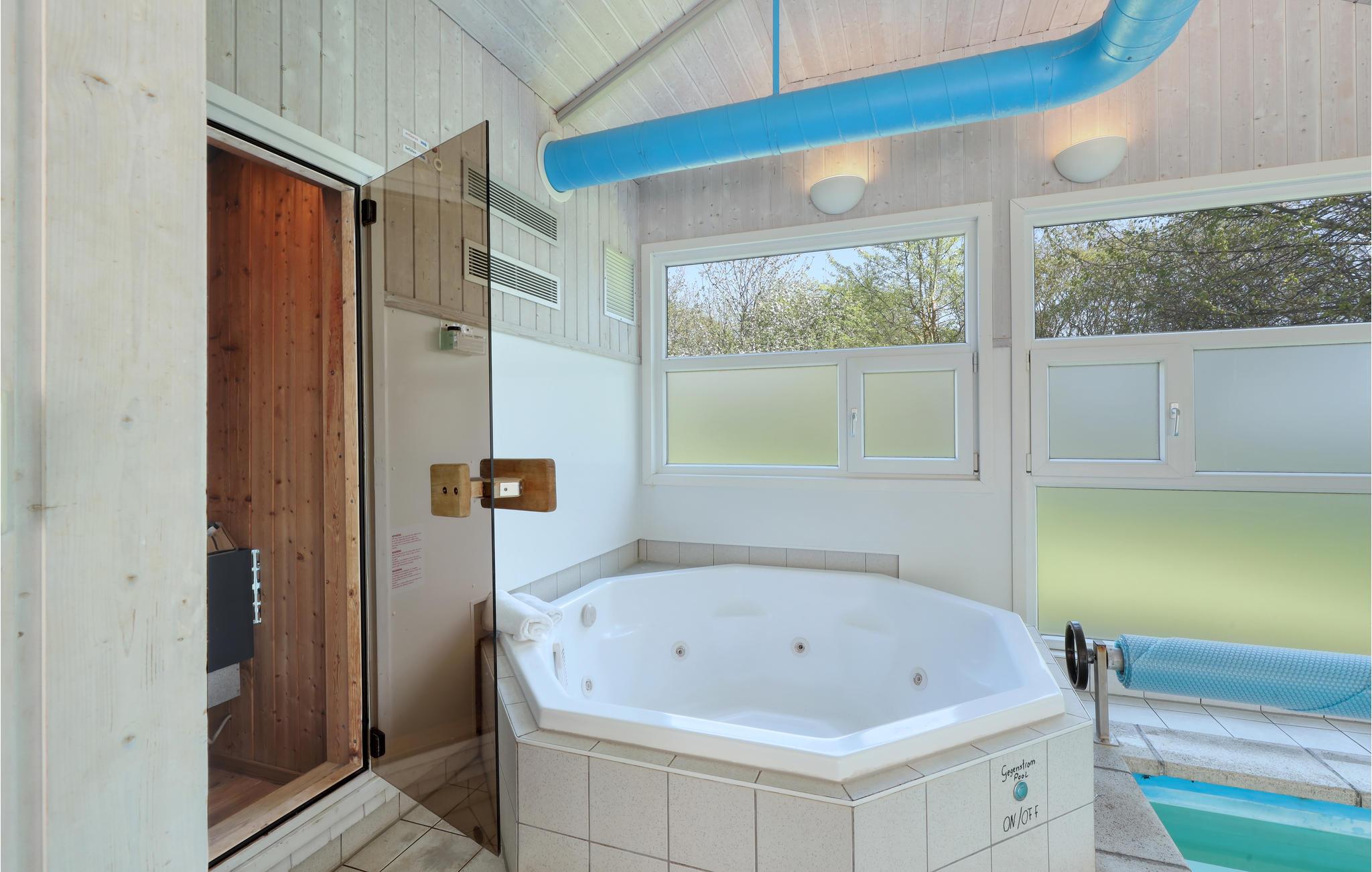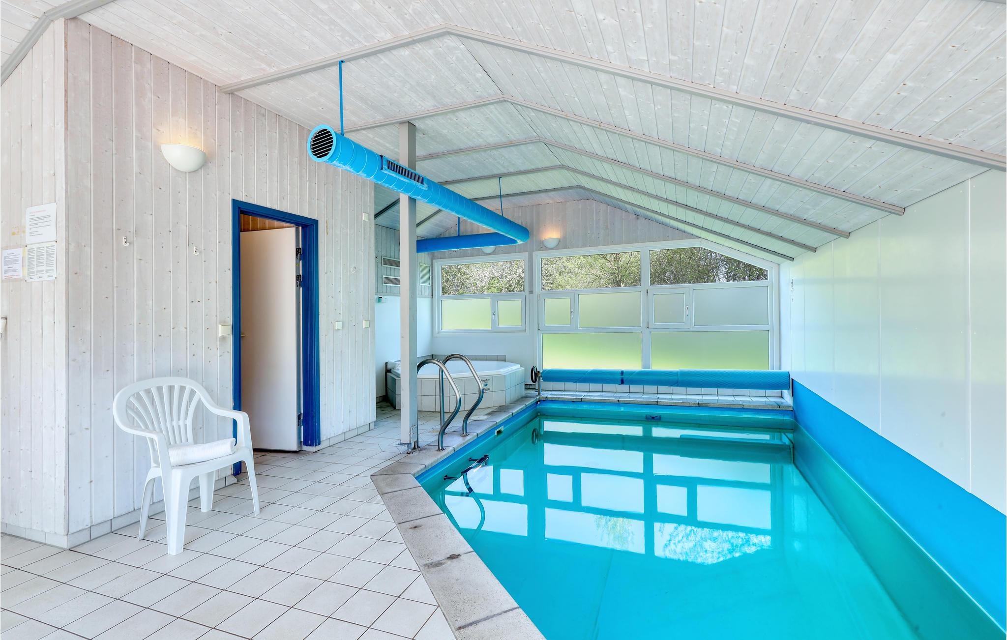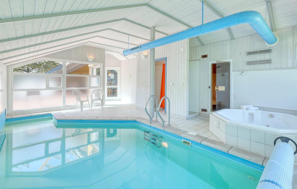 Dette indbydende feriehus med privat pool vil opfylde alle jeres feriedrømme. Sammen med hele familien kan I føle jer godt tilpas her. Glæd jer til at samles i opholdsstuen, som er badet i naturligt lys. Her inviterer brændeovnen til at tilbringe afslappende timer foran den knitrende ild, hvis vejret udenfor er køligt. Fra opholdsstuen kan I se ind til poolrummet gennem en glasvæg og holde øje med børnene, der leger og plasker rundt. Den store pool med modstrømsanlæg indbyder til leg og sjov. Lige ved siden af kan op til fem personer slappe af i boblebadet og få løsnet op i de ømme muskler. Forkæl jer selv med en pause fra hverdagen her! Huset har to delvist overdækkede terrasser, hvor I kan slappe af i det fri. Uanset om I læser, bader i solen eller griller sammen, kan I hygge jer her mens børnene leger i haven.
