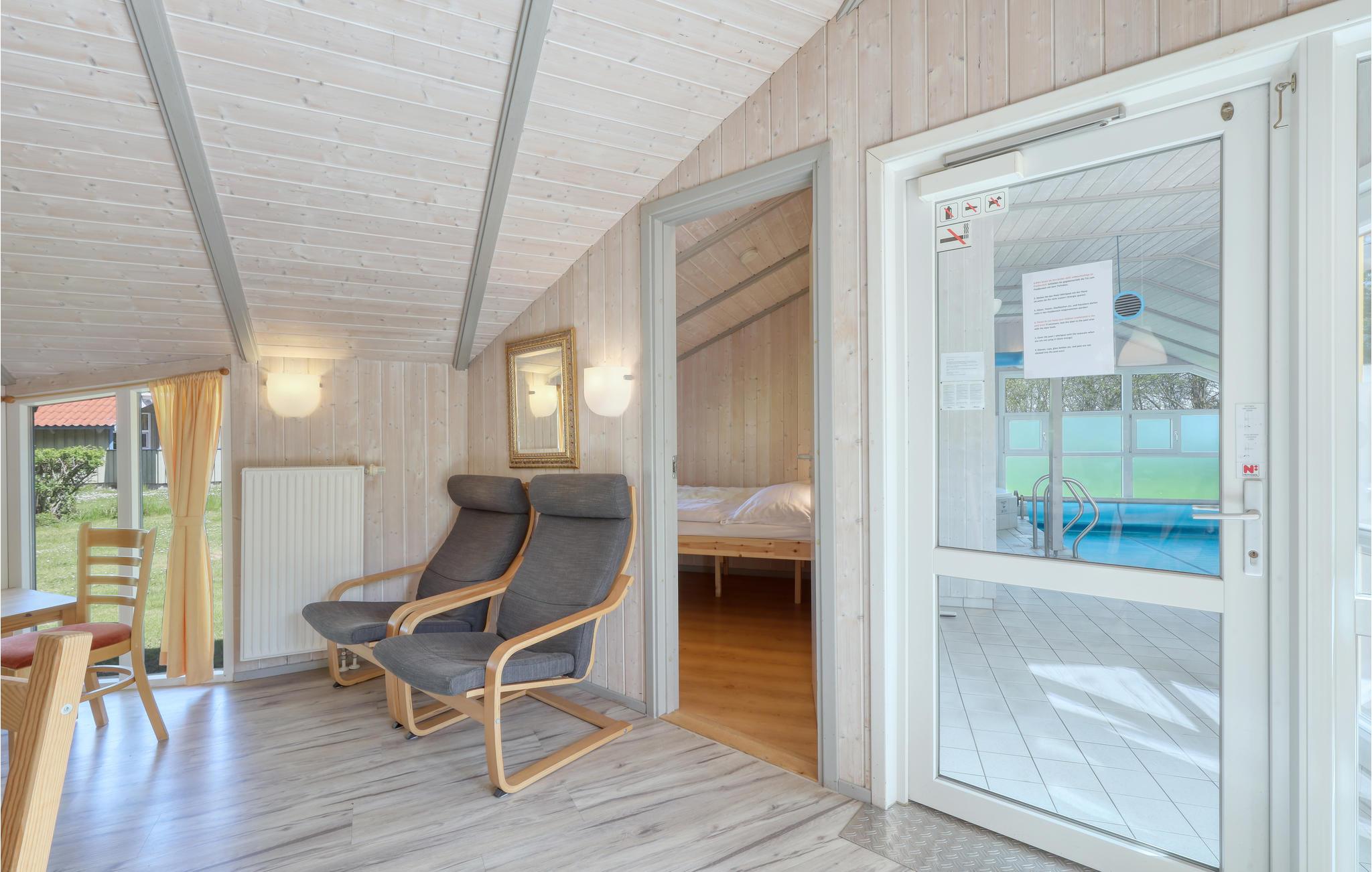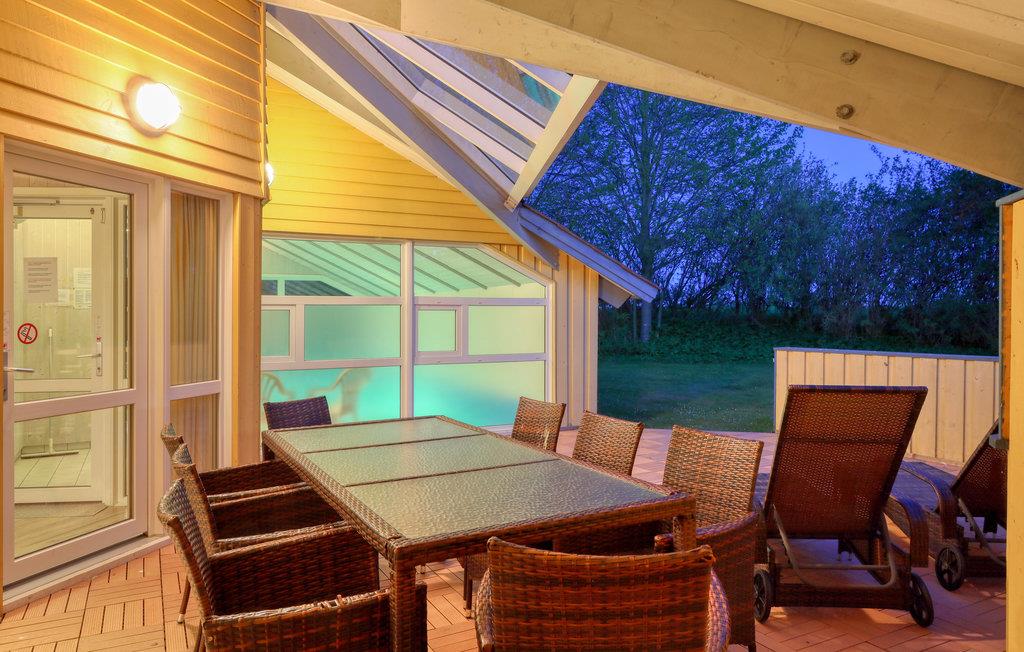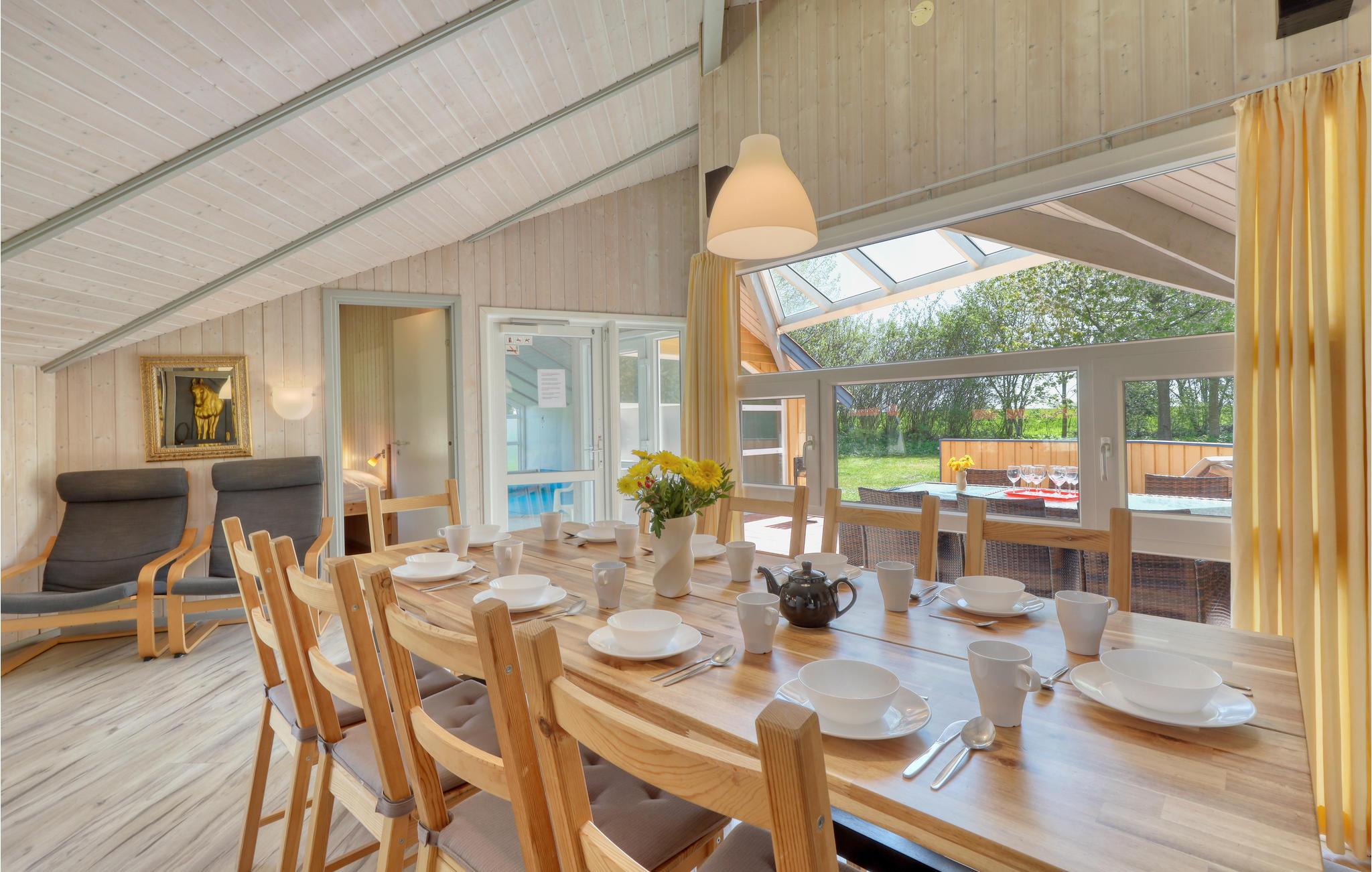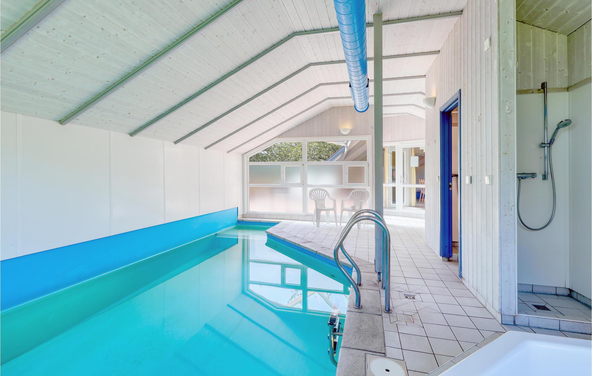 Dette indbydende feriehus med privat pool vil opfylde alle jeres feriedrømme. Sammen med hele familien kan I føle jer godt tilpas her. Glæd jer til at samles i opholdsstuen, som er badet i naturligt lys. Her inviterer brændeovnen til at tilbringe afslappende timer foran den knitrende ild, hvis vejret udenfor er køligt. Fra opholdsstuen kan I se ind til poolrummet gennem en glasvæg og holde øje med børnene, der leger og plasker rundt. Den store pool med modstrømsanlæg indbyder til leg og sjov. Lige ved siden af kan op til fem personer slappe af i boblebadet og få løsnet op i de ømme muskler. Forkæl jer selv med en pause fra hverdagen her! Huset har to delvist overdækkede terrasser, hvor I kan slappe af i det fri. Uanset om I læser, bader i solen eller griller sammen, kan I hygge jer her mens børnene leger i haven.