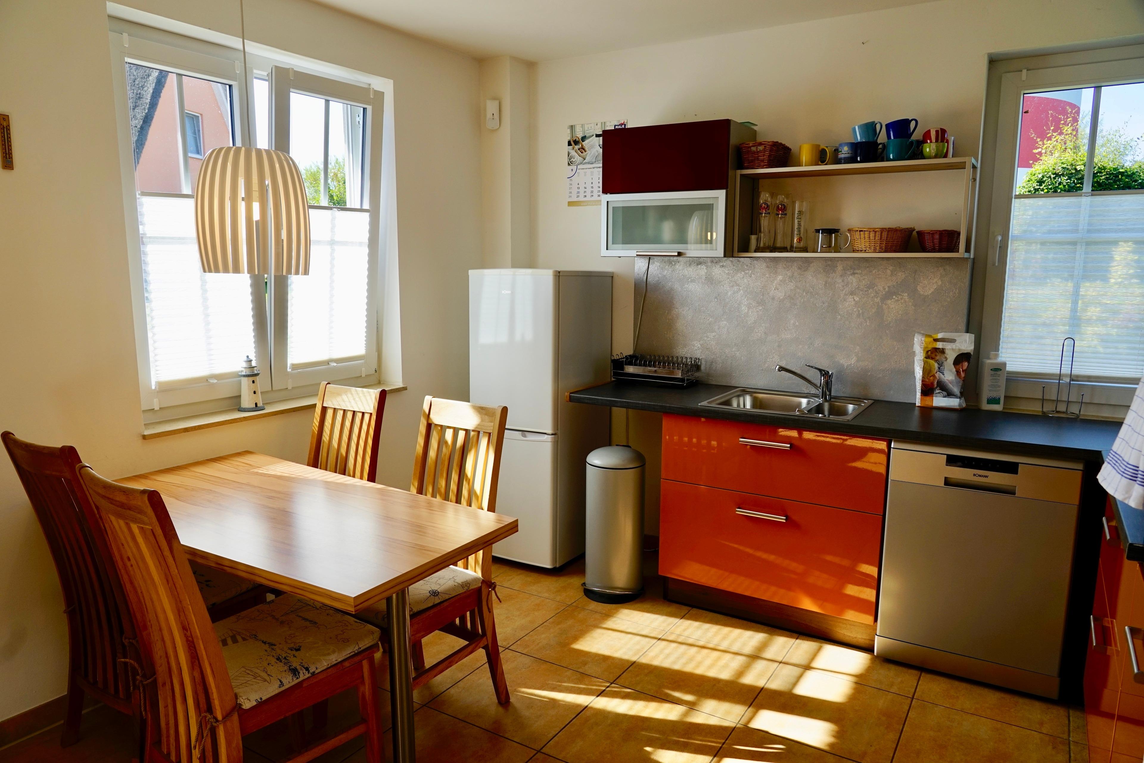 Unser Reethaus ist ein einzigartiges Doppelhaus mit drei Schlafzimmern, das Familien mit zwei Kindern auf ca. 69m² Nutzfläche plus Garten ausreichend Platz bietet. Die Ausstattung umfasst ein Duschbad im Obergeschoss sowie ein Gäste-WC mit Fön im Erdgeschoss. Eine moderne Einbauküche mit Geschirrspülmaschine, Mikrowelle und Backofen sowie eine Waschmaschine stehen zur Verfügung.
