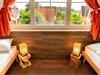 Auf der einladenden Terrasse können Sie laue Sommerabende bei einem Grillabend mit hochwertigen Gartenmöbeln in vollen Zügen genießen. Für zusätzlichen Komfort sind Waschmaschine und Sauna mit einem Münzsystem ausgestattet.