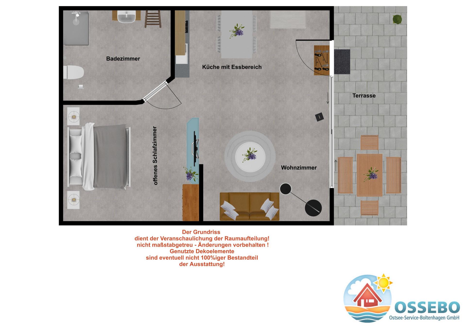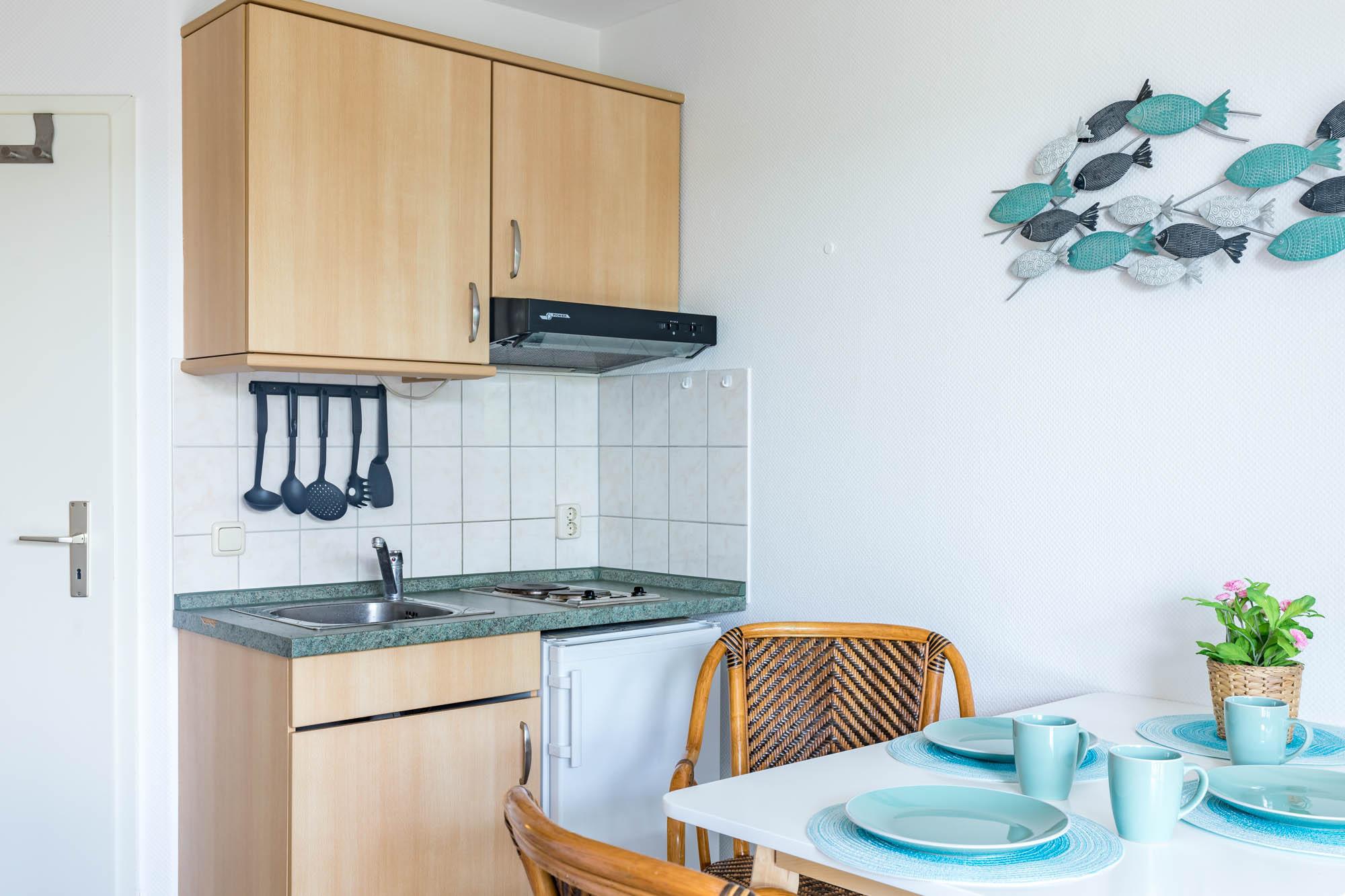 In dieser schönen 1-Zimmer-Wohnung im Erdgeschoss können bis zu 3 Gäste auf rund 40qm Wohnfläche einen erholsamen Ostseeurlaub verbringen.