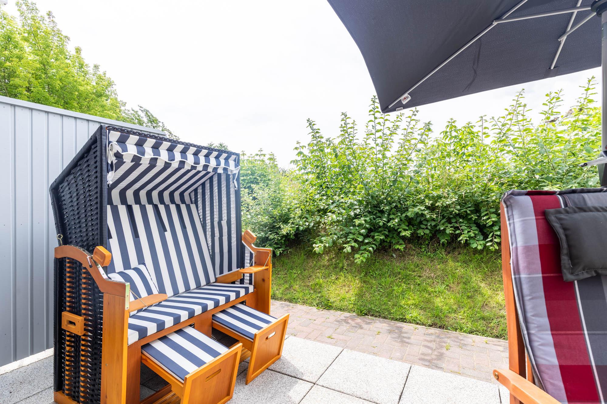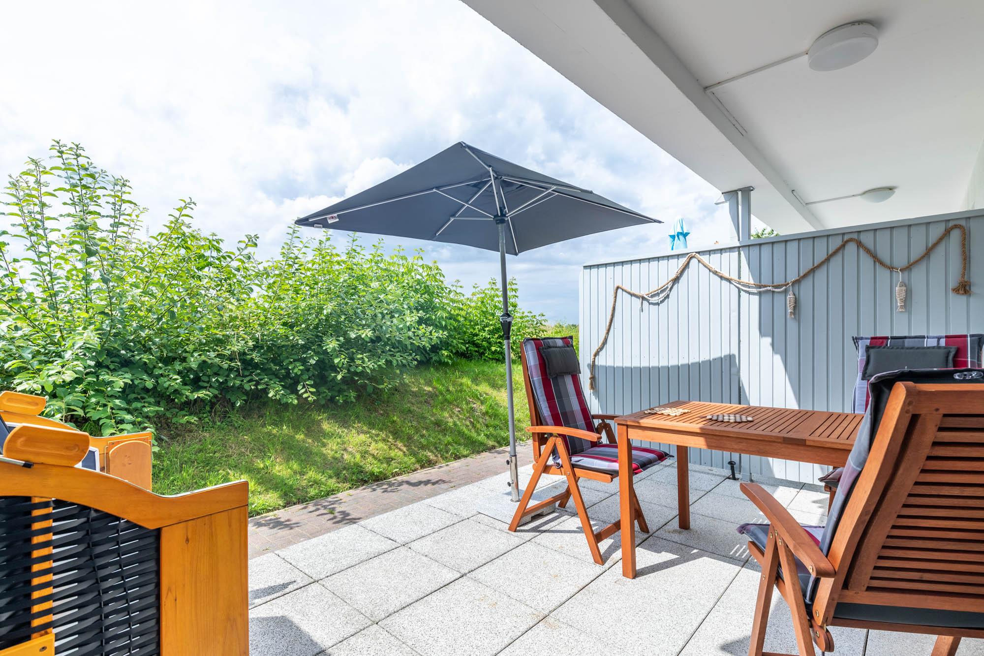 Die große Südterrasse mit Gartenmöbeln rundet die Ausstattung ab.