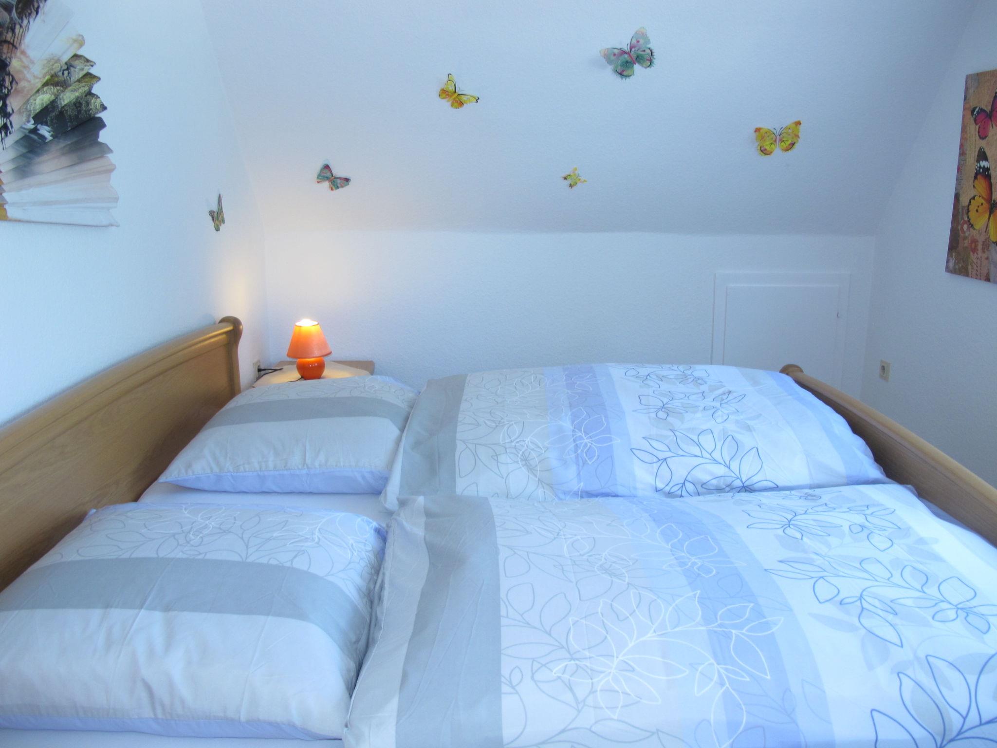 3-room apartment 60 m2 on 1st floor. Object suitable for 4 adults + 2 children. Cosy furnishings: living/sleeping room with 1 double sofabed (130 cm, length 200 cm), satellite TV, hi-fi system and DVD. 1 room with 1 double bed. 1 small room with 1 double bed. Kitchen (oven, dishwasher, 4 ceramic glass hob hotplates, toaster, kettle, microwave, freezer, electric coffee machine) with dining table. Shower/WC. Terrace. Terrace furniture, barbecue, deck chairs (2). View of the lake. Facilities: washing machine, children's high chair, baby cot. Internet (WiFi, free). Please note: non-smokers only. Smoke alarm, fire extinguisher.