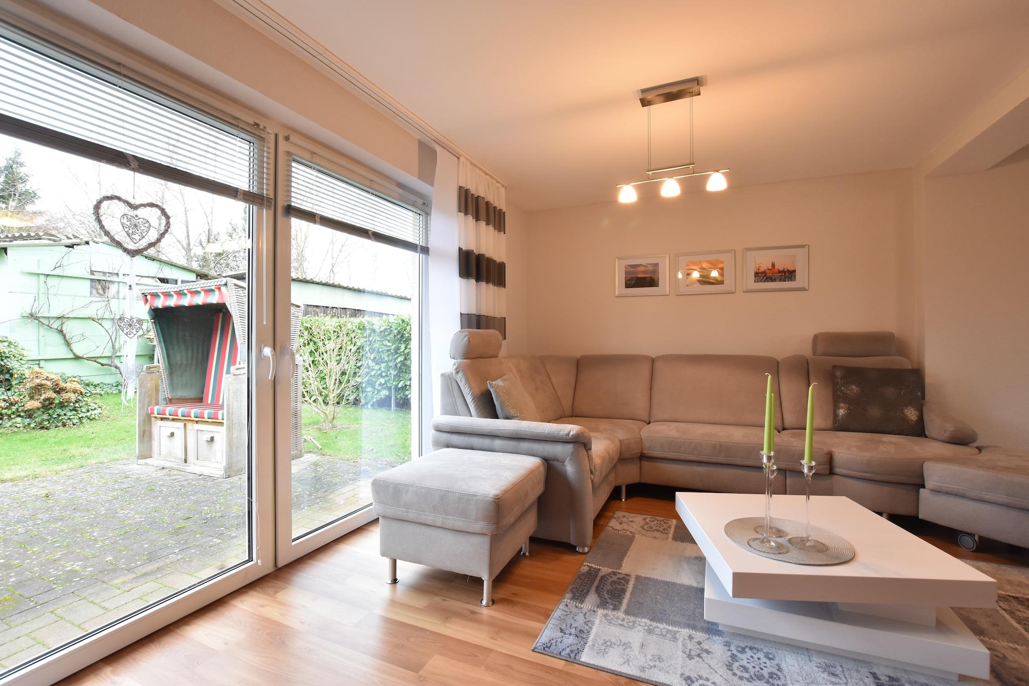 Kun 3 km fra stranden og badesteder tilbyder denne hyggelige lejlighed i stueetagen i Hohenkirchen et afslappet tilflugtssted for familier eller par. Stuen/spisestuen i åbent plan har fladskærms-tv, opholdsområde og spisebord, mens det fuldt udstyrede køkken omfatter kaffemaskine, ovn, mikroovn, opvaskemaskine og køleskab med fryser - perfekt til nem selvforplejning. To soveværelser med dobbeltsenge, det ene med barneseng, giver afslappende sovearrangementer, og badeværelset har bruser, toilet og håndvask. En høj stol er tilgængelig for de mindste, og varme overalt sikrer komfort året rundt. Udenfor kan du nyde en privat terrasse og have med liggestole, grill og legeredskaber, herunder en sandkasse og rutsjebane. Med generelle forsyninger 6 km væk og Hansestadt Wismar kun 10 km fra dit dørtrin, blander denne beliggenhed landskabsro med kystnære bekvemmeligheder.