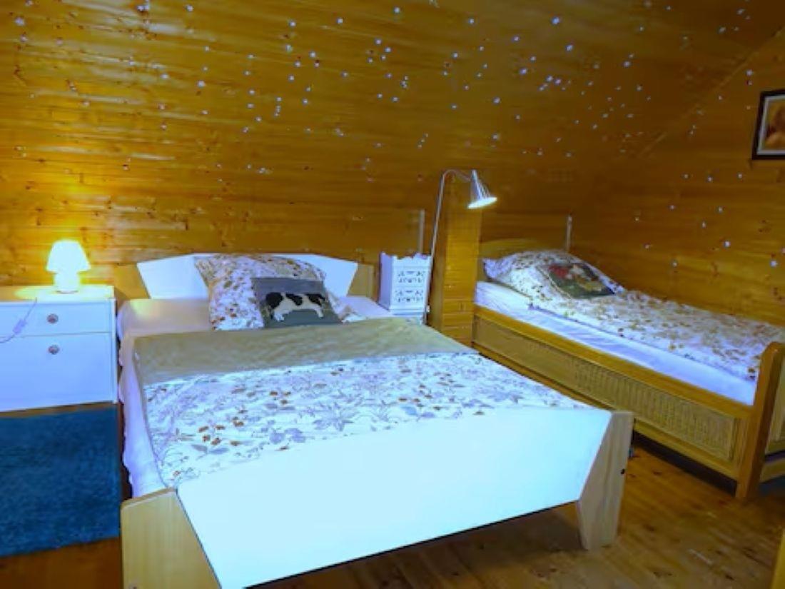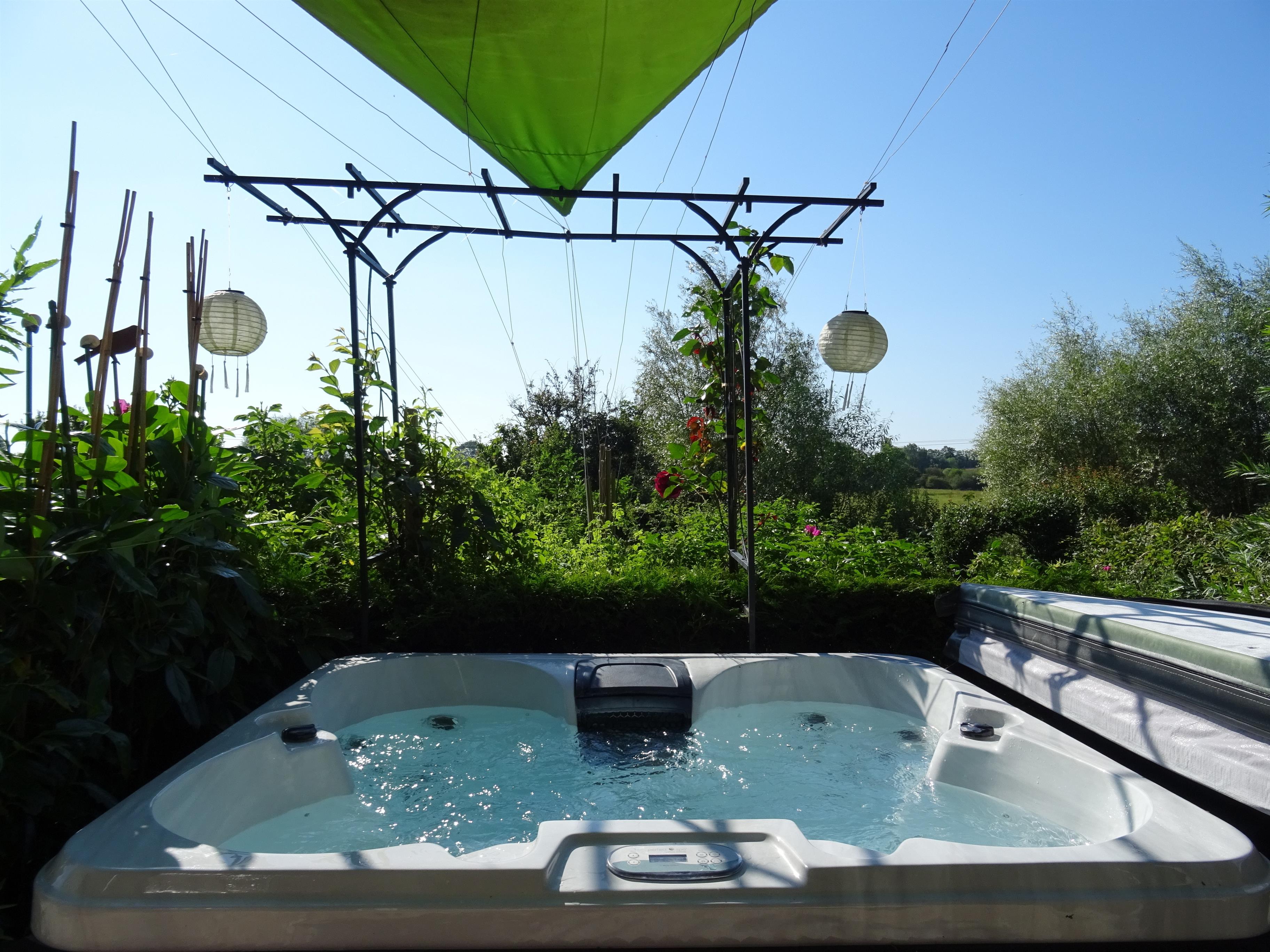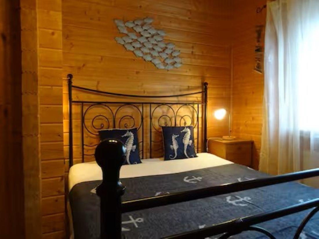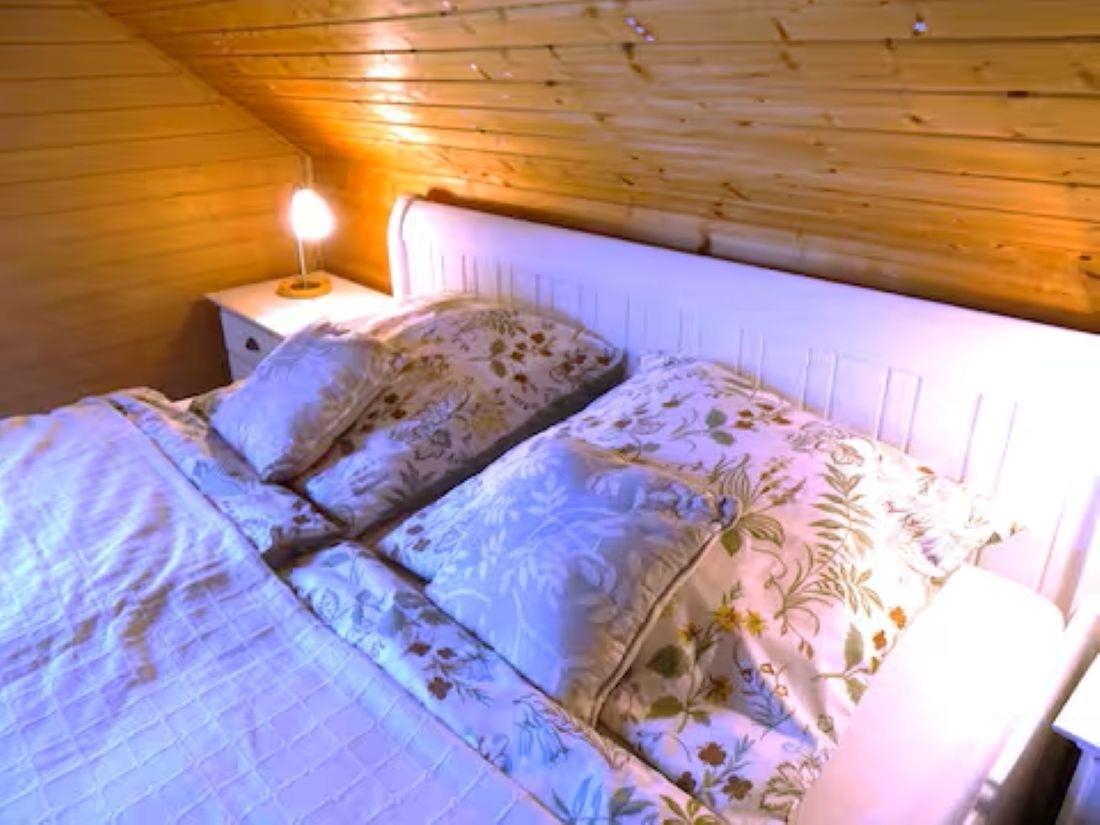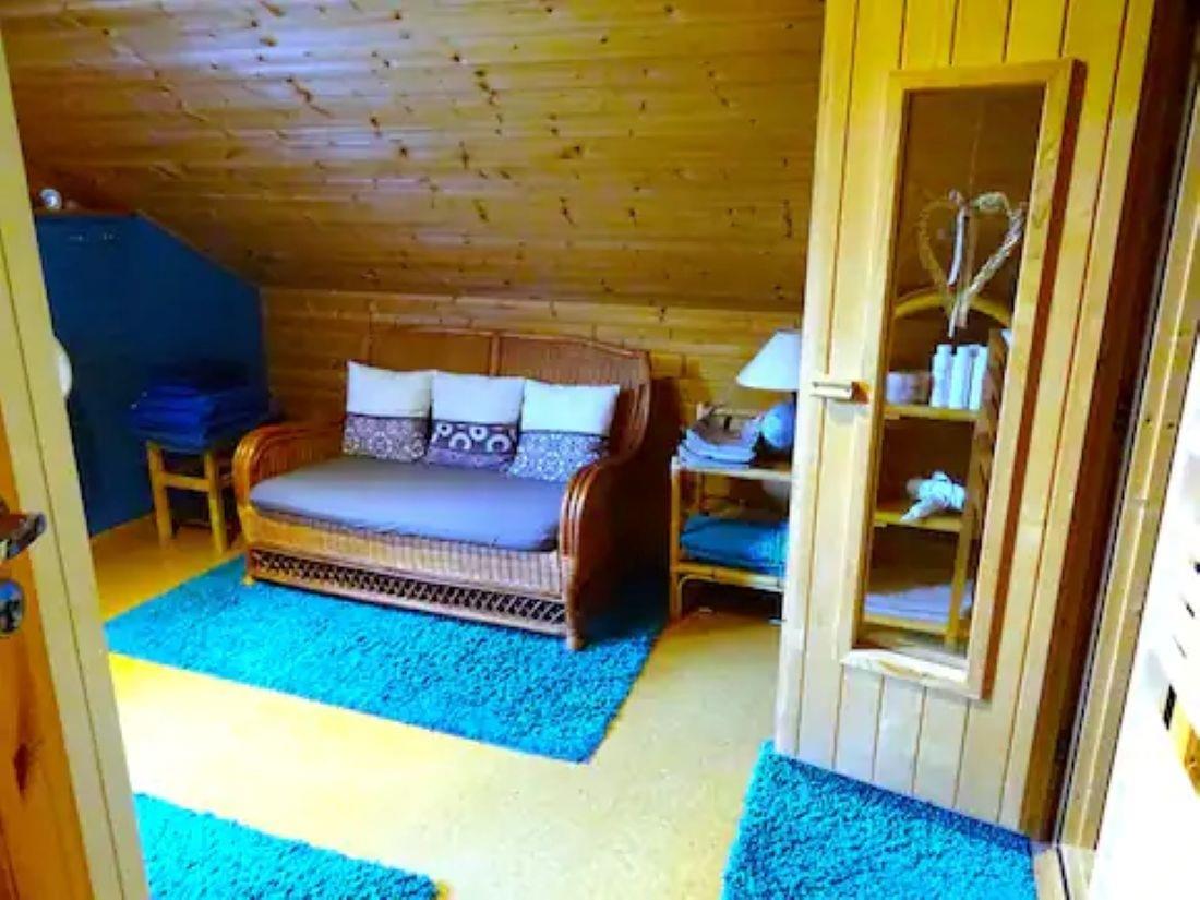 NEU ! Strandnahes sehr gemütliches Blockhaus in ruhiger ländlicher Lage mit ganzjährig beheiztem Außenwhirlpool und Sauna .