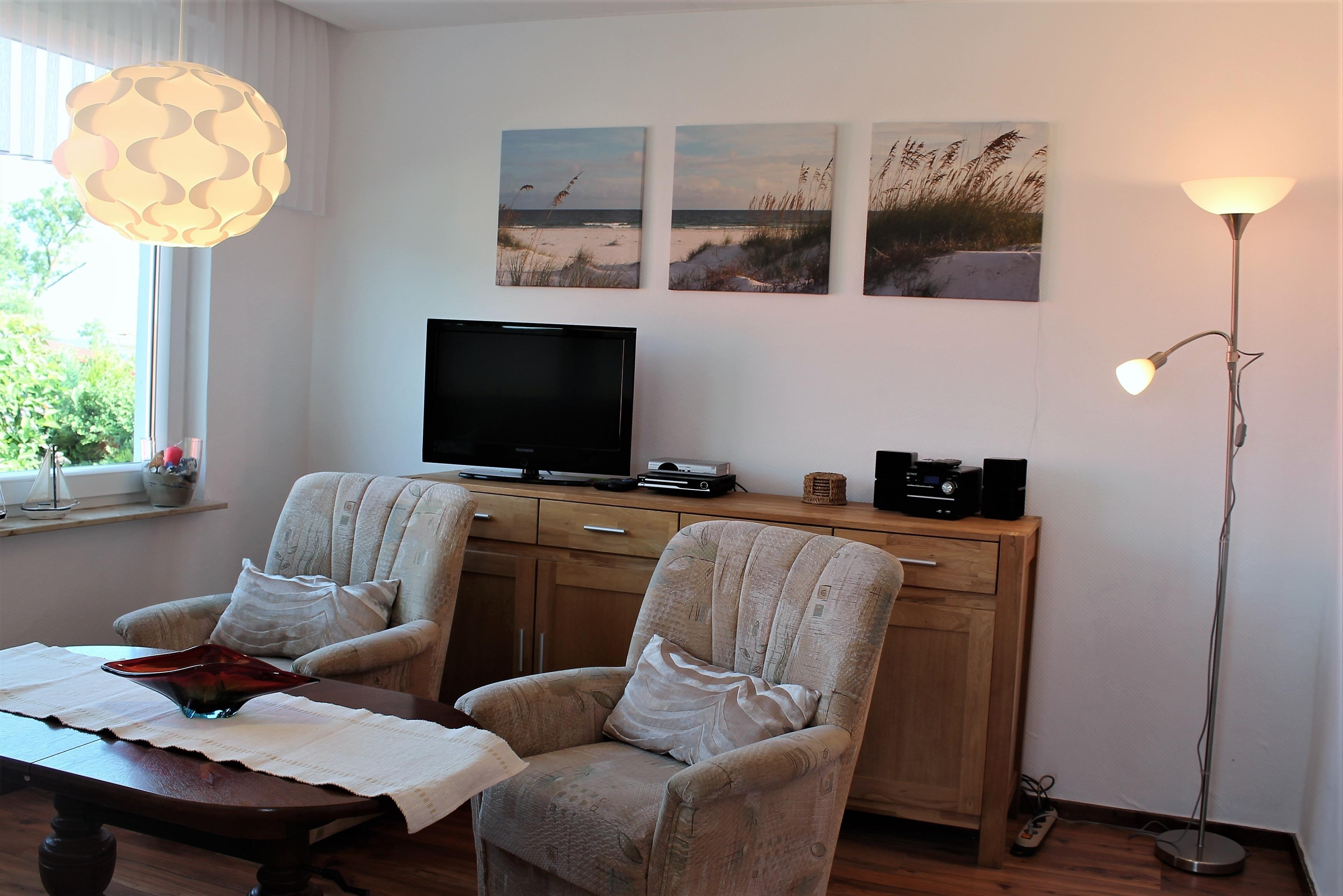 Ausstattung: Das ganzjährig beheizbare 3-Zimmer-Ferienhaus bietet Platz für bis zu vier Personen auf 47m² und ist ausgestattet mit Wohnzimmer, Schlafzimmer, Kinderzimmer(oder auch zweites Schlafzimmer), Küche und Bad(WC/Dusche).Das Wohnzimmer bietet Sitzmöglichkeiten (Couch und zwei Sessel) um einen ausziehbaren und höhenverstellbaren Tisch. Ebenfalls sind im Wohnzimmer ein Flachbildfernseher, DVD-Player, eine Musikanlage mit Radio und CD-Player und eine Spielebox mit Brettspielen vorhanden. Sie können vom Wohnzimme auf die schöne Bucht der Ostsee, die " Wohlenberger Wiek" blicken. Im Schlafzimmer befinden sich ein Doppelbett(1,80x2,0m) und ein Kleiderschrank. Das Kinderzimmer (oder auch zweites Schlafzimmer) ist mit Etagenbett, je 0,90x2,0m, einem Tisch mit zwei Sitzgelegenheiten, sowie mit einem Flachbildfernseher ausgestattet. Die neue Küche ist komplett mit Elektroherd (Ceranfeld), Backofen, Geschirrspülmaschine, Mikrowelle, Kühlschrank mit Gefrierfach, Kaffeemaschine, Toaster und Wasserkocher ausgestattet. Das Bad verfügt über Dusche und WC, sowie einer Campingwaschmaschine für Kleinwäsche. Bei Bedarf kann ein Kinderreisebett und ein Hochstuhl beigestellt werden.