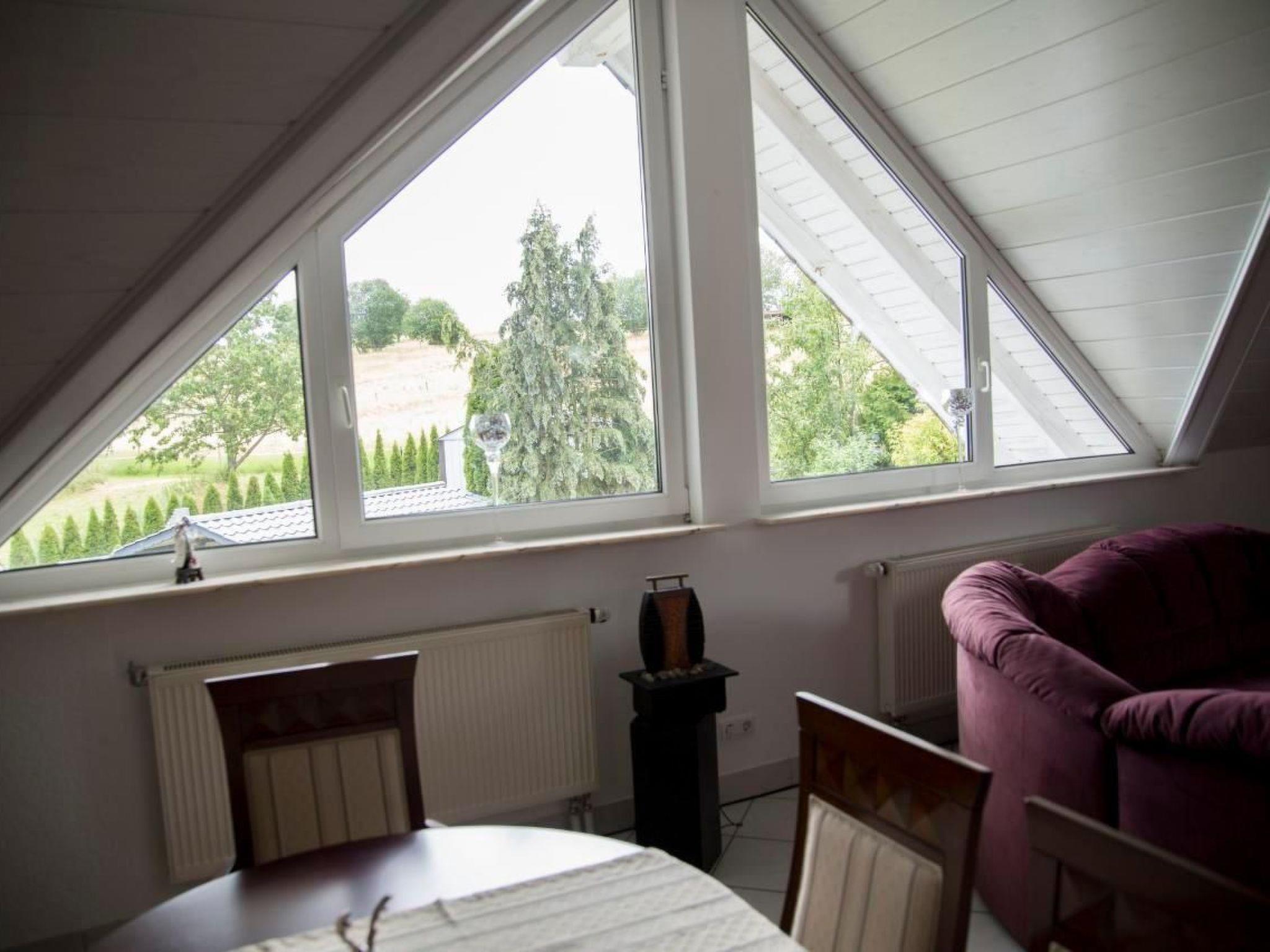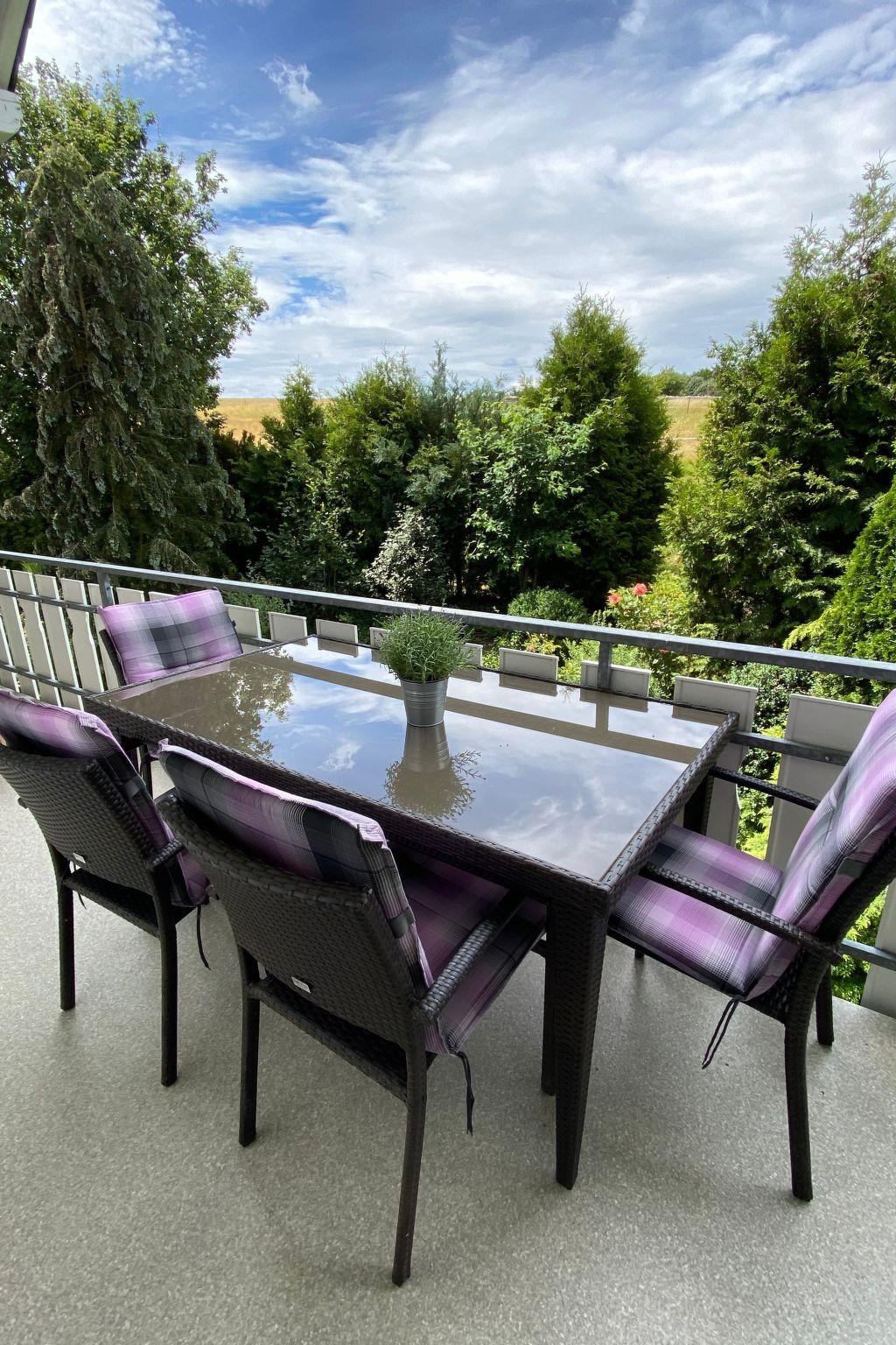 Outside, the holiday flat impresses with its location on the outskirts of the village, surrounded by greenery. The charming balcony with its garden furniture invites you to linger and enjoy the idyllic tranquillity. For those seeking relaxation, this outdoor space offers the perfect place to unwind.