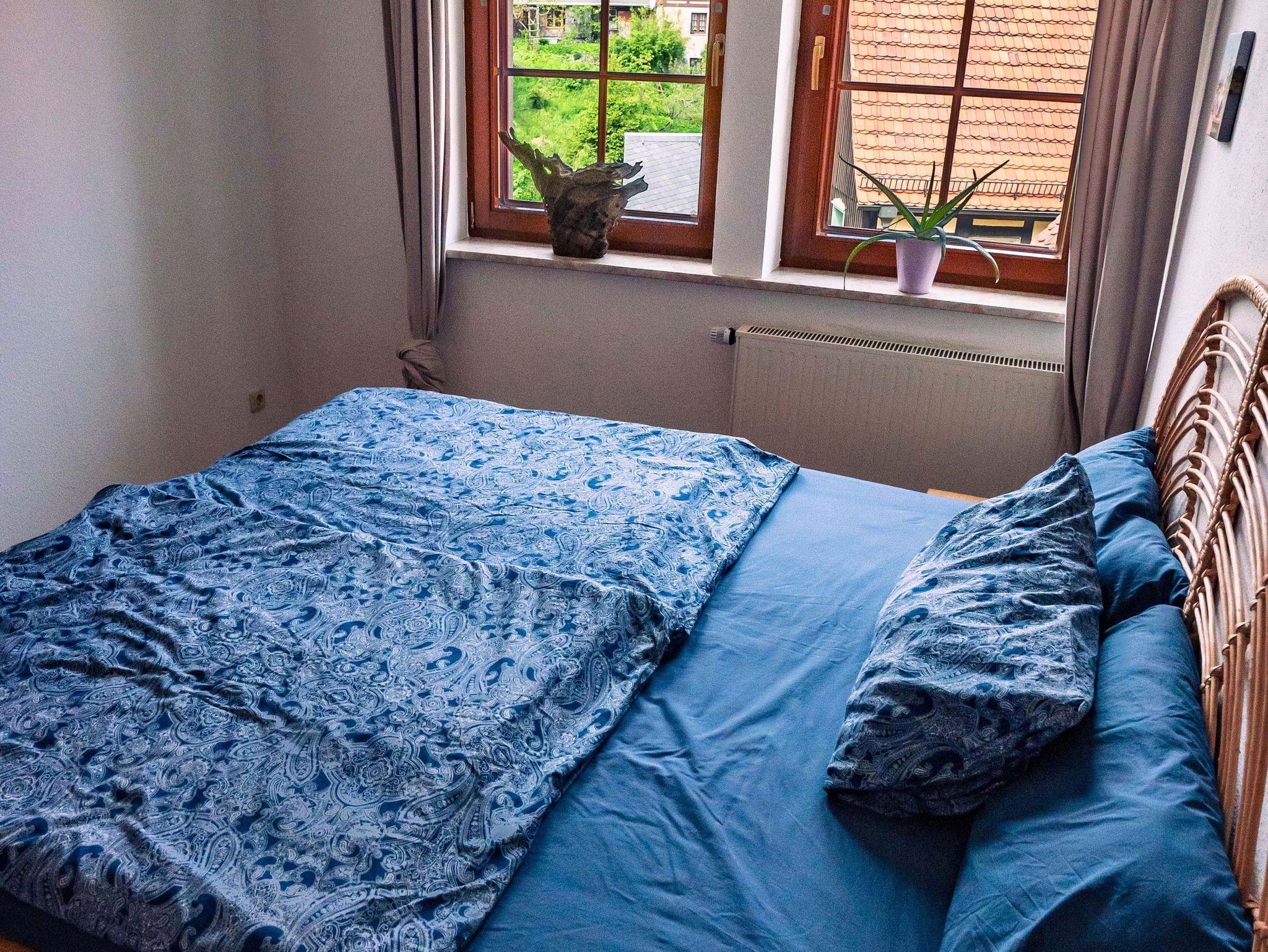 - Das Schlafzimmer „Rathaus“ mit Doppelbett sowie die Möglichkeit eine Matratze für 1 Kind bis 12 Jahre bereitzustellen