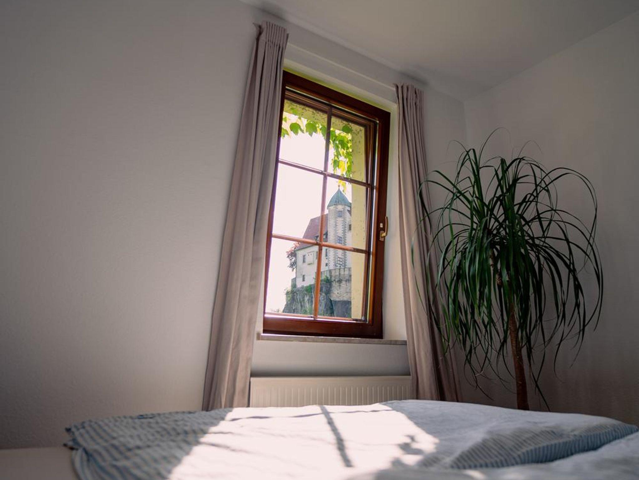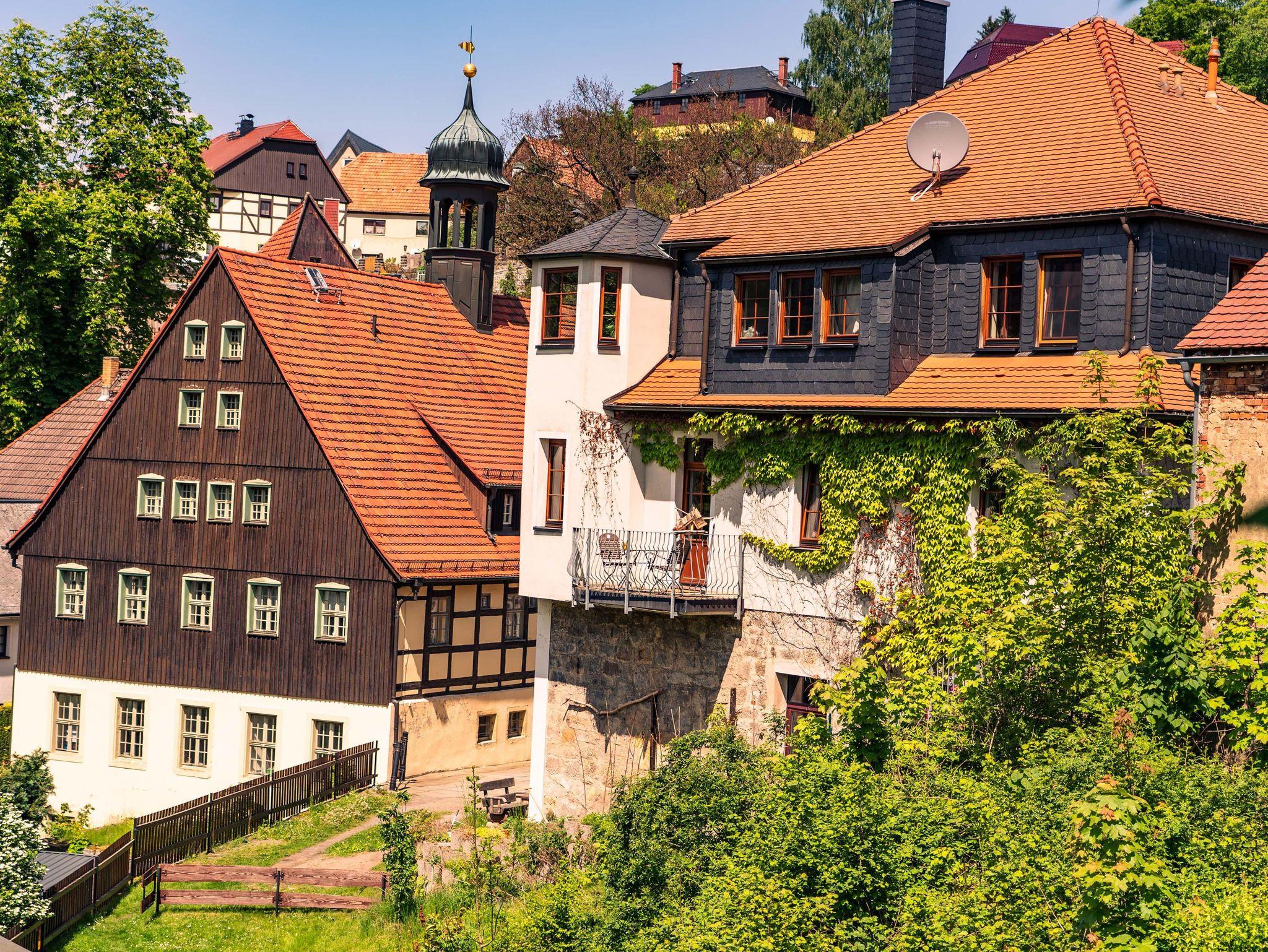 Es ist die Aussicht auf Burg und Felsenlandschaft des Nationalparks, die den Aufenthalt in unserer Ferienwohnung einmalig gestaltet. Vom Balkon sowie fast allen Zimmer hat man einen direkten Blick über den historischen Bärengarten, auf die Burg Hohnstein, das Felsenmassiv mit dem Gipfel Großer Halben und auch den berühmten Malerweg.
