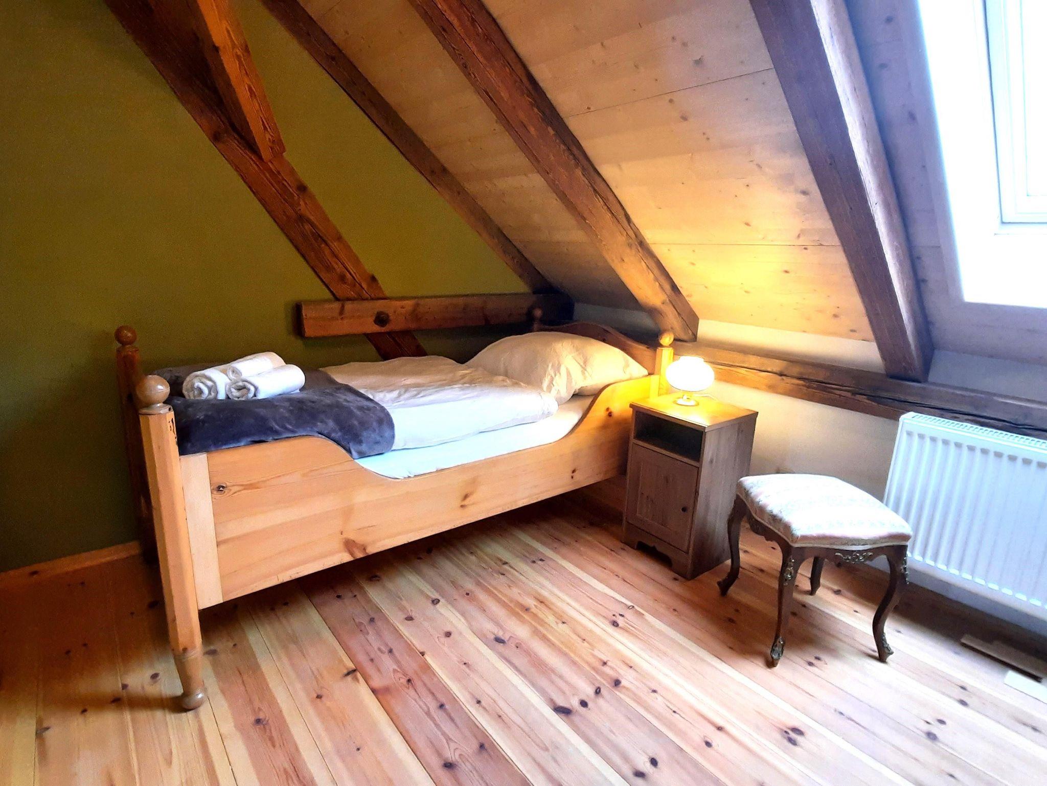 Auf 114 m² Wohnfläche erwartet Sie eine neu errichtete, überaus großzügige Ferienwohnung mit besonderem Charme. Gelegen im Dachgeschoss schaffen alte Dielenfußböden, sichtbare Deckenbalken und natürliche Lehmwände eine warme, ruhige Atmosphäre, in der man sofort ankommt und durchatmet. Die Wohnung verbindet Weite und Gemütlichkeit. Viel Licht, natürliche Materialien und ein offenes Raumgefühl machen sie zum idealen Rückzugsort nach einem Tag in der Natur. Die Ferienwohnung „Blauregen“ steht ab März 2026 erstmalig als Übernachtungsmöglichkeit zur Verfügung.