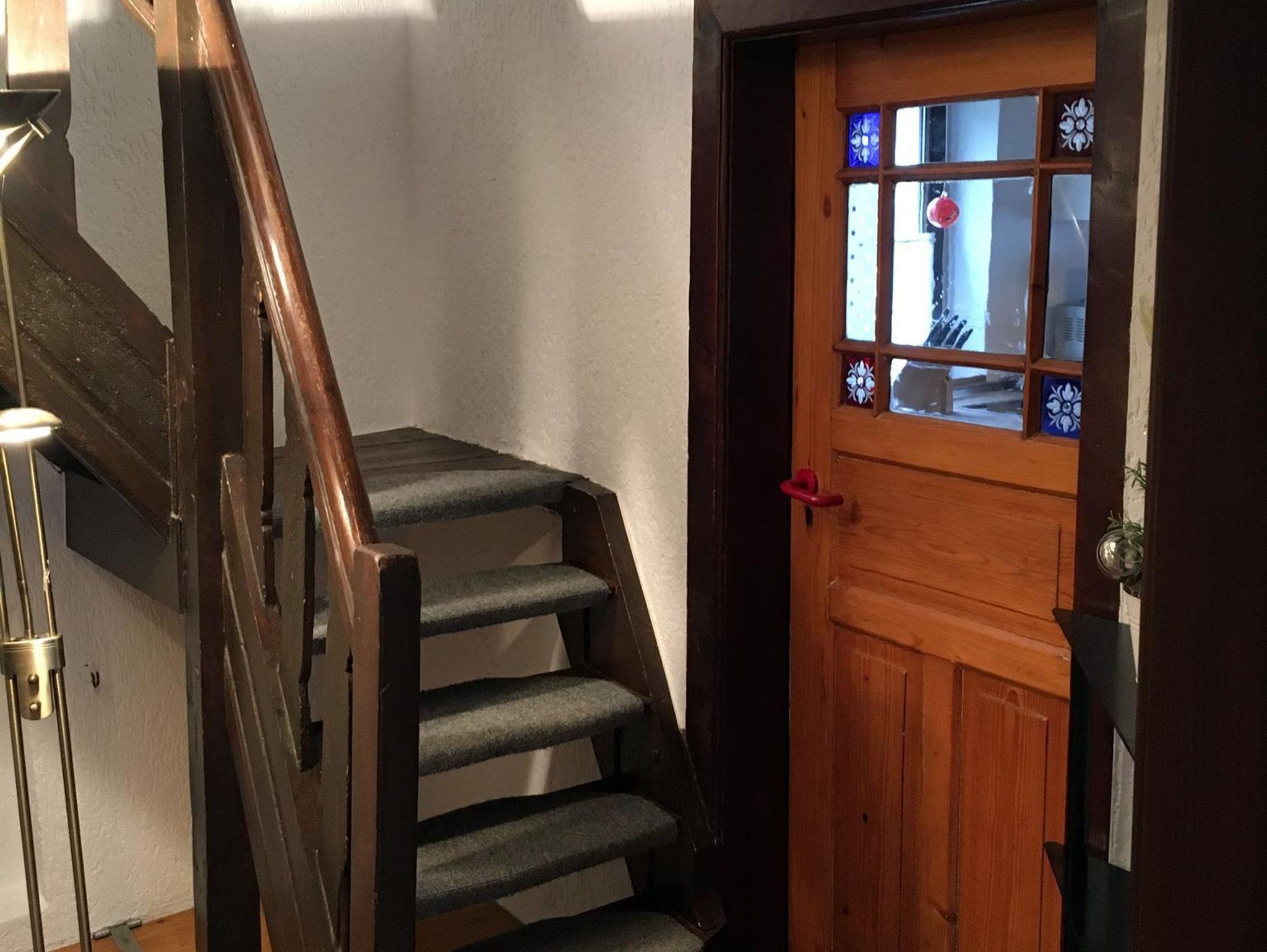 Die Türen sind überwiegend noch in ihrem ursprünglichen Zustand und somit nicht mit unserer heutigen Körpergröße kompatibel. Das heißt für Sie als Gast, dass das Haus von Ihnen etwas „Demut“ fordert, damit Sie sich nicht den Kopf stoßen. Original ist auch die untere Treppe, die bei Begehen deshalb Ihre volle Aufmerksamkeit fordert – rückwärts hilft evtl. und auf Fälle festhalten am Geländer. Auf der anderen Seite gibt es nichts gemütlicheres als ein Fachwerkhaus.