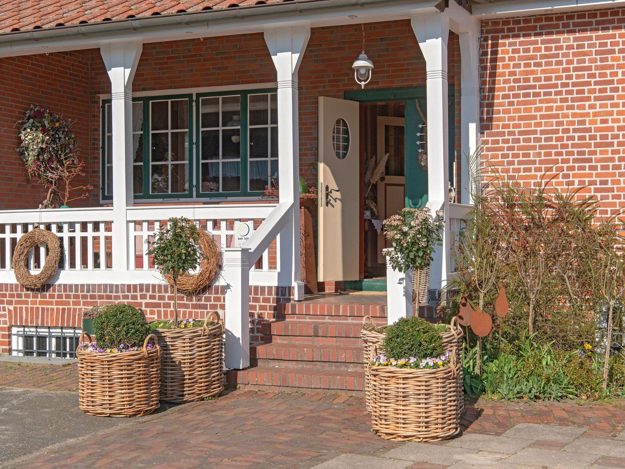 Wir laden Sie zu entspannten Urlaubstagen in unseren liebevoll eingerichteten Ferienwohnungen und Doppelzimmern ein in unserem wunderschönem Altländer Bauernhaus. Das Haus wurde 1908 von zwei Architekten aus Bremen entworfen, nachdem das alte Bauernhaus abgebrannt war. Das neue Gebäude sollte zur Region passen, aber auch ein paar Besonderheiten haben. Man entschied sich damals für eine Veranda mit Haupteingang an der Seite und dahinter eine großzügige Empfangshalle mit einer Galerie. Die sogenannte Brauttür im Giebel ist nur ein Schmuckstück und war nie begehbar.