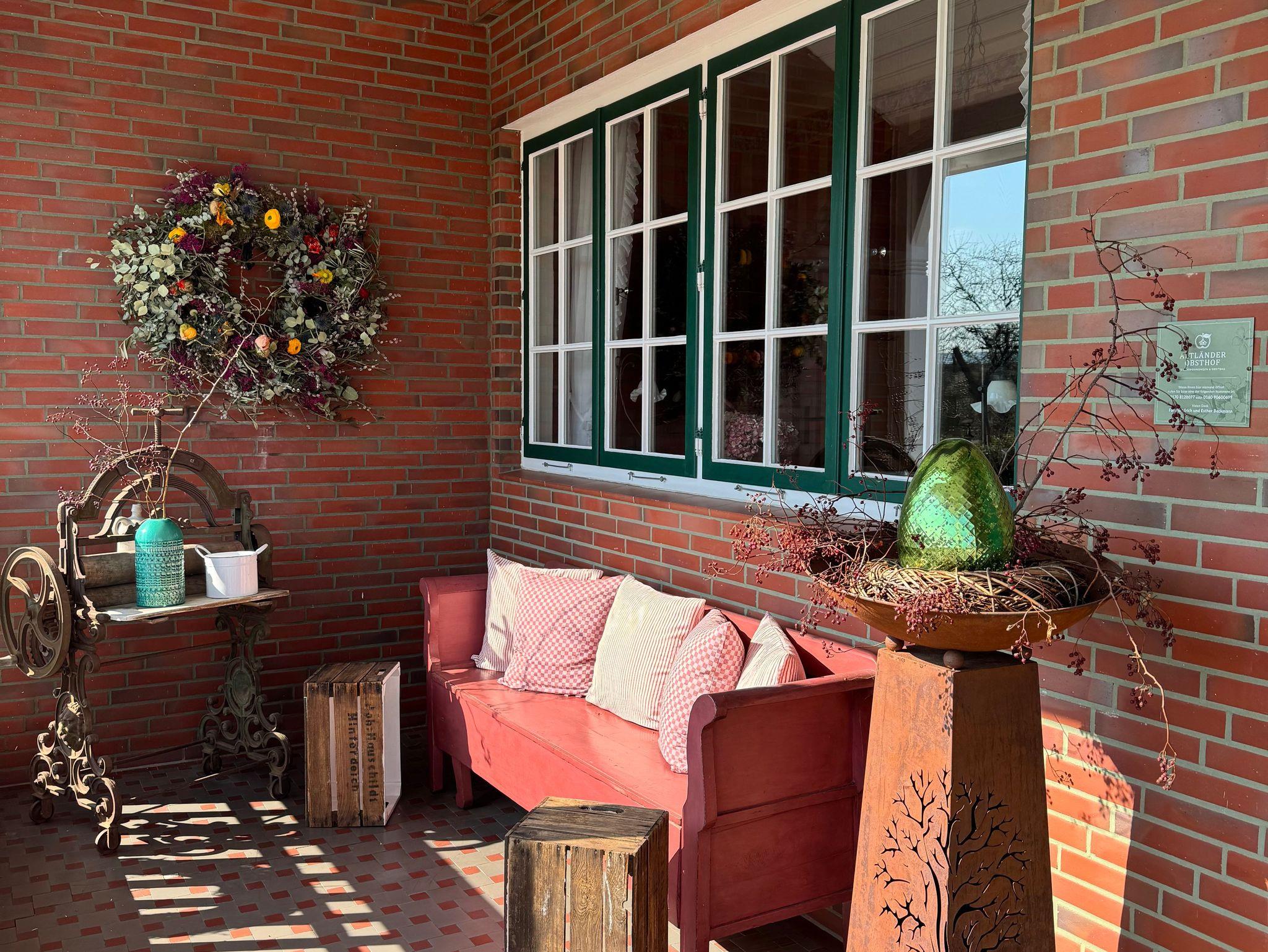 Wir laden Sie zu entspannten Urlaubstagen in unseren liebevoll eingerichteten Ferienwohnungen und Doppelzimmern ein in unserem wunderschönem Altländer Bauernhaus. Das Haus wurde 1908 von zwei Architekten aus Bremen entworfen, nachdem das alte Bauernhaus abgebrannt war. Das neue Gebäude sollte zur Region passen, aber auch ein paar Besonderheiten haben. Man entschied sich damals für eine Veranda mit Haupteingang an der Seite und dahinter eine großzügige Empfangshalle mit einer Galerie. Die sogenannte Brauttür im Giebel ist nur ein Schmuckstück und war nie begehbar.