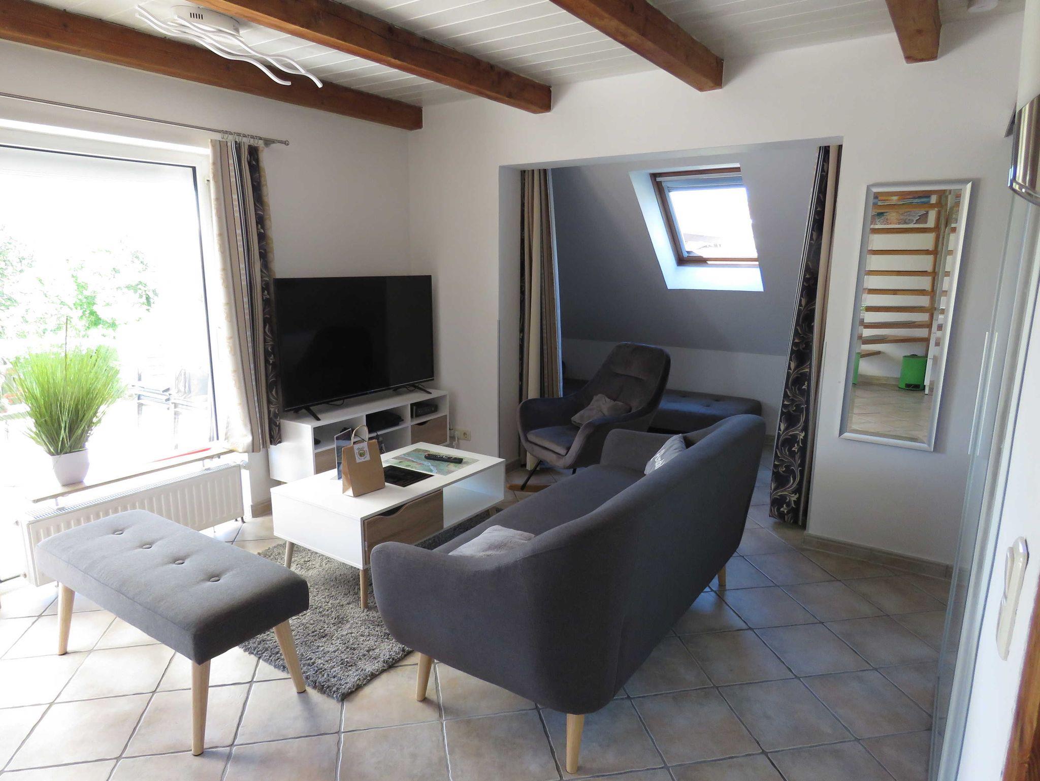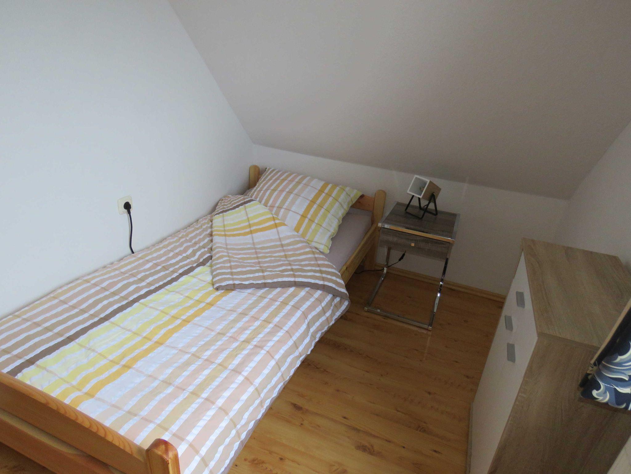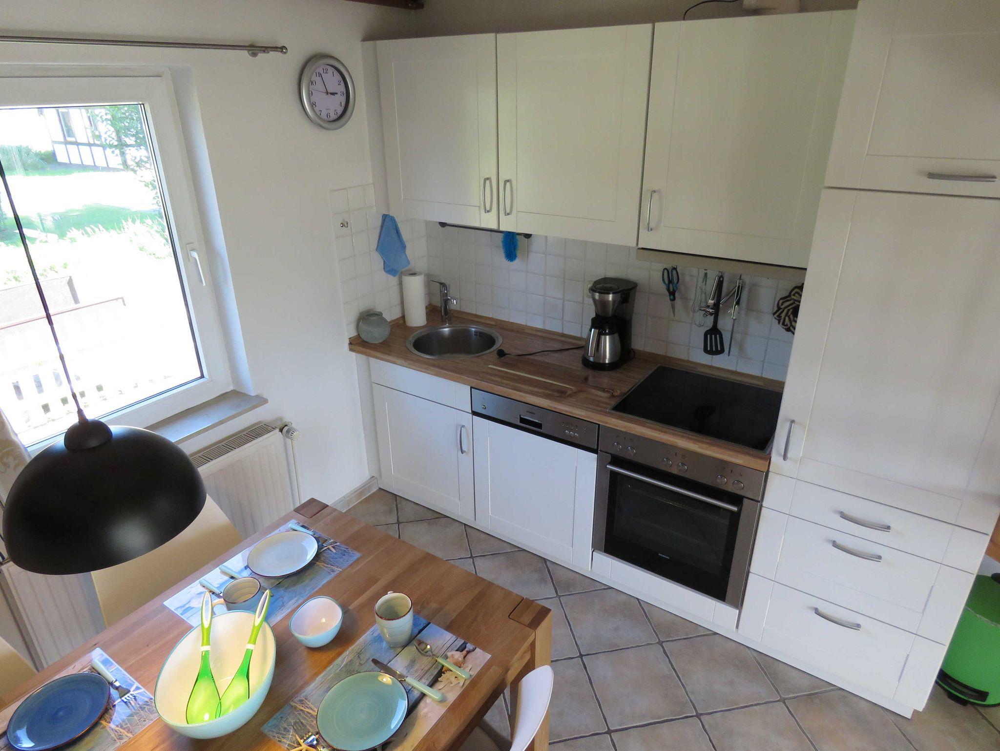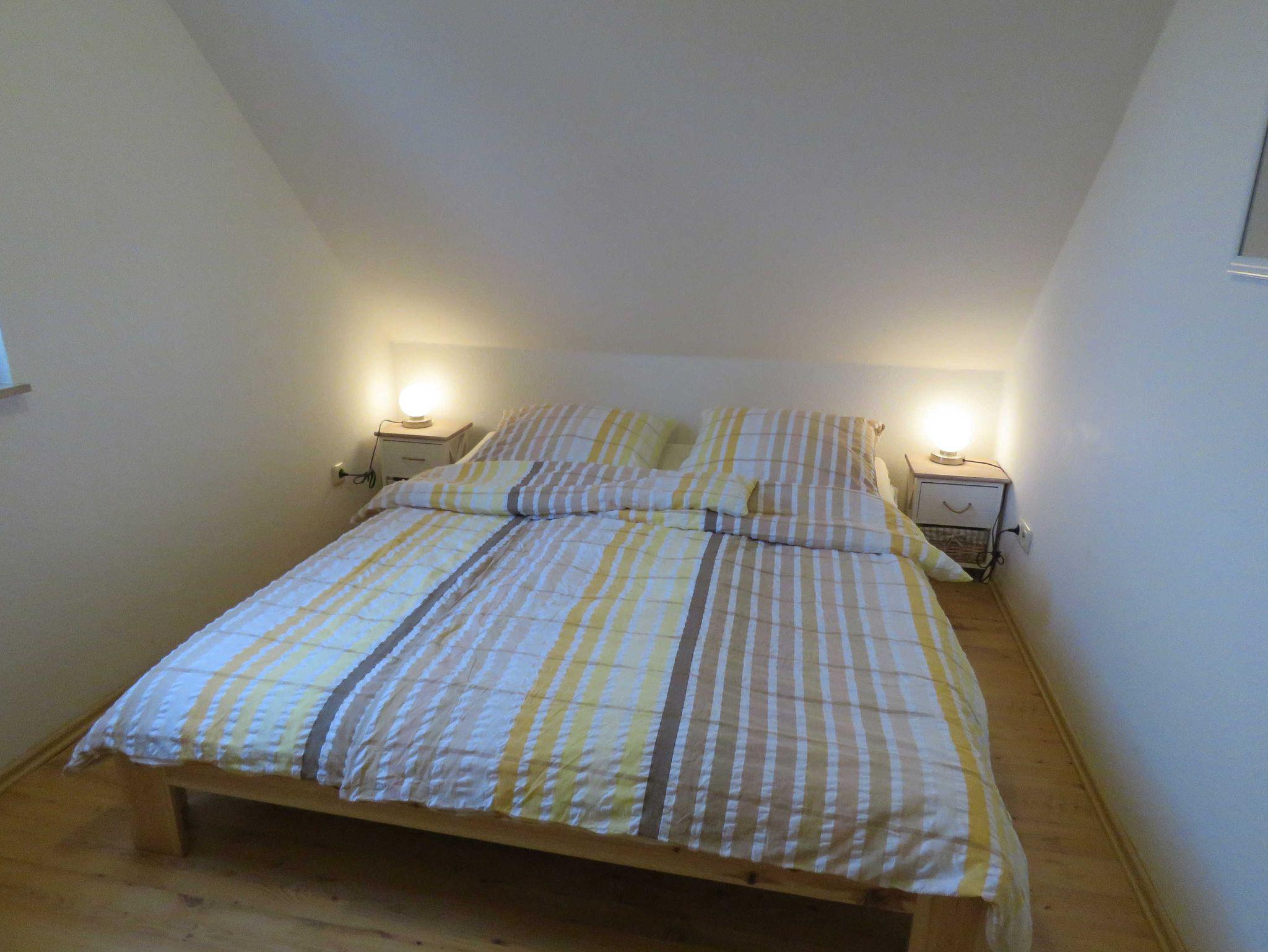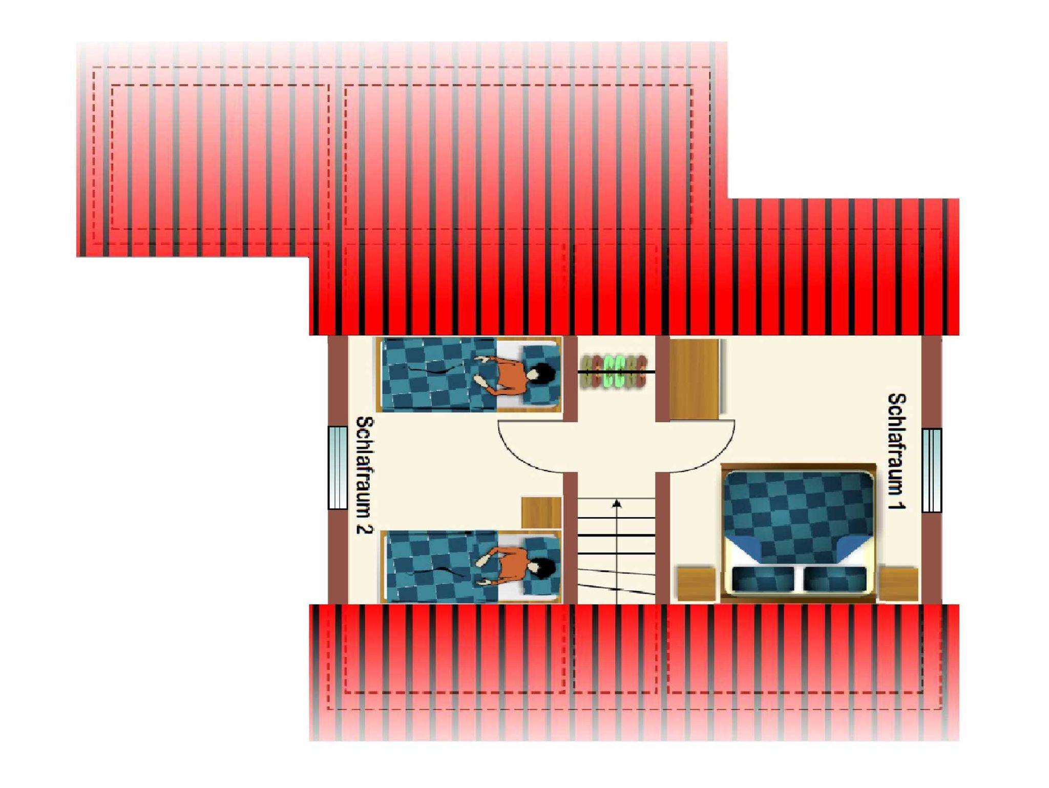 Die massiv errichteten Ferienhäuser vom Typ Scout 60 verfügen über ca. 60 m² Wohn-/Nutzfläche auf 2 Etagen und können mit bis zu 5 Personen (+ 1 Kleinkind im Kinderreisebett) belegt werden. Im Erdgeschoss befindet sich das Badezimmer (Dusche/WC), das Wohnzimmer (mit Schlafgelegenheit) mit angrenzender offener Küche mit Essplatz (Ceran-Kochfeld/Backofen - Kühlschrank/Gefrierfach, Mikrowelle und Spülmaschine). Zugang zur möblierten Terrasse vom Wohnzimmer. Über die offene Treppe im Wohnbereich gelangt man zu den beiden Schlafräumen im Obergeschoss (ein Schlafraum mit einem Doppelbett und ein Schafraum mit zwei Einzelbetten). Als Abstellmöglichkeit stehen entweder ein außenliegender Abstellraum oder ein Gartenhäuschen zur Verfügung. Nichtraucherhäuser - kostenloses WLAN - Haustiere erlaubt - Brötchenservice von Ostern bis Oktober!