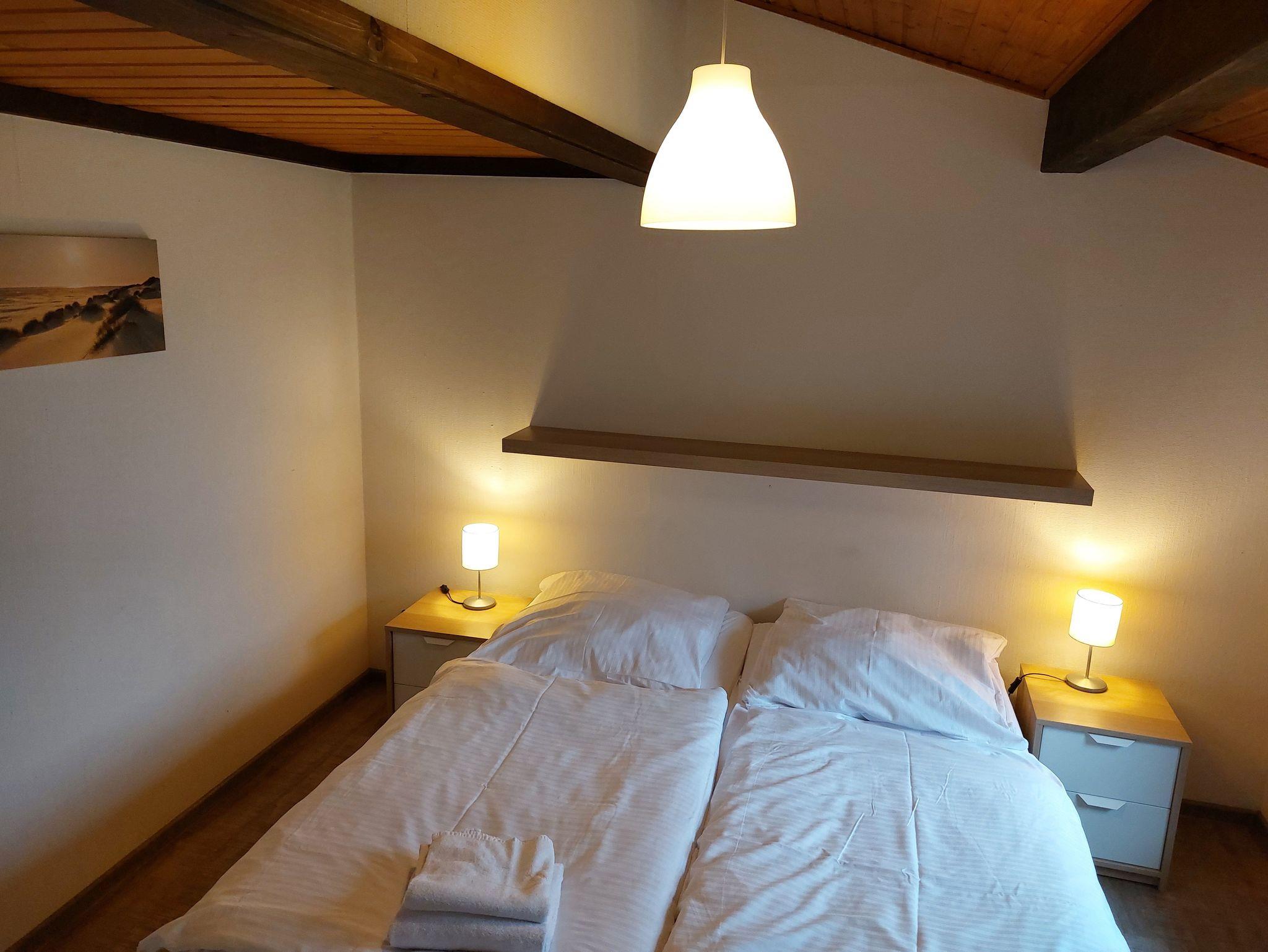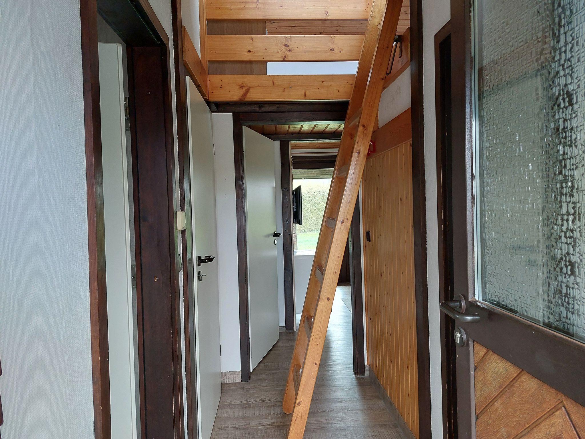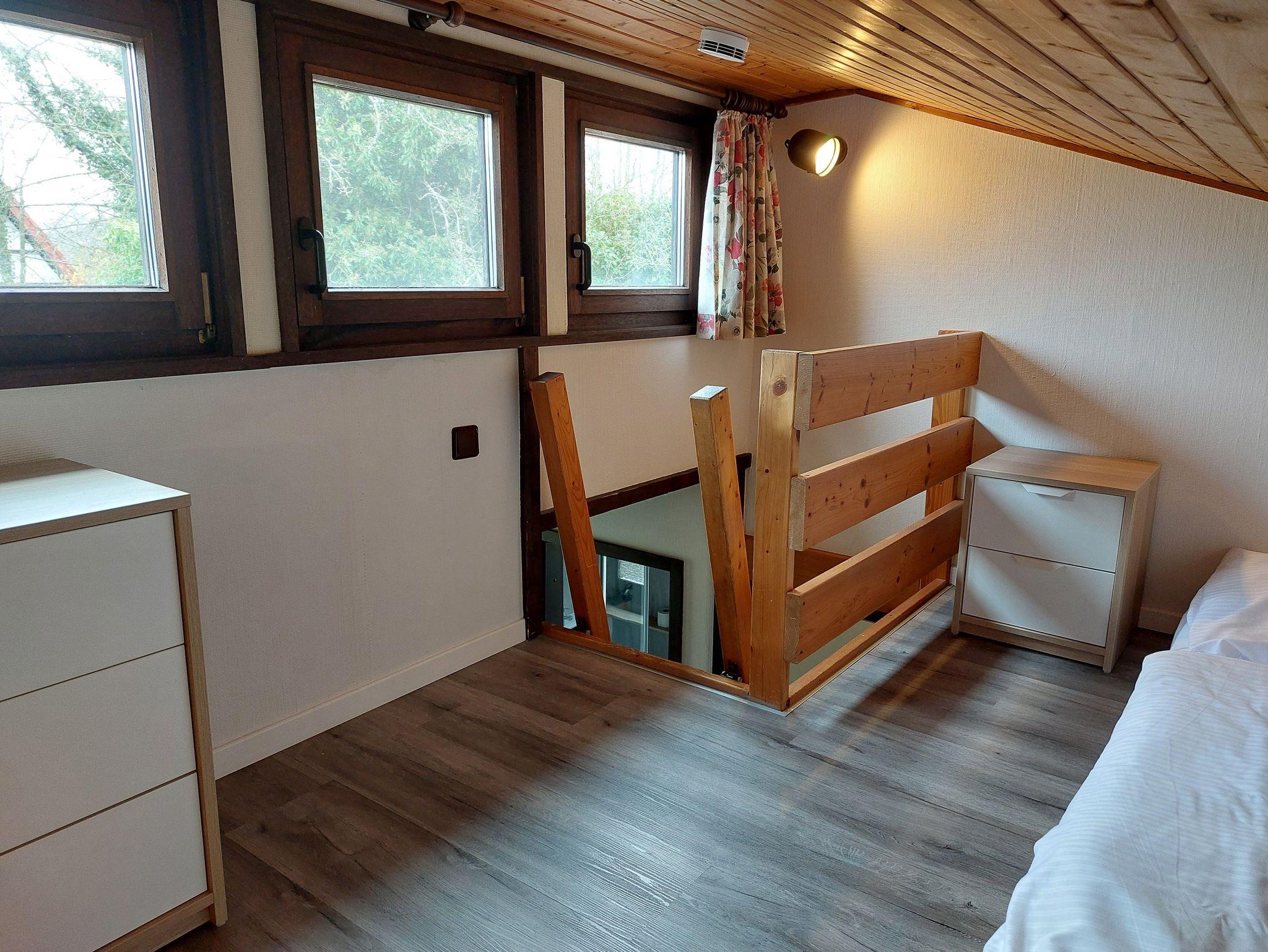 Die Koje unterm Dach bietet 2 Schlafgelegenheiten (Matratzen) und eignet sich für größere Kinder.