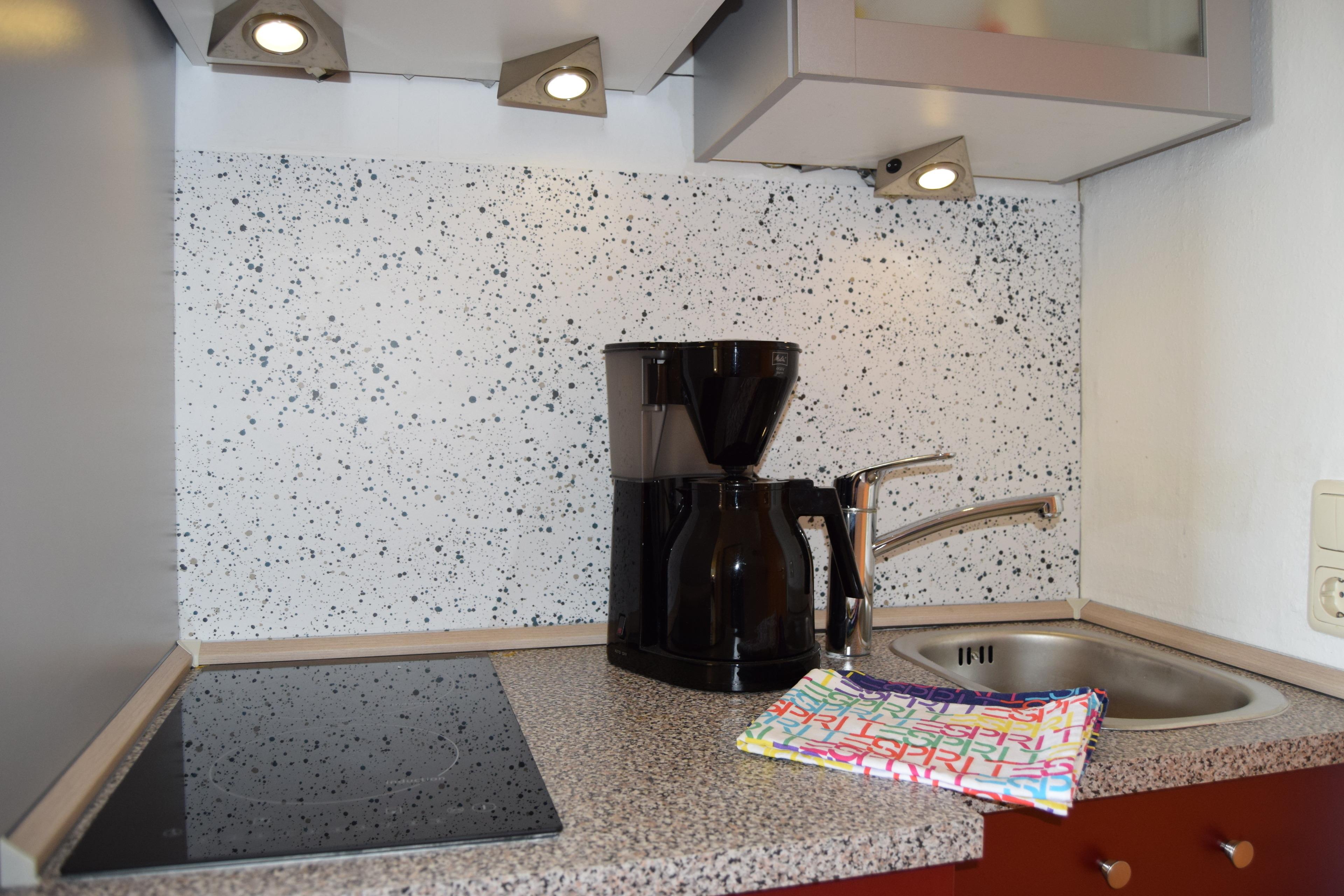 Das Appartement verfügt über ein geräumiges Bad mit Toilette, Waschbecken und Duschkabine sowie Zentralheizung und Fön. Die Küchenzeile verfügt über eine Spüle, zwei Kochplatten, einen Kühlschrank mit Gefrierfach sowie eine Mikrowelle. Der kombinierte Wohn-/Schlafraum hat einen geräumigen Kleiderschrank, ein Doppelbett mit zwei Matratzen, jeweils 90 x 200, einen Esstisch mit zwei Stühlen sowie gemütliche Fernsehsessel mit Hocker zum Entspannen. Technisch ist folgende Ausstattung vorhanden: 32 Zoll SMART-TV und Zentralheizung. Ins Internet gelangen Sie kostenlos im Appartement über WLAN, sofern Ihr mitgebrachtes Endgerät über WLAN verfügt. Balkonmöbel sind auf dem geräumigen, nach Osten ausgerichteten Balkon vorhanden. Auf dem gegenüberliegenden Parkplatz, der zur Appartementanlage gehört, finden Sie einen Stellplatz für Ihr Fahrzeug.