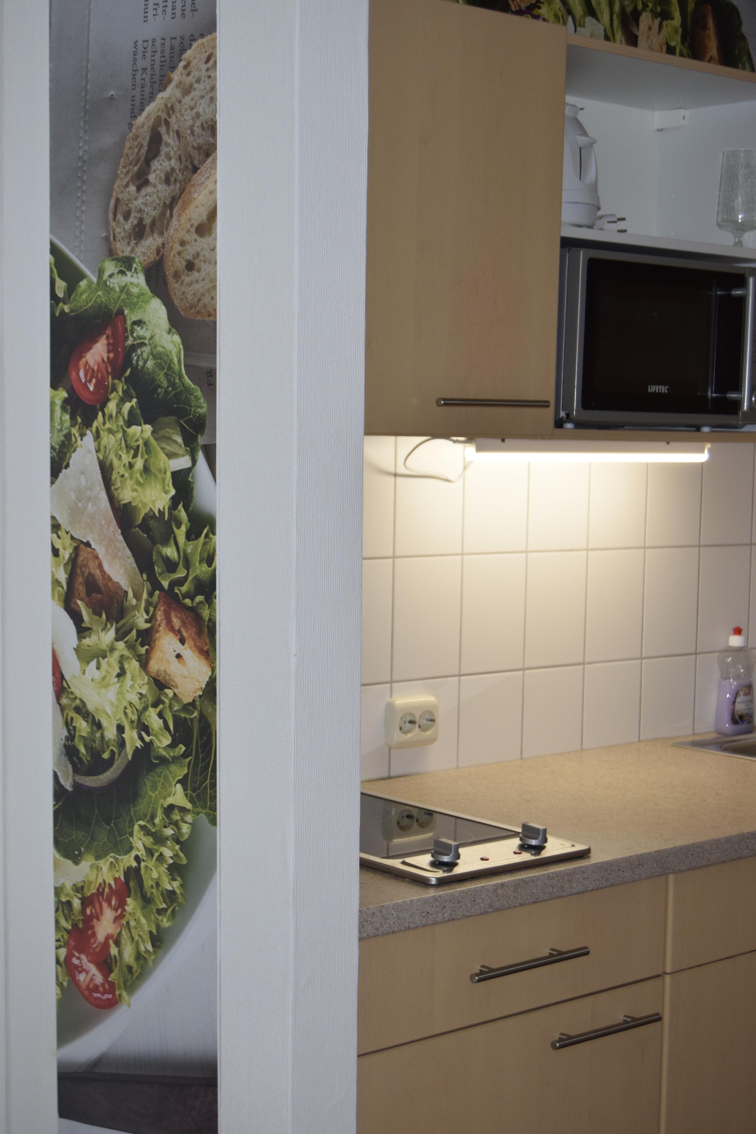 Unser 30 m² großes Appartement "Steuerbord" ist barrierearm mit dem Aufzug oder über das Treppenhaus zu erreichen. Es bietet einen gemütlichen Wohn und Schlafbereich, der mit einem Sofa, TV und einem bequemen Bett sowie einem kleinen Essbereich ausgestattet ist und bei schlechtem Wetter zum Verweilen einlädt. WLAN ist hier selbstverständlich ebenfalls verfügbar. Ebenso gibt es einen Balkon mit herrlichem Blick über die Probstei, auf dem Sie die angenehme Brise der nur 700 Meter entfernten Ostsee genießen können. Eine Pantryküche bietet die Möglichkeit, sich selbst zu versorgen und das Badezimmer mit Dusche und WC rundet die Einrichtung ab. Im Flur direkt gegenüber liegt unser zweites Appartement "Backbord", das ebenfalls buchbar ist.