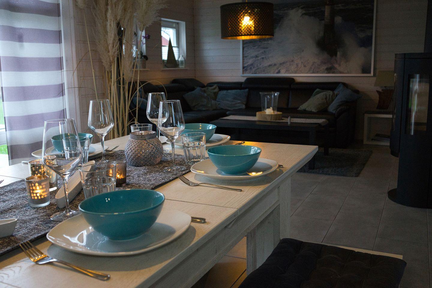 Ausstattung Innenbereich: Waschmaschine, 3 Flachbildschirm-Fernseher, Mini-Stereoanlage (Radio/CD-Player), WLAN, DVD-Player, Kinderreisebett mit separater Matratze, Hochstuhl, Spiele, Bücher, Fußbodenheizung, Sauna, Kaminofen. Nichtraucherhaus.