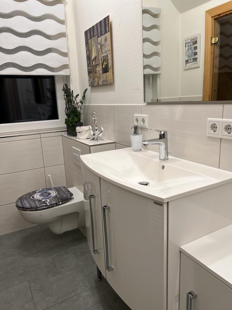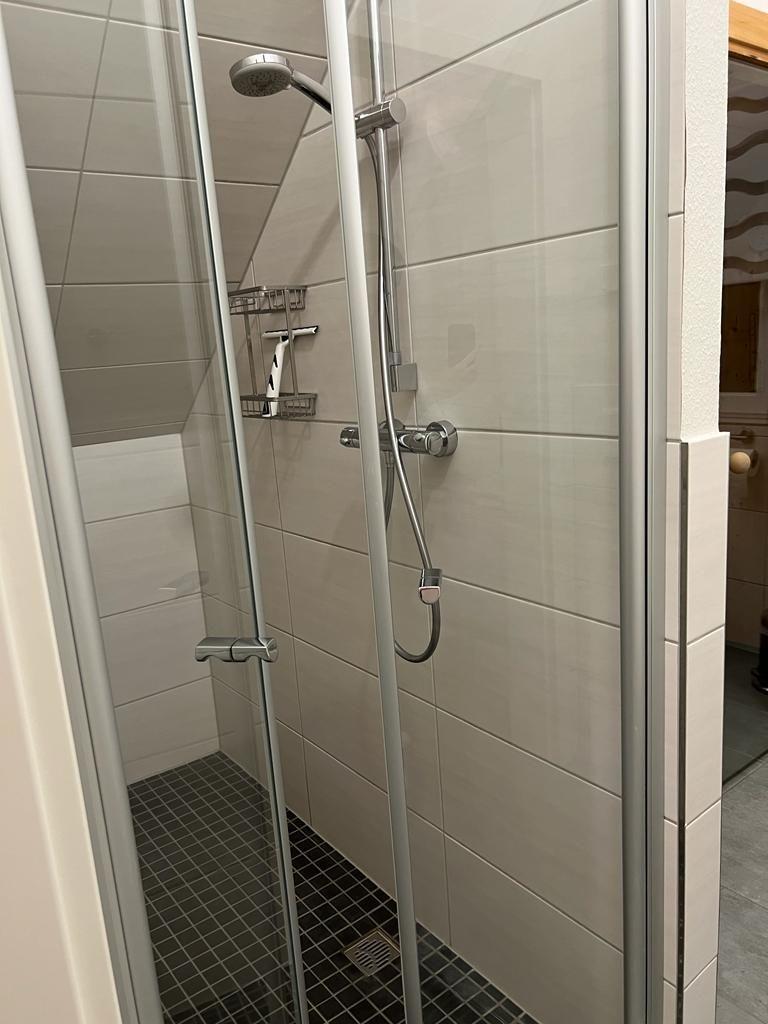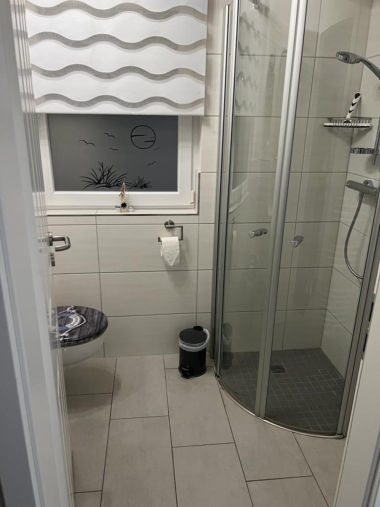 Die 2 Duschbäder der Windrose II verteilen sich auf Erdgeschoss und Obergeschoss und sind jeweils mit einer ebenerdigen Dusche ausgestattet. Das Bad im OG verfügt außerdem über eine hauseigene Sauna.