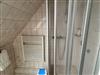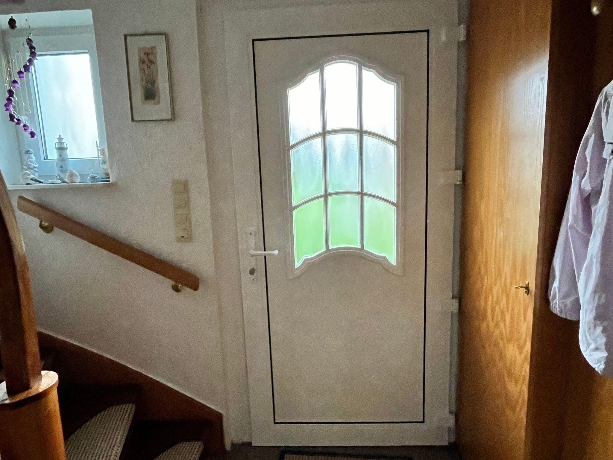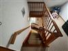 Der Eingang hat 2 Stufen von ca. 20 cm. Eine Holztreppe führt dann in