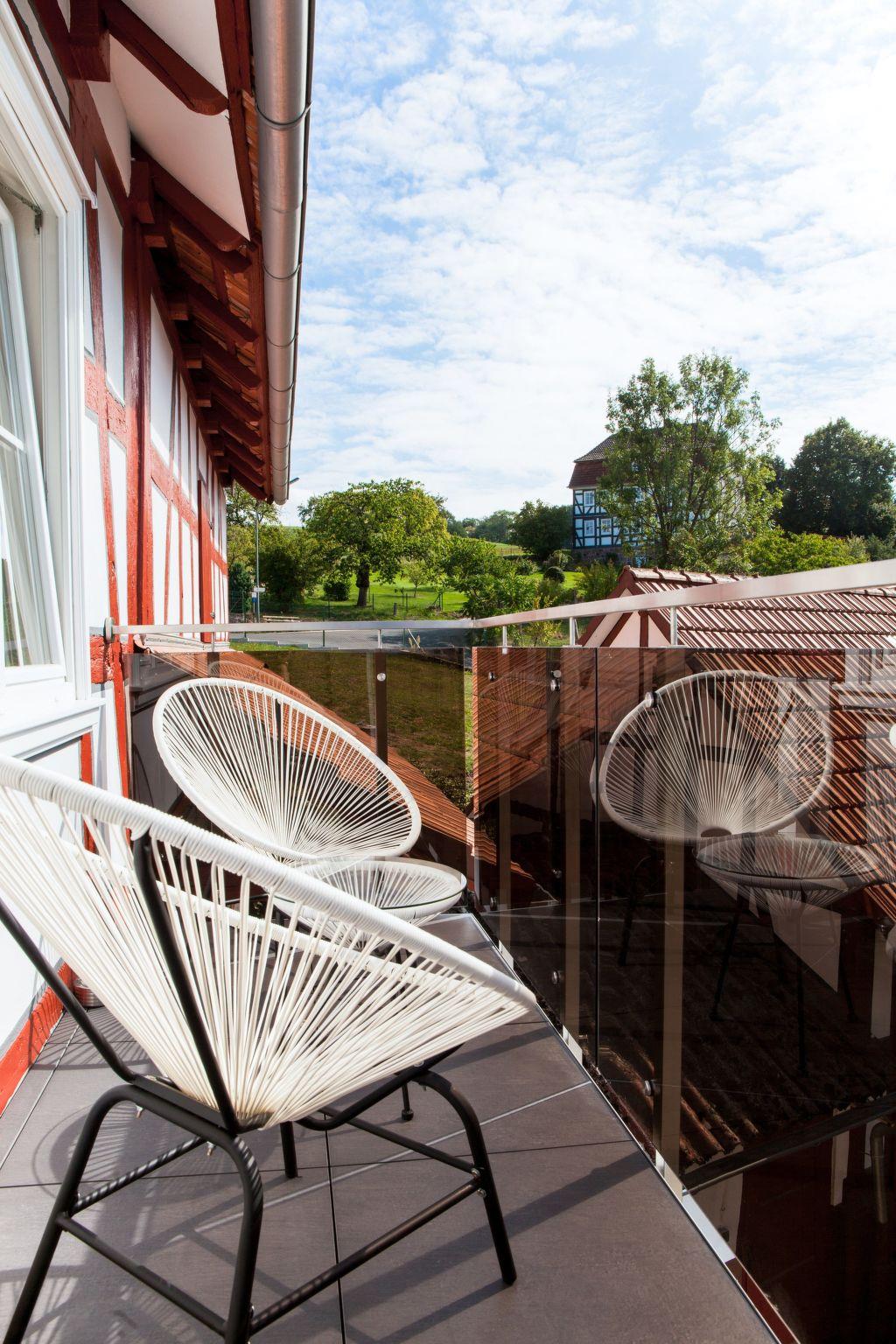 Holiday flat with south-facing balcony WELCOME TO ROTKÄPPCHENLAND We promise you a holiday with friends in a cosy atmosphere in one of the most picturesque regions in the heart of Germany. Our country house is located in the magical Rinnetal valley, surrounded by lush green meadows and enchanted forests. You will find picturesque half-timbered towns, exciting excursion destinations and fascinating leisure activities in the centre of Rotkäppchenland. For those seeking relaxation, we guarantee an unmistakably wild and romantic landscape, formed by gentle valleys, wooded heights and blue lakes. Our house is the ideal starting point for all activities. Hikers, cyclists and motorbikers start their tours directly from the Landhaus, and pilgrims will find cosy accommodation in the Landhaus directly on the famous Elisabeth Trail. Travellers passing through on the nearby A7 motorway are also welcome guests. Thanks to its central location in the heart of Germany, our country house with a total of 19 permanent beds is ideal for family reunions or group trips.