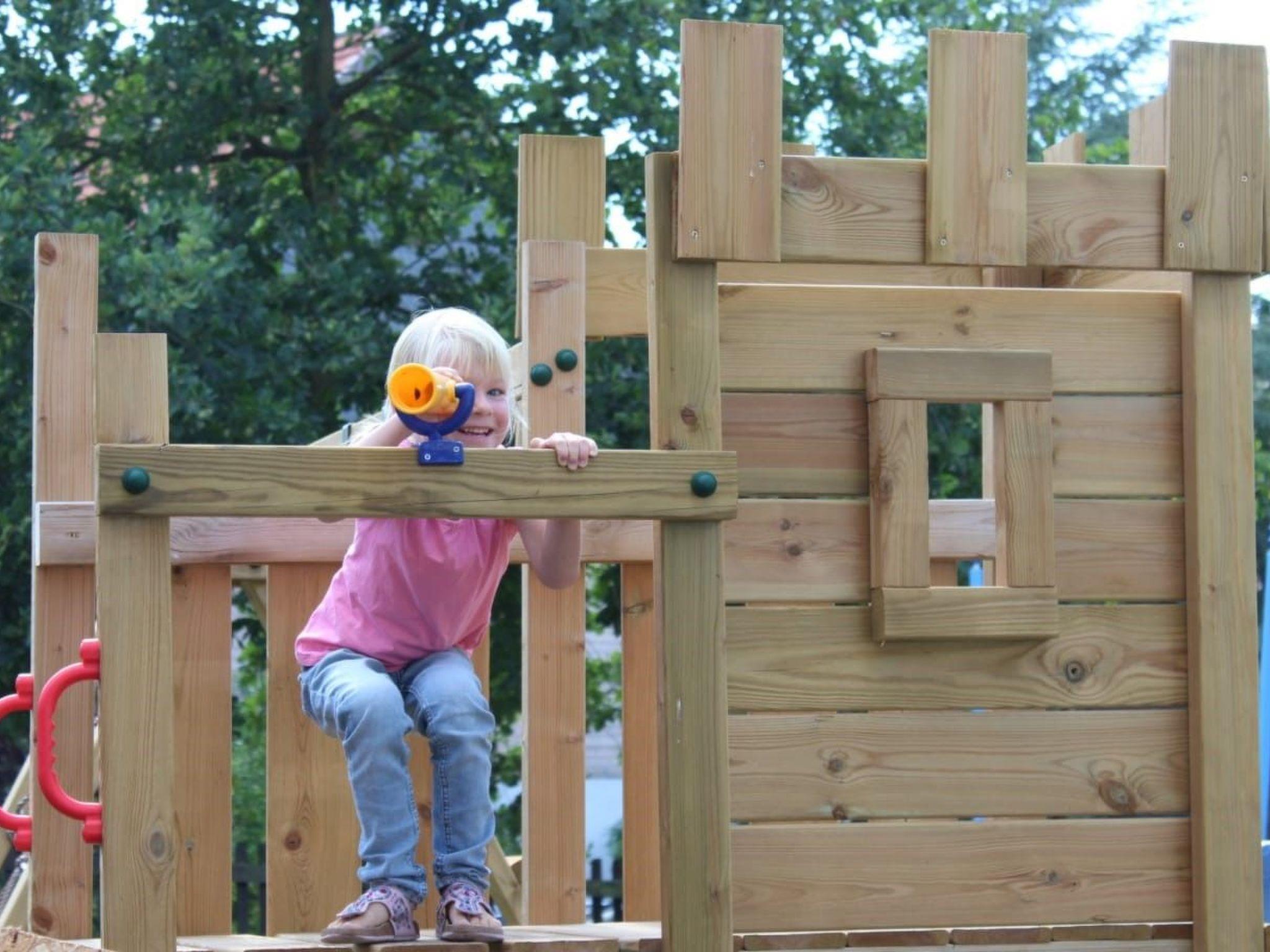 The outdoor play area The outdoor play area is fenced in and offers a true children's paradise with lots of play equipment such as a trampoline, swing, slide, sandpit, etc. Parents can relax from the balcony. Meanwhile, parents can watch their little ones play from the balcony and enjoy a cup of coffee in peace. In the large courtyard, children can ride around on various pedal vehicles (tractors, tricycles, scooters, etc.) or play ball games. After an eventful day out, parents and children can end the day on the large covered and illuminated terrace in the garden. Both garden furniture and a barbecue are available for free use.