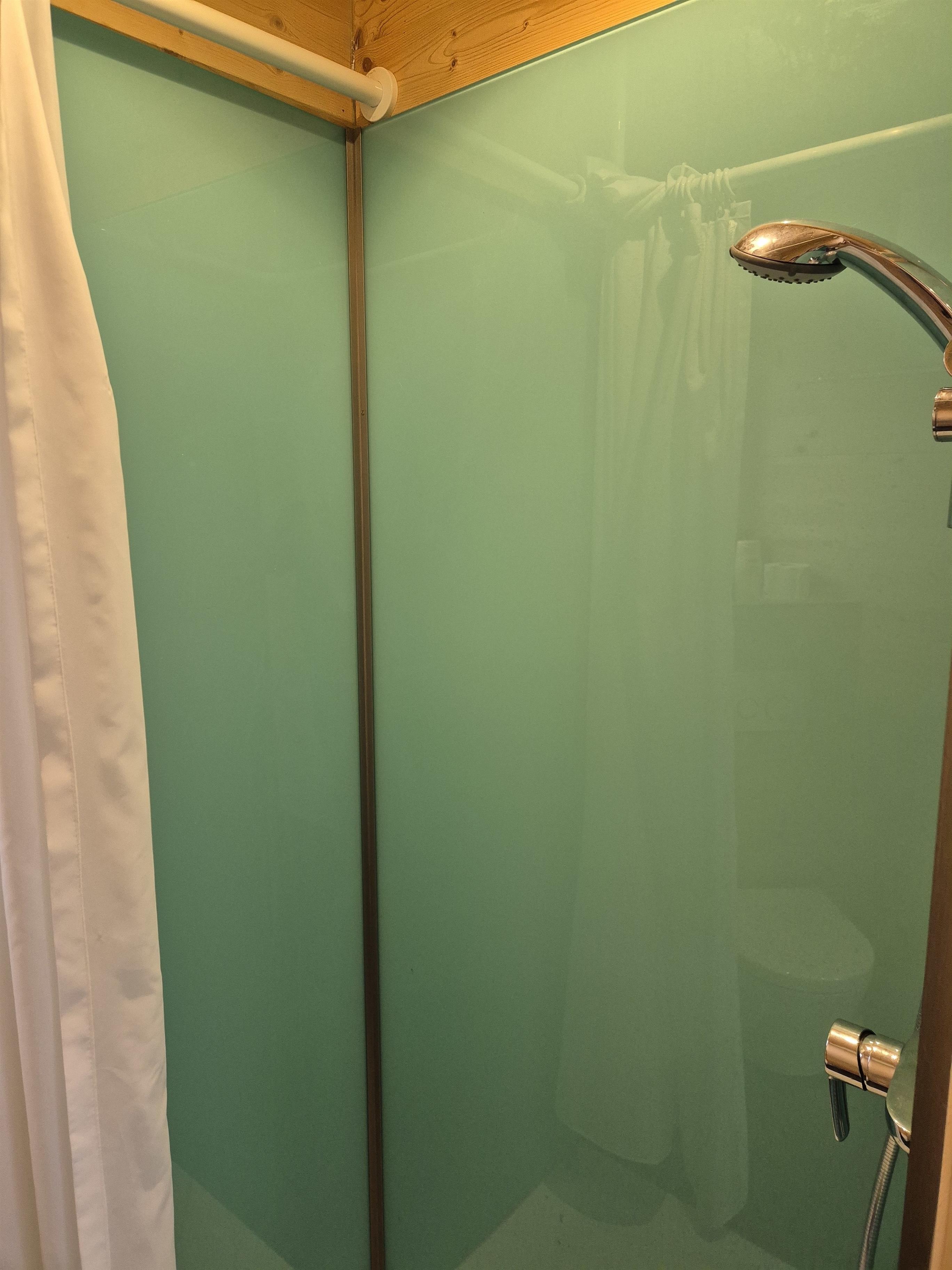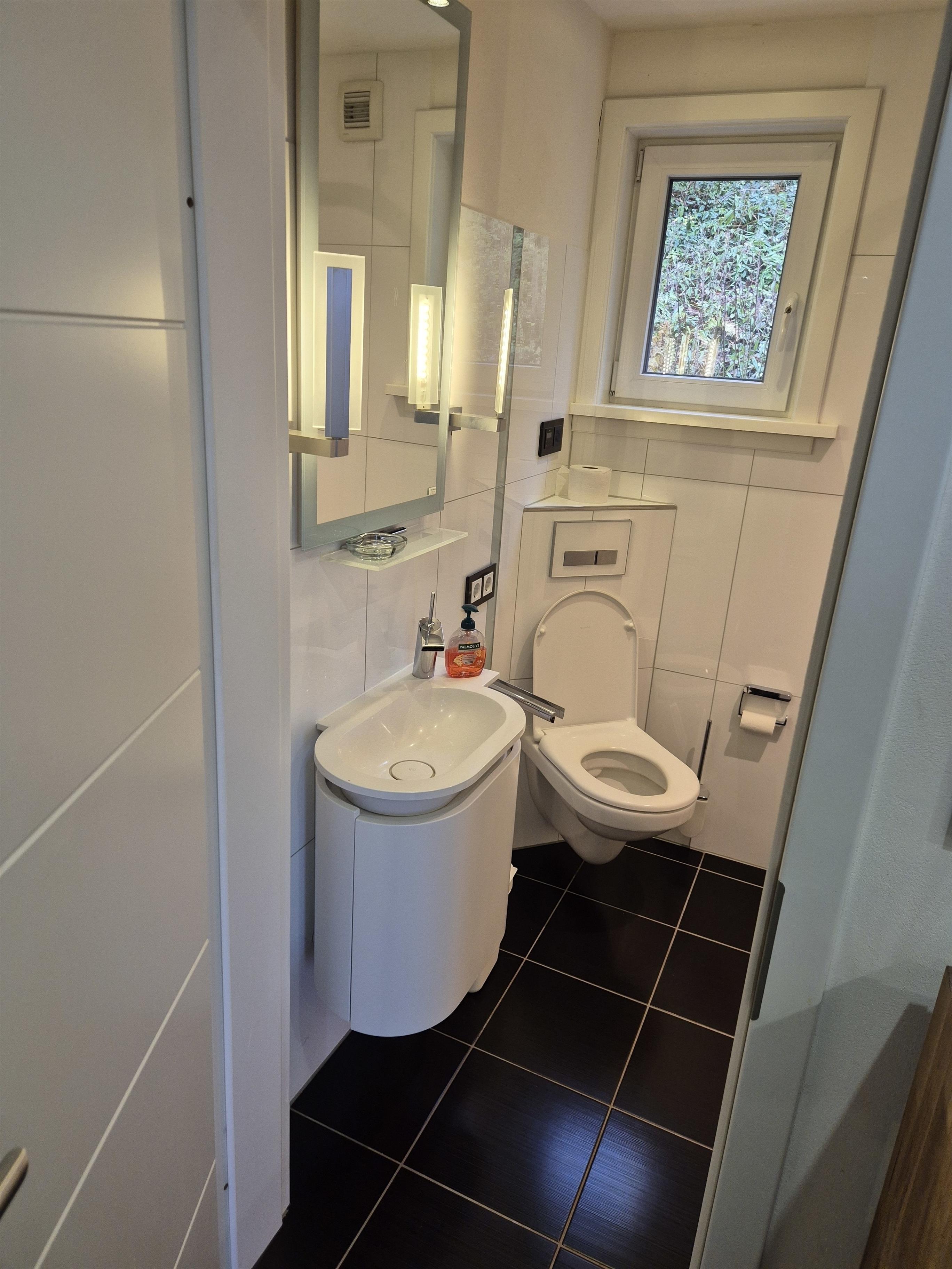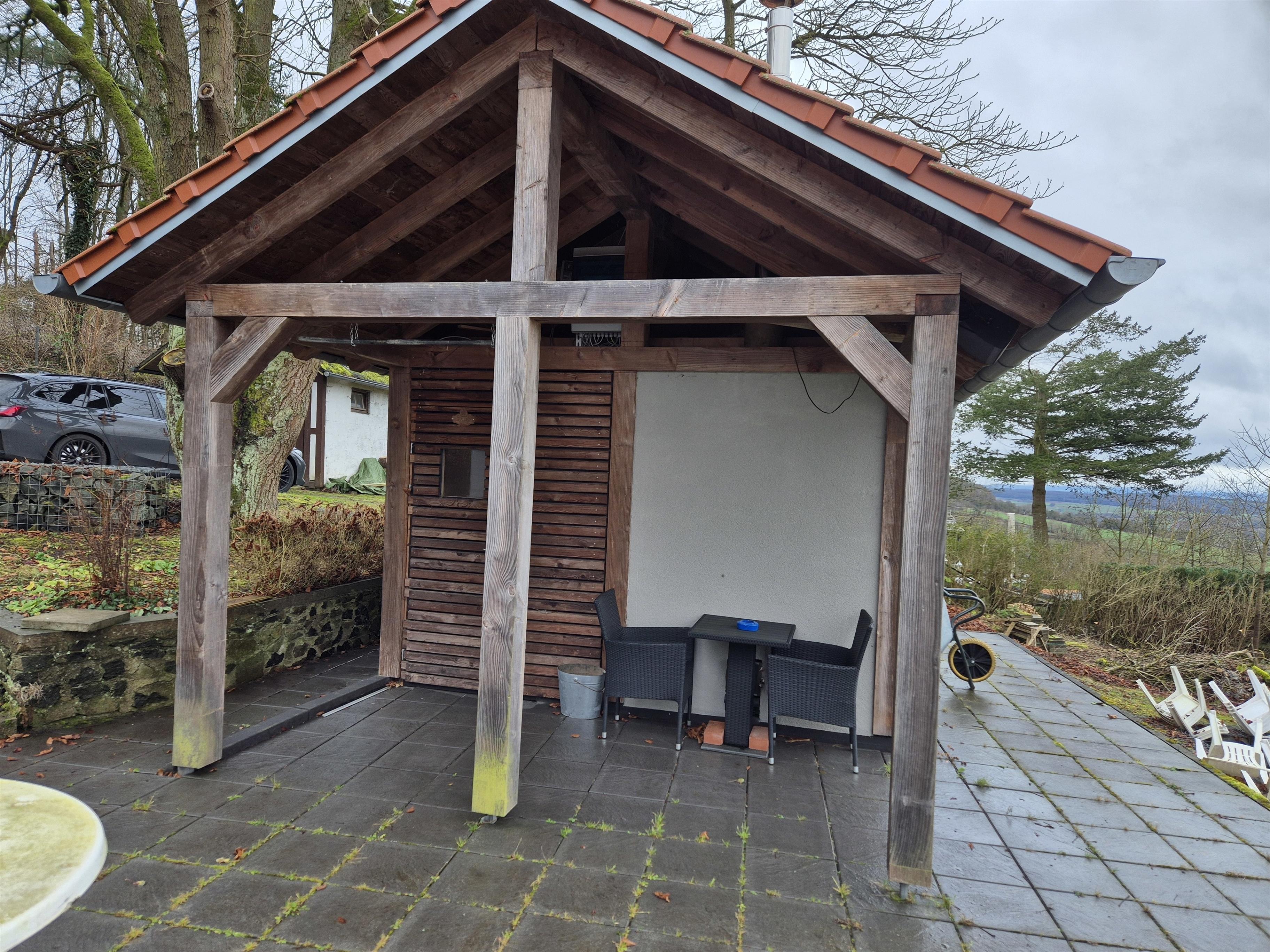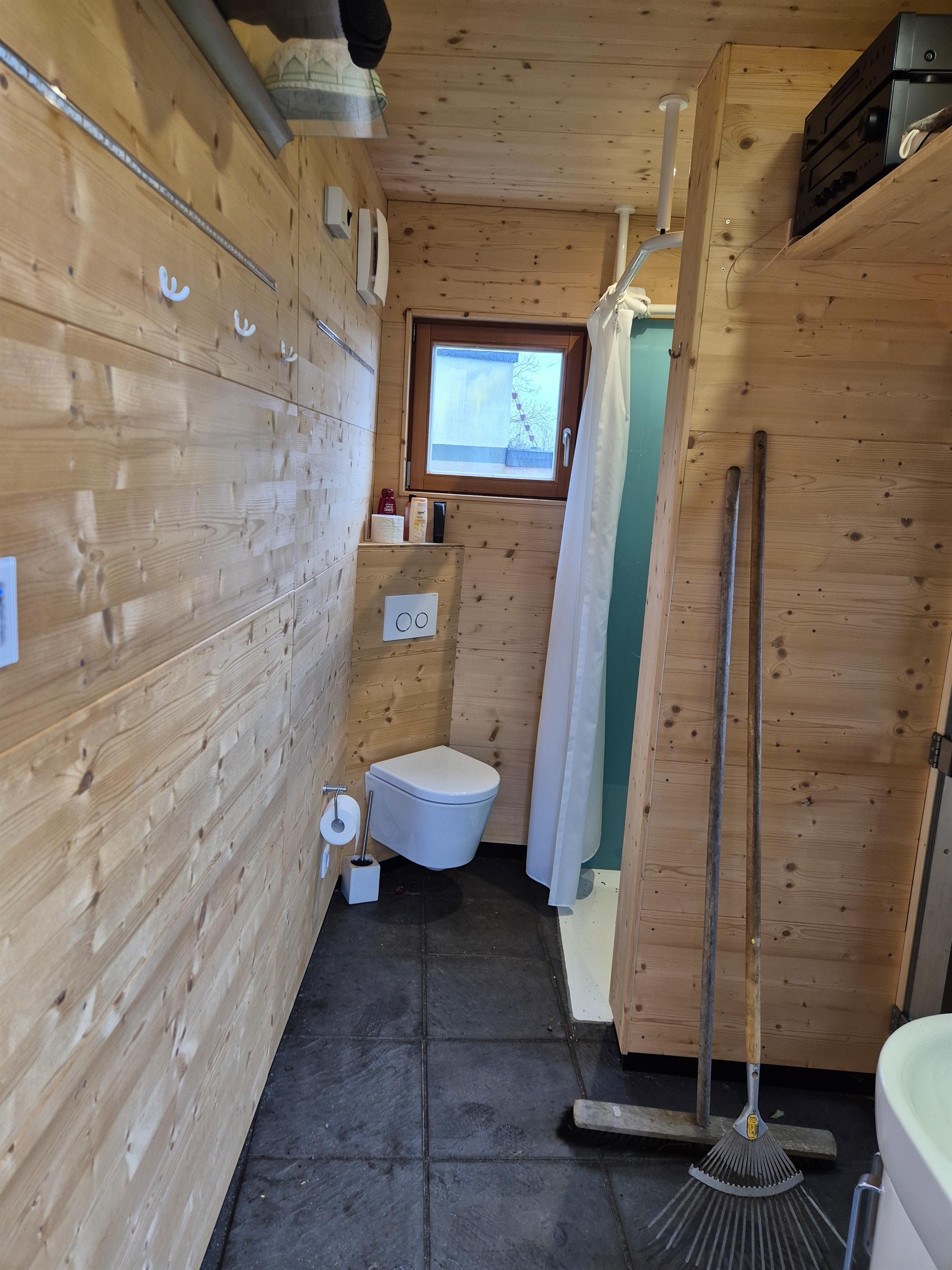 - Das Saunahaus besteht aus einem Vorraum mit Waschbecken und Spiegel, diversen Ablage Möglichkeiten, einer Dusche sowie einem WC.