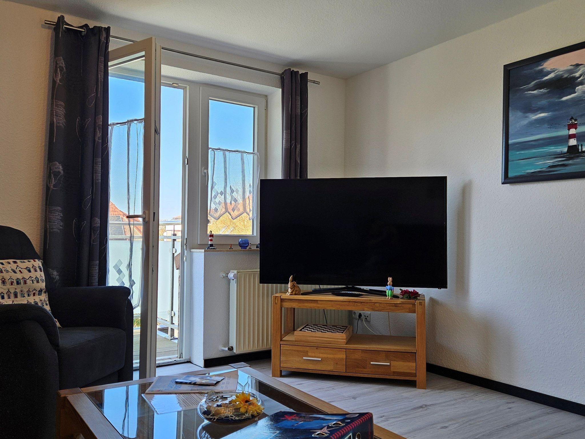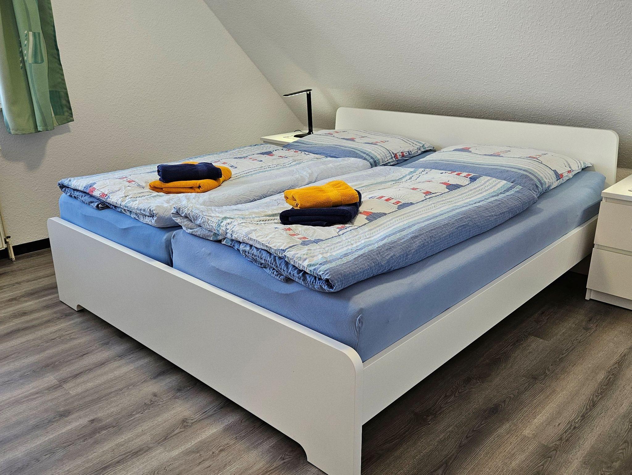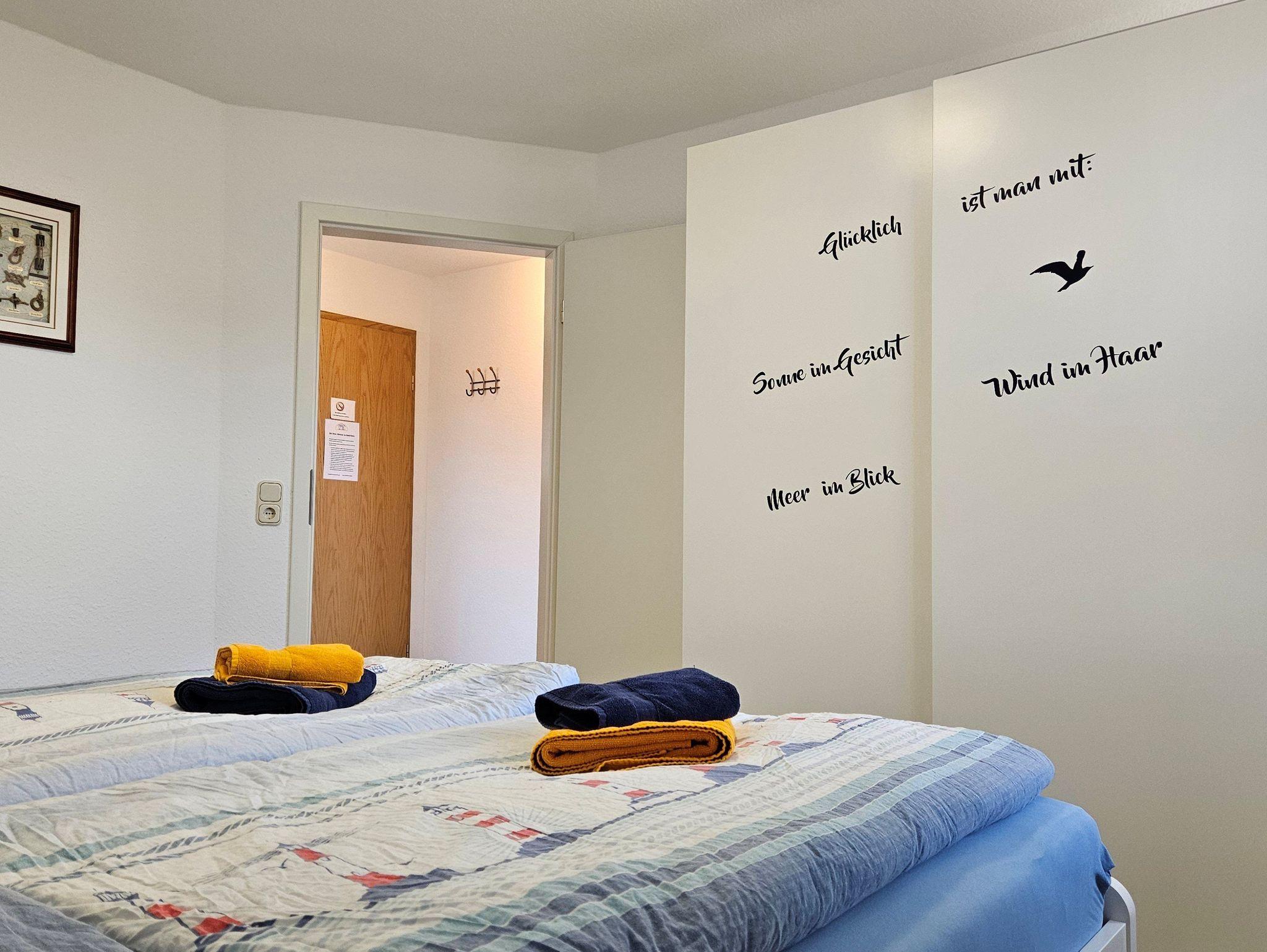 Die Nichtraucherwohnung Roter Sand befindet sich im Obergeschoß und bietet einen gemütlichen Wohnraum, einen Schlafraum mit Doppelbett, eine separate Küche mit Sitzecke sowie ein Badezimmer mit Tageslicht und ebenerdiger Dusche. Sie ist komfortabel und gemütlich eingerichtet und mit Fliesen- und Laminatböden ausgestattet. Sie verfügt über einen Flachbild-Fernseher und einen Blu-ray-Player. In der Küche steht für die Selbstversorgung alles zur Verfügung (Geschirrspüler, Backofen, Wasserkocher, Mikrowelle, Kühlschrank mit Eisfach).