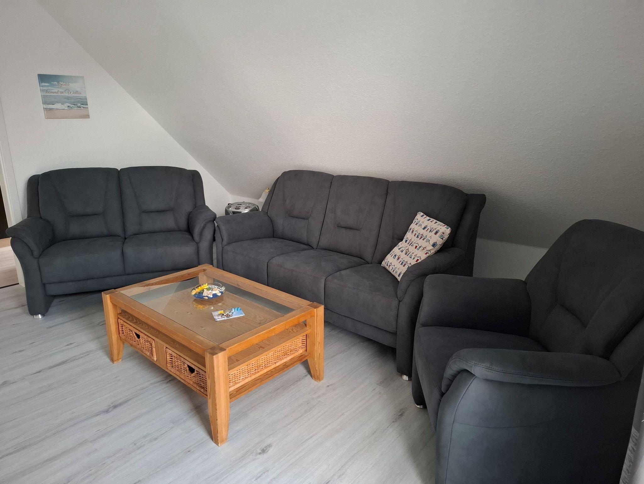 Die Nichtraucher-Ferienwohnung Roter Sand befindet sich im Obergeschoß des Hauses. Der große Garten mit vielen Apfelbäumen steht für Sie zur Benutzung zur Verfügung. Dort stehen Sitz- und Liegemöglichkeiten für Sie bereit.