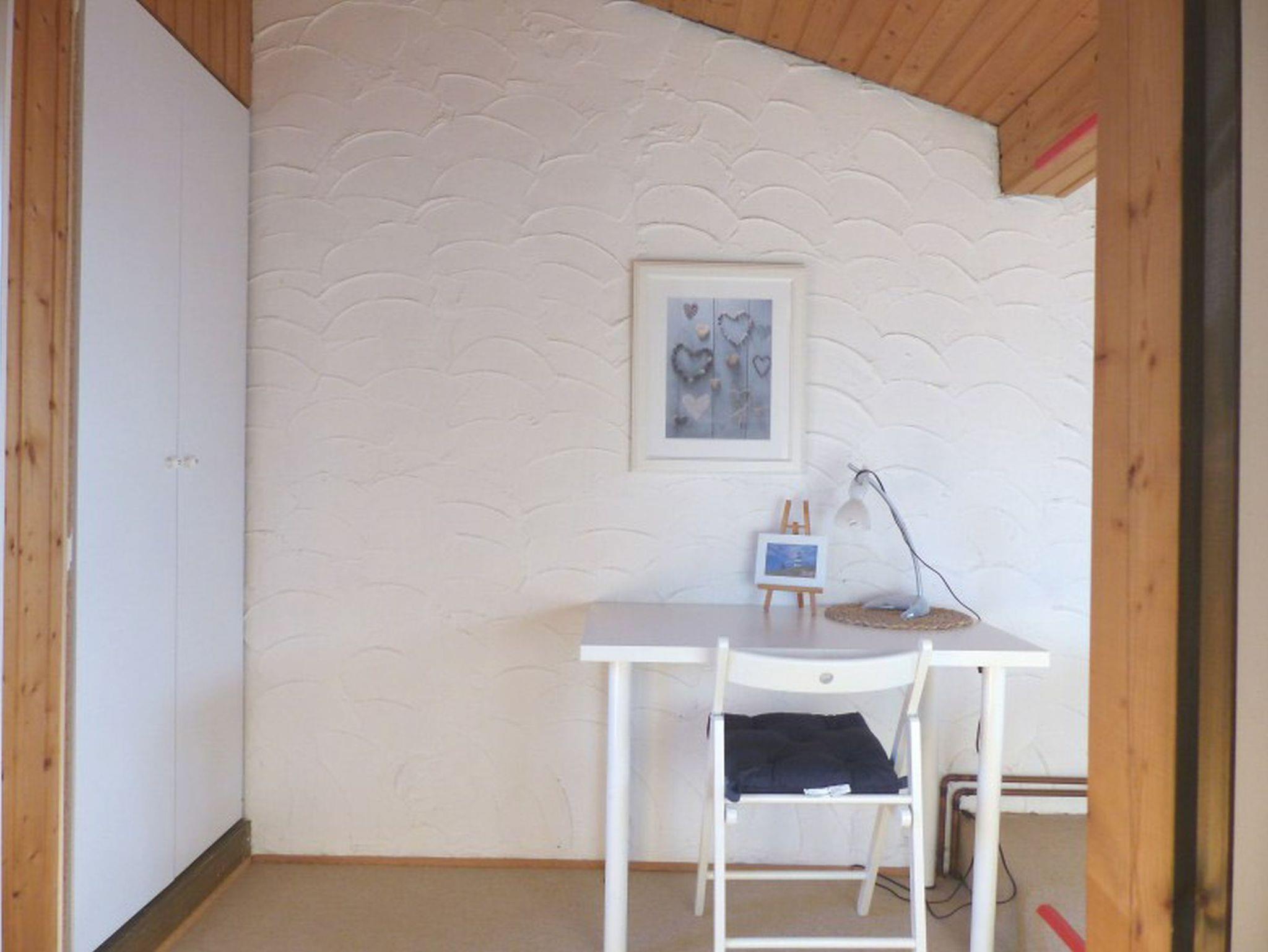 Die Doppelhaushälfte verteilt sich über Erdgeschoss und Obergeschoss. Im Erdgeschoss befindet sich der gemütliche Essbereich mit Küchenzeile. Die große Couch mit Kamin bringt eine warme Atmosphäre zum Relaxen. Angrenzend an die Terrasse gibt es einen kleinen Garten mit Liegewiese. Das Badezimmer ist mit Dusche und WC ausgestattet. Die beiden Schlafzimmer befinden sich im Obergeschoss.