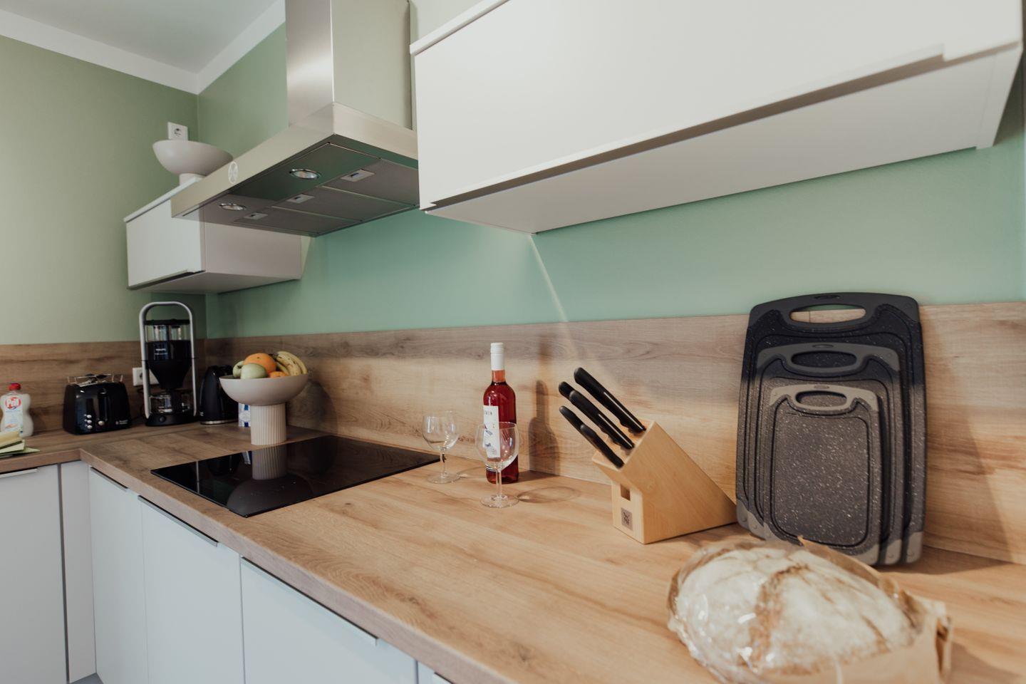 Die großzügigen Schlafzimmer, der gemütliche Wohn- und Essbereich sowie das hochwertig eingerichtete Badezimmer tragen zu einem besonderen Urlaubserlebnis bei. Die exklusive Ausstattung der Ferienwohnung bietet zahlreiche Annehmlichkeiten. Genießen Sie beispielsweise Wellnessmomente in der Infrarot-Wärmekabine, entspannen Sie in bequemen Boxspringbetten oder nutzen Sie die Sonnenstunden im eigenen Strandkorb. Die hochwertig ausgestattete Küche begeistert Hobbyköche und Genießer gleichermaßen.